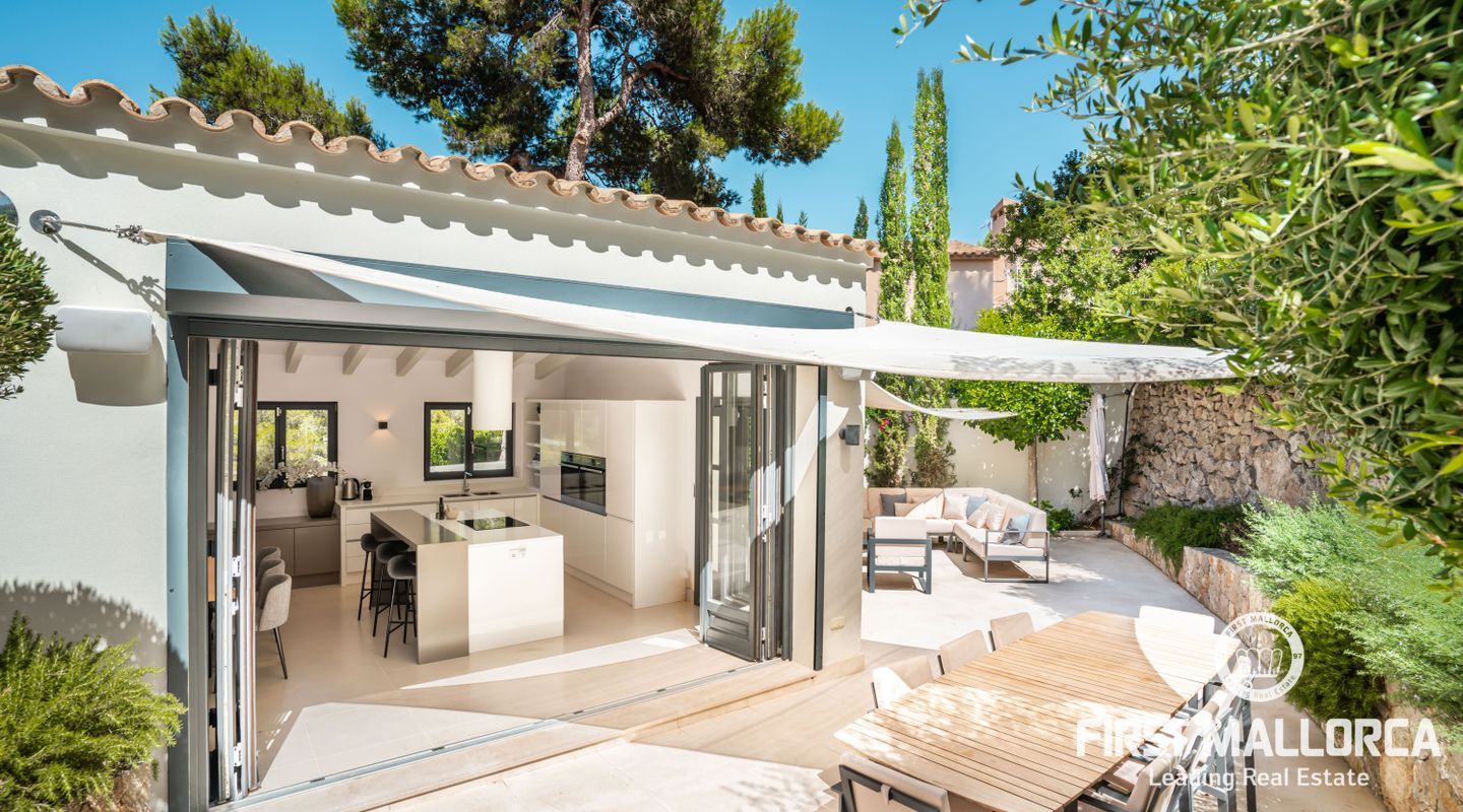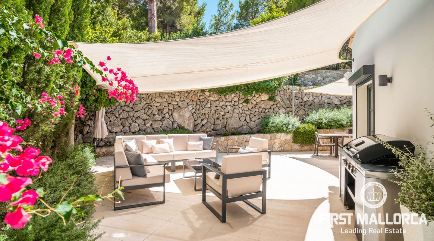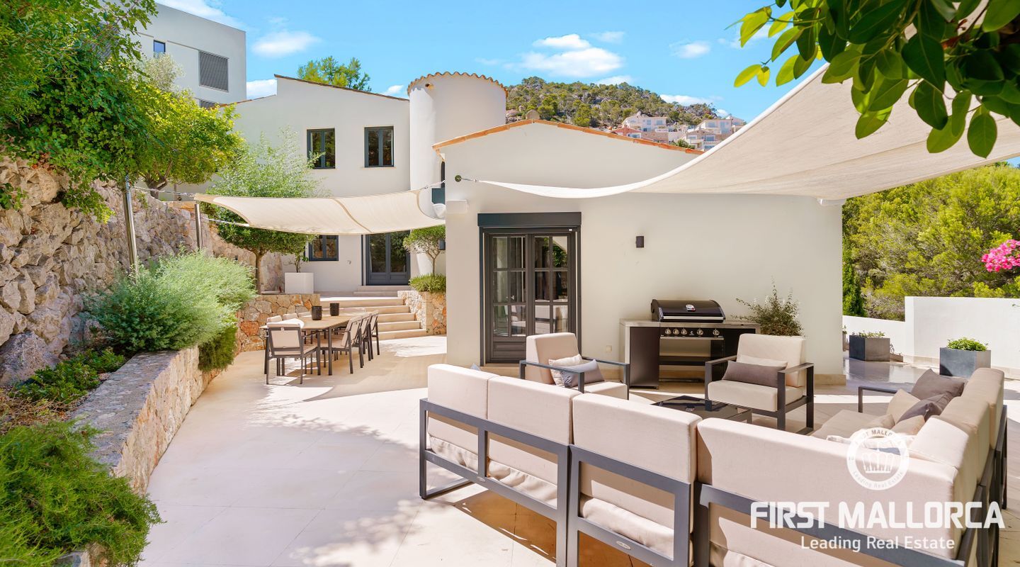 Esta hermosa y luminosa villa ha sido renovada al más alto nivel. Ofrece la mezcla perfecta de vida contemporánea con un estilo mediterráneo clásico. Situada en un lugar tranquilo, a pocos minutos del Puerto de Andratx, se beneficia de un espacio de entretenimiento perfecto, privacidad y una zona de piscina exuberante y serena. Diseñado con los mejores materiales, emana un aire de discreta elegancia y sofisticación. El espacio de ocio fluye a la perfección desde el interior a las terrazas, sin embargo, ofrece un montón de áreas privadas para su familia e invitados. La cocina hecha a medida con electrodomésticos de alta gama, así como todas las comodidades modernas, tales como sistema de aire acondicionado frío y caliente, calefacción por suelo radiante parcial, sistema de música Sonos, Internet de alta velocidad y un aparcamiento seguro, son sólo algunas de las características de esta espectacular villa. No dude en ponerse en contacto con nuestro equipo de First Mallorca para más información y para concertar una visita.
