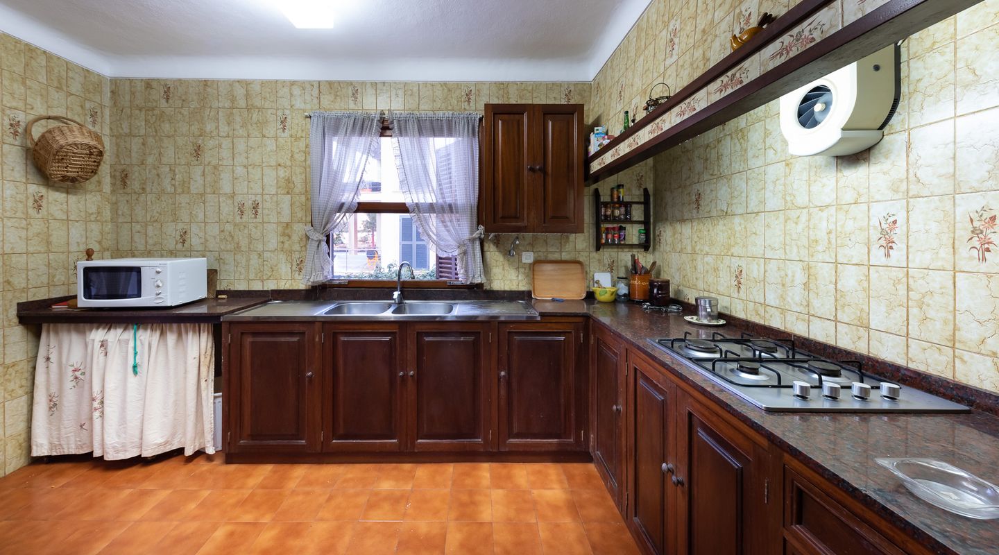 En cuanto a la construcción, la propiedad se encuentra en buen estado, sin embargo necesita una reforma de modernización. Actualmente consta de unos siete dormitorios dobles y cuatro de ellos con armarios empotrados, cocina totalmente equipada y amueblada, coladuría, 2 salas de estar, 4 baños (1 en suite), lavadero y despensa, y un garaje para dos coches en la planta baja. En la planta superior hay una amplia terraza con impresionantes vistas despejadas al mar.