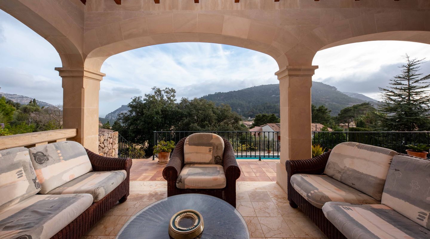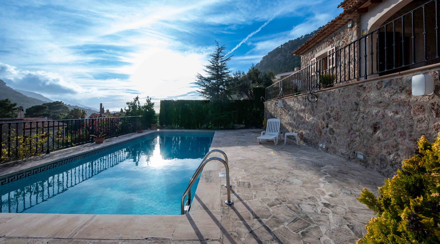 Esta villa mallorquina de piedra está situada en la calle más prestigiosa de Valldemossa y ofrece una armoniosa mezcla de confort y sofisticación, con vistas panorámicas a las montañas y al mar. Distribuida en tres niveles, la residencia está diseñada para ser práctica y fácil de vivir. La planta sótano ofrece un amplio espacio para hasta cuatro vehículos, junto con una cómoda sala de lavandería, sala de máquinas, un acogedor dormitorio y un cuarto de baño con ducha. En la planta baja, una cocina bien equipada con trastero prepara el terreno para las aventuras culinarias, mientras que la zona de estar y comedor de planta abierta conecta a la perfección con una terraza que invita a disfrutar de las vistas panorámicas. Además, hay un cómodo dormitorio doble con baño en suite y un aseo de invitados. En la planta superior hay otros tres dormitorios dobles, dos cuartos de baño (uno en suite) y una terraza con encantadoras vistas al pueblo. La propiedad cuenta con características prácticas como ventanas de doble acristalamiento, armarios empotrados, aire acondicionado frío-calor, sistema de purificación de agua y terrazas soleadas para relajarse. En el exterior, la piscina, la zona de barbacoa y el jardín mejoran la experiencia de la vida al aire libre. Combinando funcionalidad con un toque de elegancia, esta propiedad presenta un refugio acogedor en el corazón del barrio más codiciado de Valldemossa.
