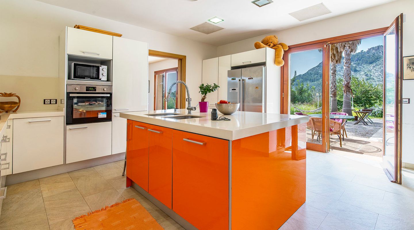 Esta fantástica propiedad en Bunyola con licencia de alquiler vacacional para 8 personas representa una excelente oportunidad de inversión, ya que también ofrece la posibilidad de ser alquilada como casa de vacaciones. La casa está situada a los pies de la sierra de Tramuntana en una parcela de casi 15,000m2 en una ubicación elevada y tranquila, en una de las zonas más solicitadas del oeste de la isla, con vistas a la bahía de Palma a lo lejos. La propiedad consta de una casa principal y una casa de invitados, ambas con confort moderno y encanto tradicional. La espectacular casa principal se distribuye en 3 niveles y una gran terraza, solarium y zona de piscina. Desde todos los niveles se puede disfrutar de magníficas vistas de Palma y la Sierra de Tramontana. La generosa superficie habitable de aprox. 310 m2 se distribuye en un impresionante salón abierto con acceso a la terraza soleada, una cocina moderna, un dormitorio en suite, así como otros 2 dormitorios dobles con baño en suite. En la planta superior se encuentra la suite principal con impresionantes vistas y acceso a terraza. Todos los dormitorios ofrecen una hermosa vista de los alrededores. La propiedad ofrece un amplio espacio de almacenamiento en el sótano, así como salas para un gimnasio o una sauna y un garaje subterráneo. La casa de invitados dispone de 2 dormitorios y 1 baño. En el aparcamiento exterior hay espacio para aprox. 8 vehículos. Esta es una propiedad en una ubicación de ensueño, donde se puede disfrutar plenamente de la mágica atmósfera mediterránea.