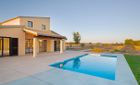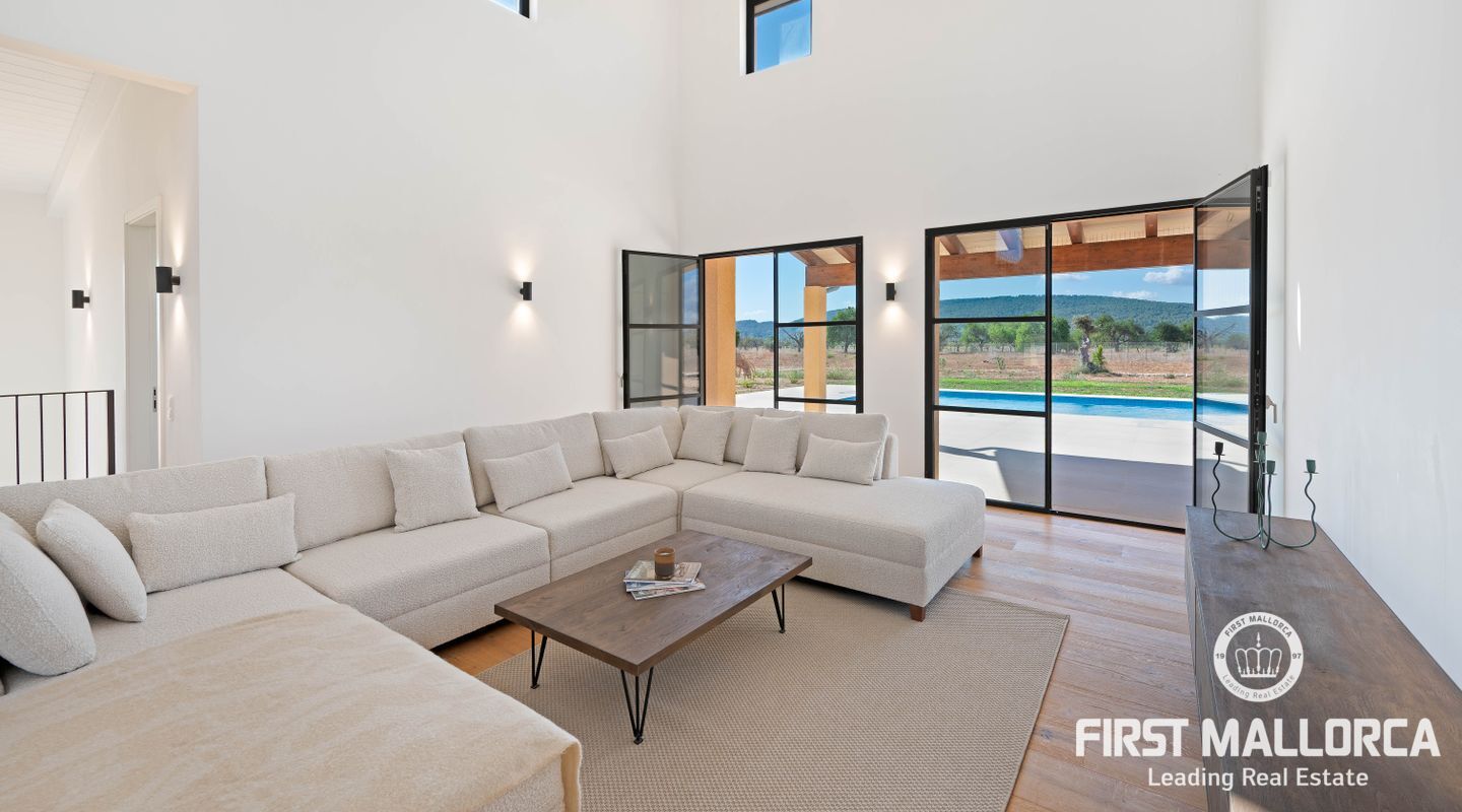 La finca ofrece un espacio de vida amplio y cómodo, con una sala de estar de concepto abierto y una cocina de diseño totalmente equipada con frigorífico doble, congelador, horno y cocina de inducción. Cuatro dormitorios en suite proporcionan privacidad y elegancia, mientras que la planta inferior ofrece potencial para una bodega o la instalación de un área de fitness, spa y bienestar. Una piscina de agua salada con terrazas acogedoras crea un oasis de relajación, garantizando comodidad y total privacidad.