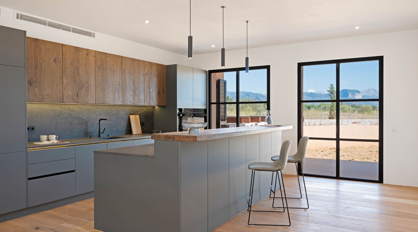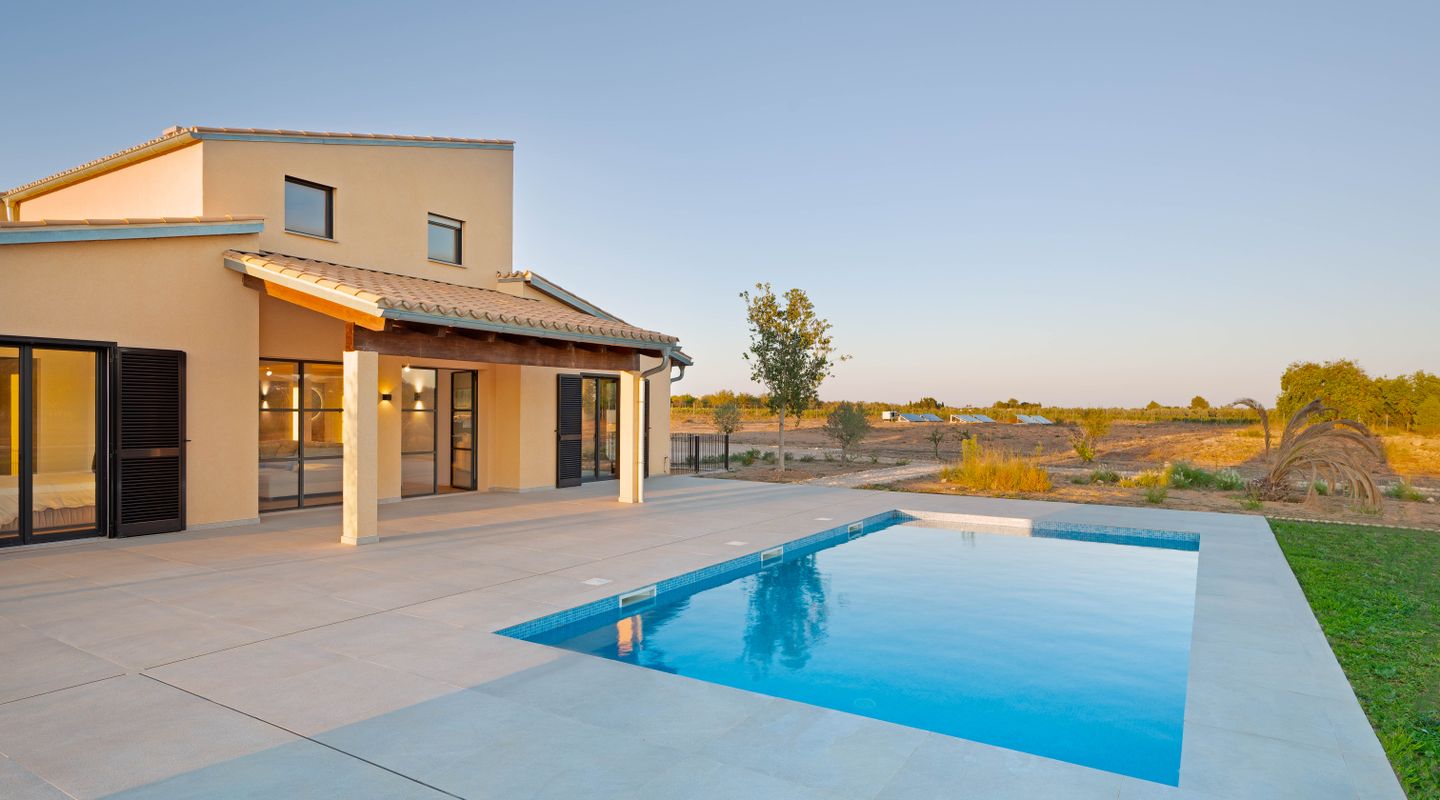 Esta propiedad mediterránea contemporánea se encuentra en el tranquilo campo de Mallorca, al pie de la Sierra de Tramuntana, declarada Patrimonio de la Humanidad por la UNESCO. Rodeada por la idílica región vinícola de Santa Maria y la localidad vecina de Binissalem, ha sido cuidadosamente diseñada para combinar armoniosamente el encanto rústico con el lujo moderno.