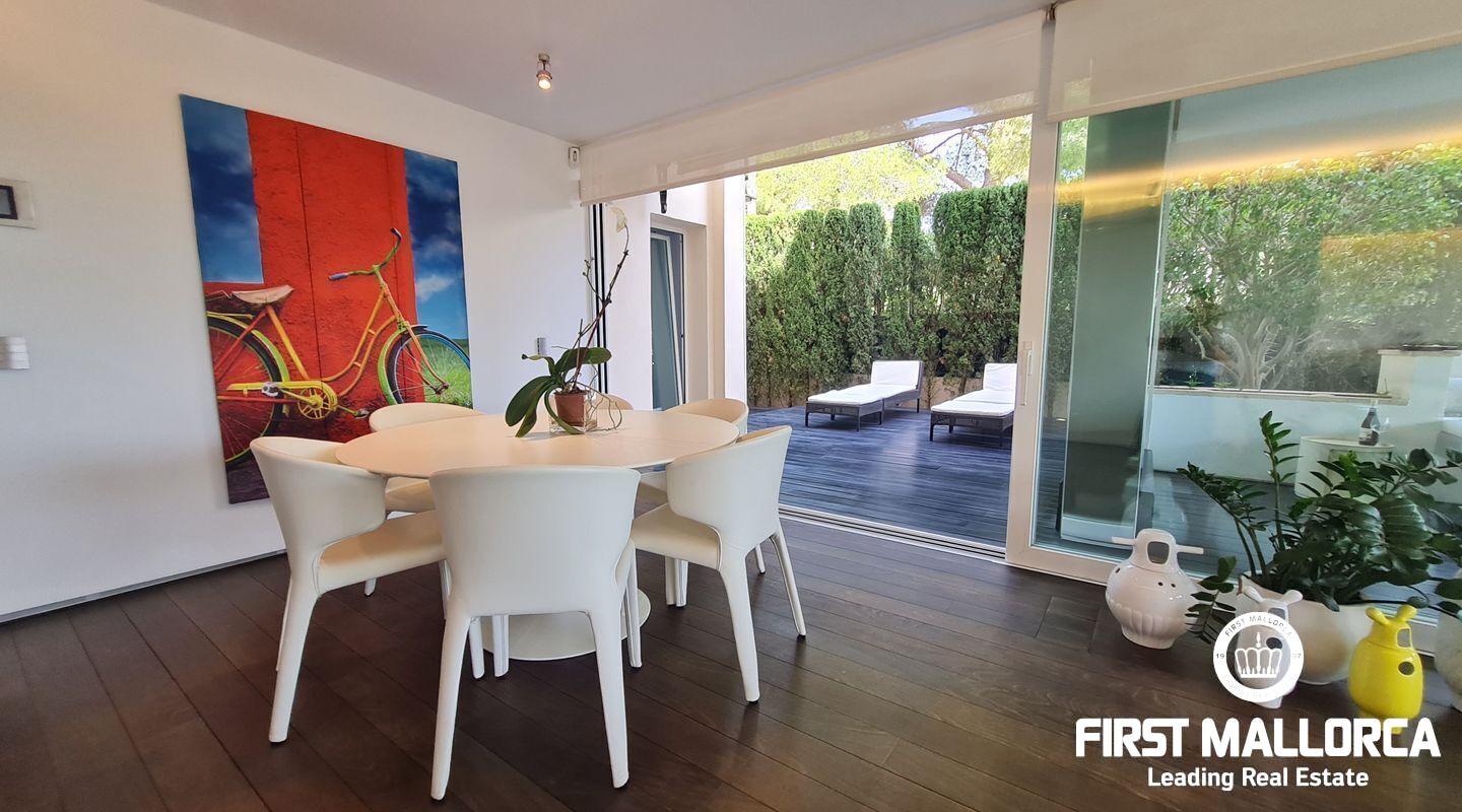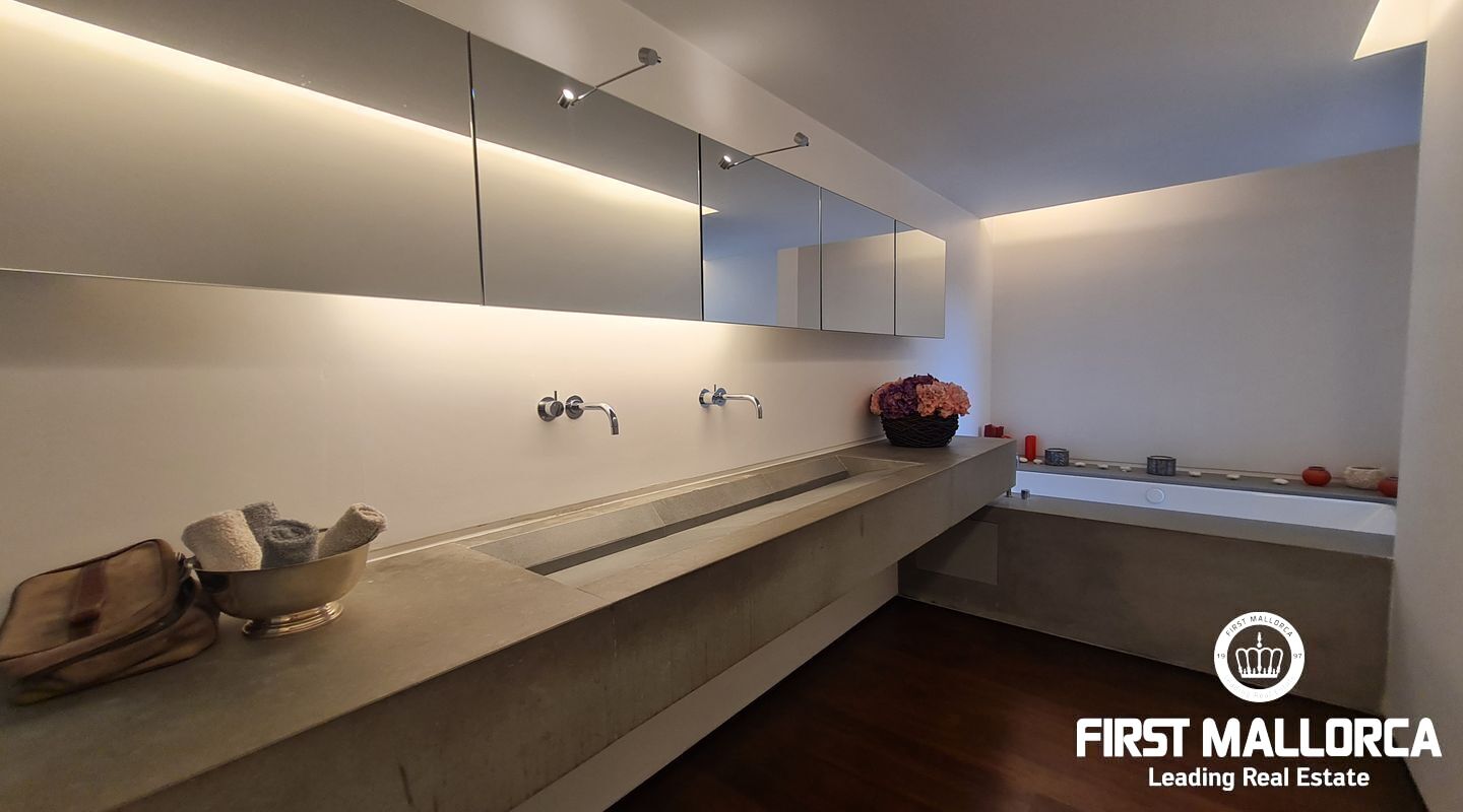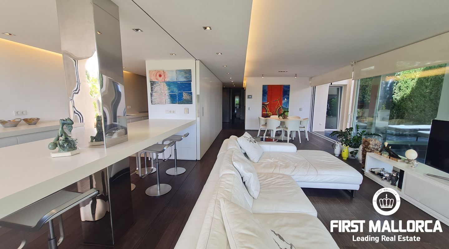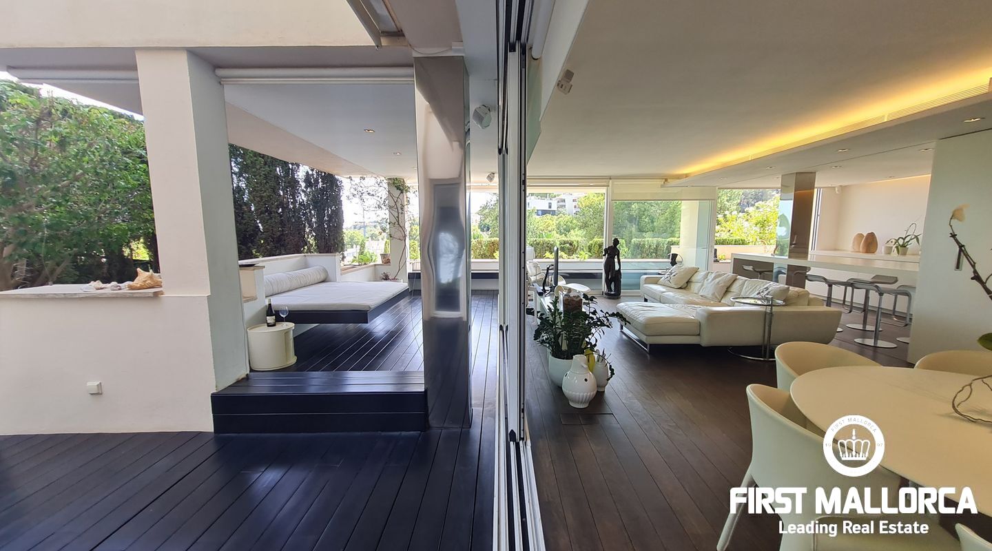 Este apartamento muy singular goza de un ambiente maravilloso y vistas parciales al mar a través de las verdes vistas de Cas Catala. El interior de diseño invita a relajarse y descansar en un oasis privado dentro de una comunidad muy pequeña con piscina y ascensor a todos los niveles. La propiedad fue reformada hace varios años y está en excelentes condiciones con la siguiente distribución que comprende un luminoso salón con zona de comedor y grandes puertas de cristal que dan a la terraza. La cocina moderna tiene un lavadero adyacente con mucho almacenaje y además hay 2 dormitorios y 2 baños, el principal es una habitación muy generosa con dos vestidores, un baño lujoso con sensación de spa, una ducha sauna turca, una bañera grande y vistas a la terraza.