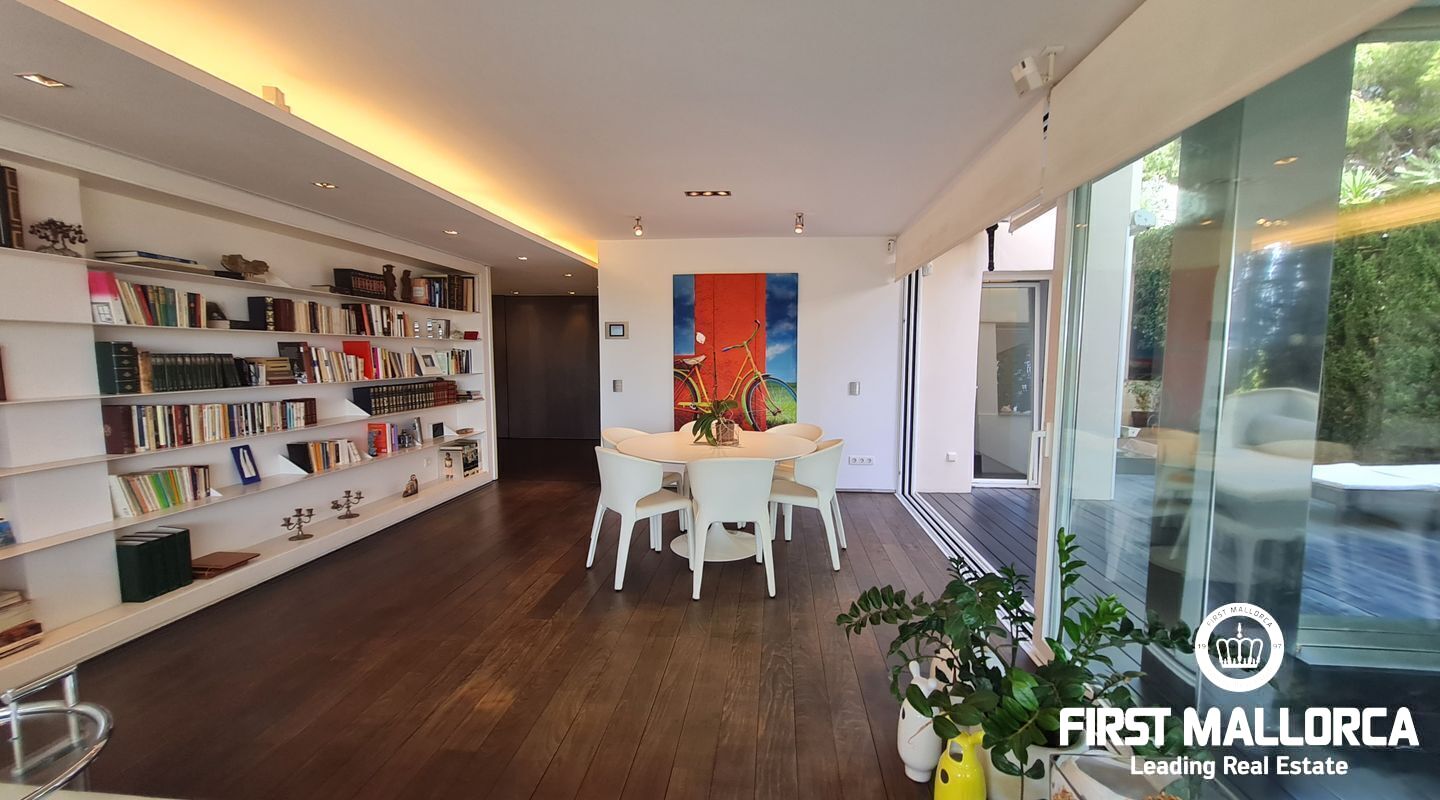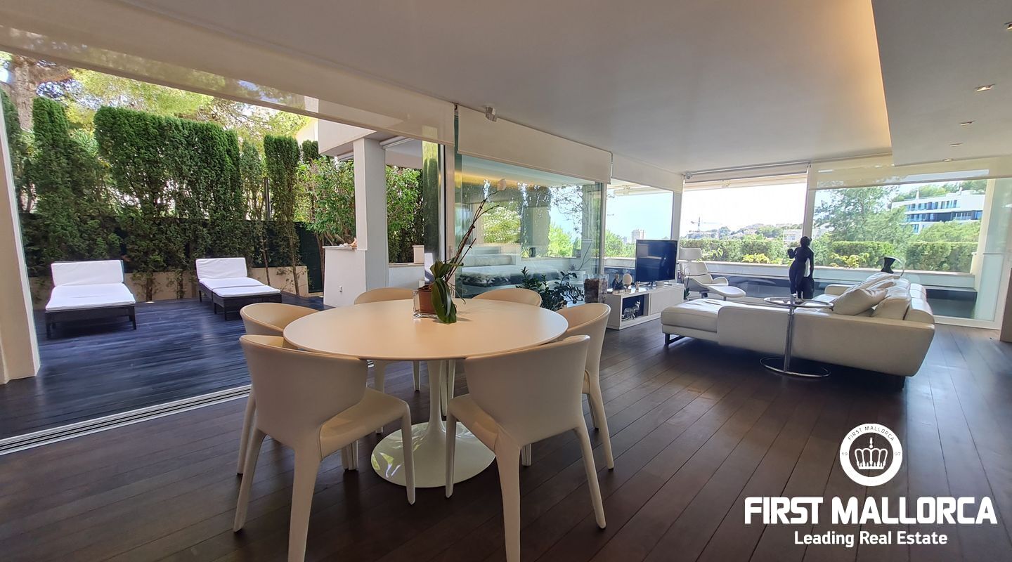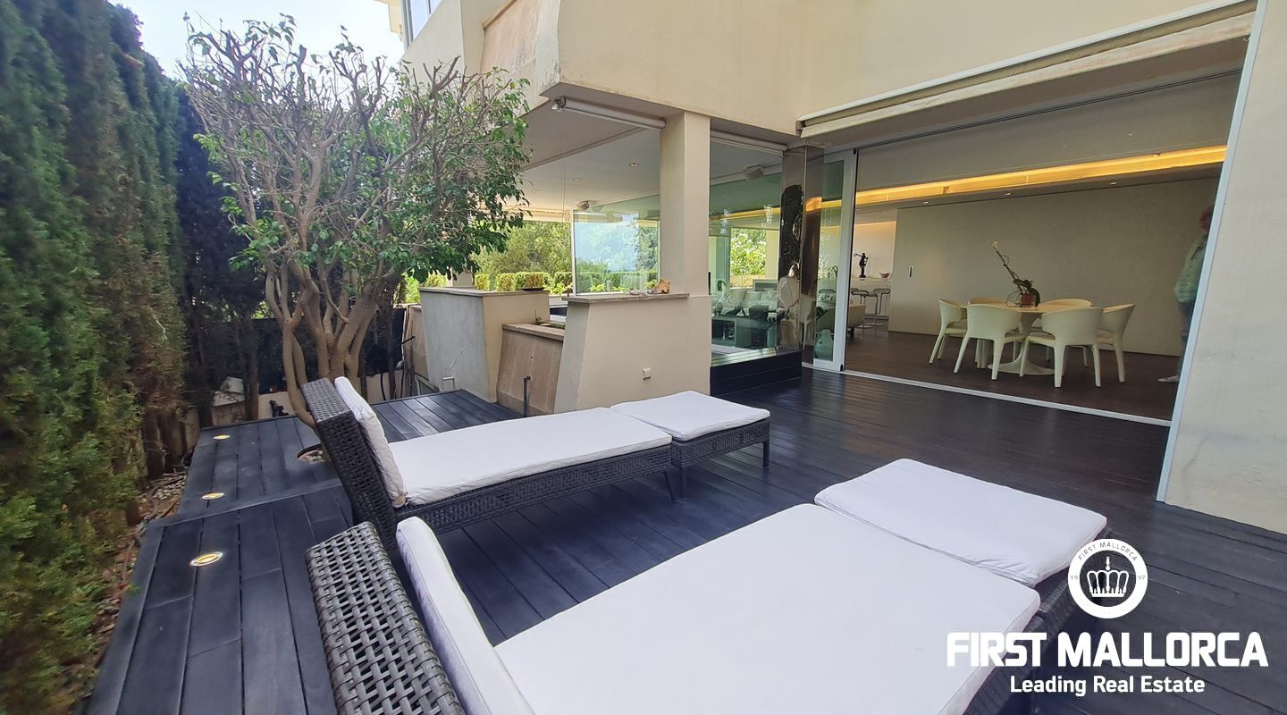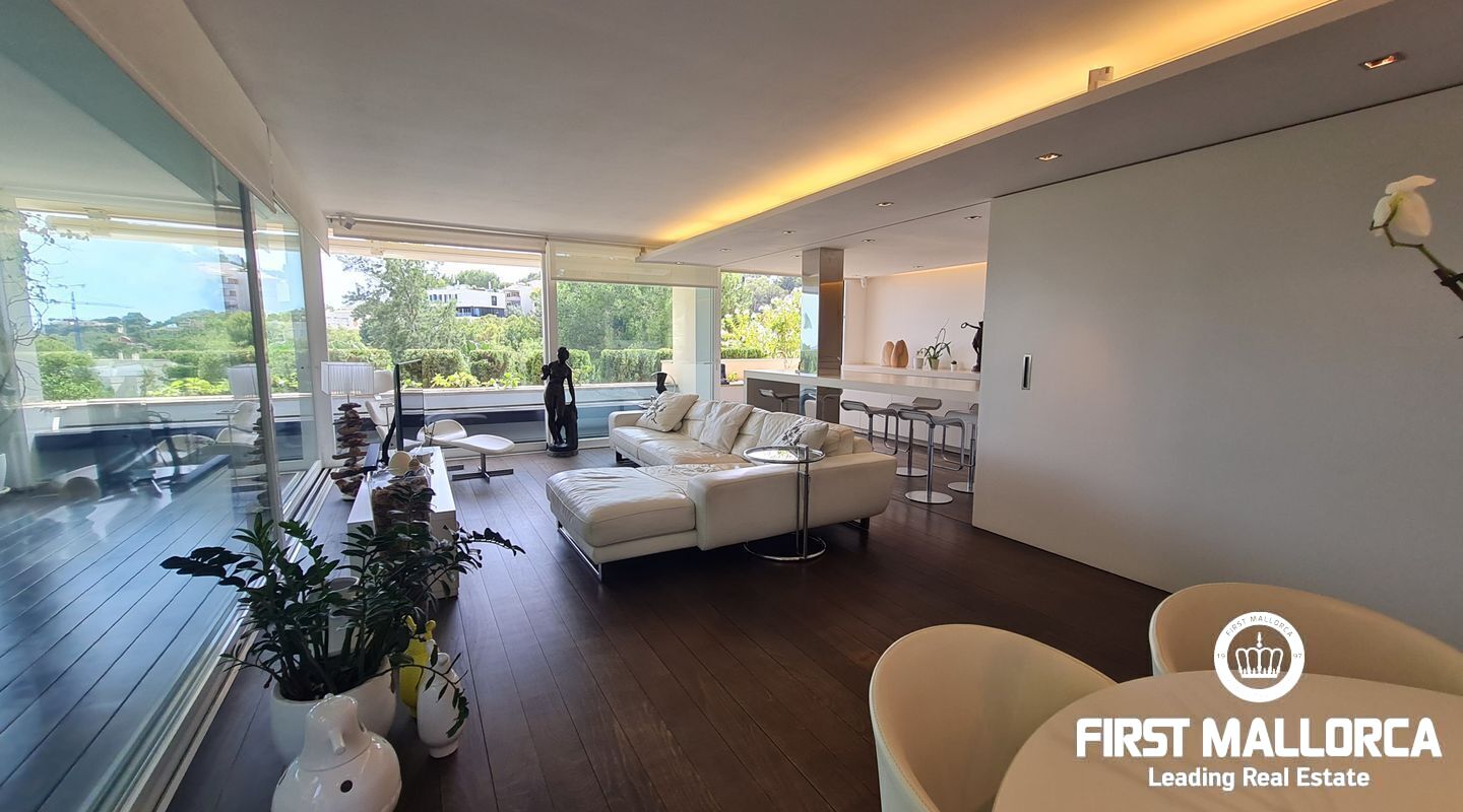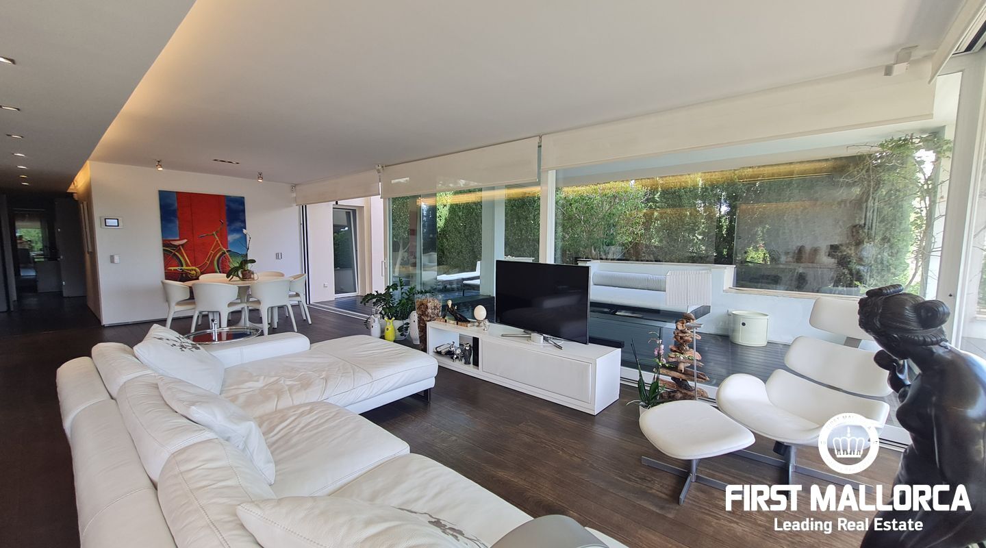 Este apartamento muy singular goza de un ambiente maravilloso y vistas parciales al mar a través de las verdes vistas de Cas Catala. El interior de diseño invita a relajarse y descansar en un oasis privado dentro de una comunidad muy pequeña con piscina y ascensor a todos los niveles. La propiedad fue reformada hace varios años y está en excelentes condiciones con la siguiente distribución que comprende un luminoso salón con zona de comedor y grandes puertas de cristal que dan a la terraza. La cocina moderna tiene un lavadero adyacente con mucho almacenaje y además hay 2 dormitorios y 2 baños, el principal es una habitación muy generosa con dos vestidores, un baño lujoso con sensación de spa, una ducha sauna turca, una bañera grande y vistas a la terraza.