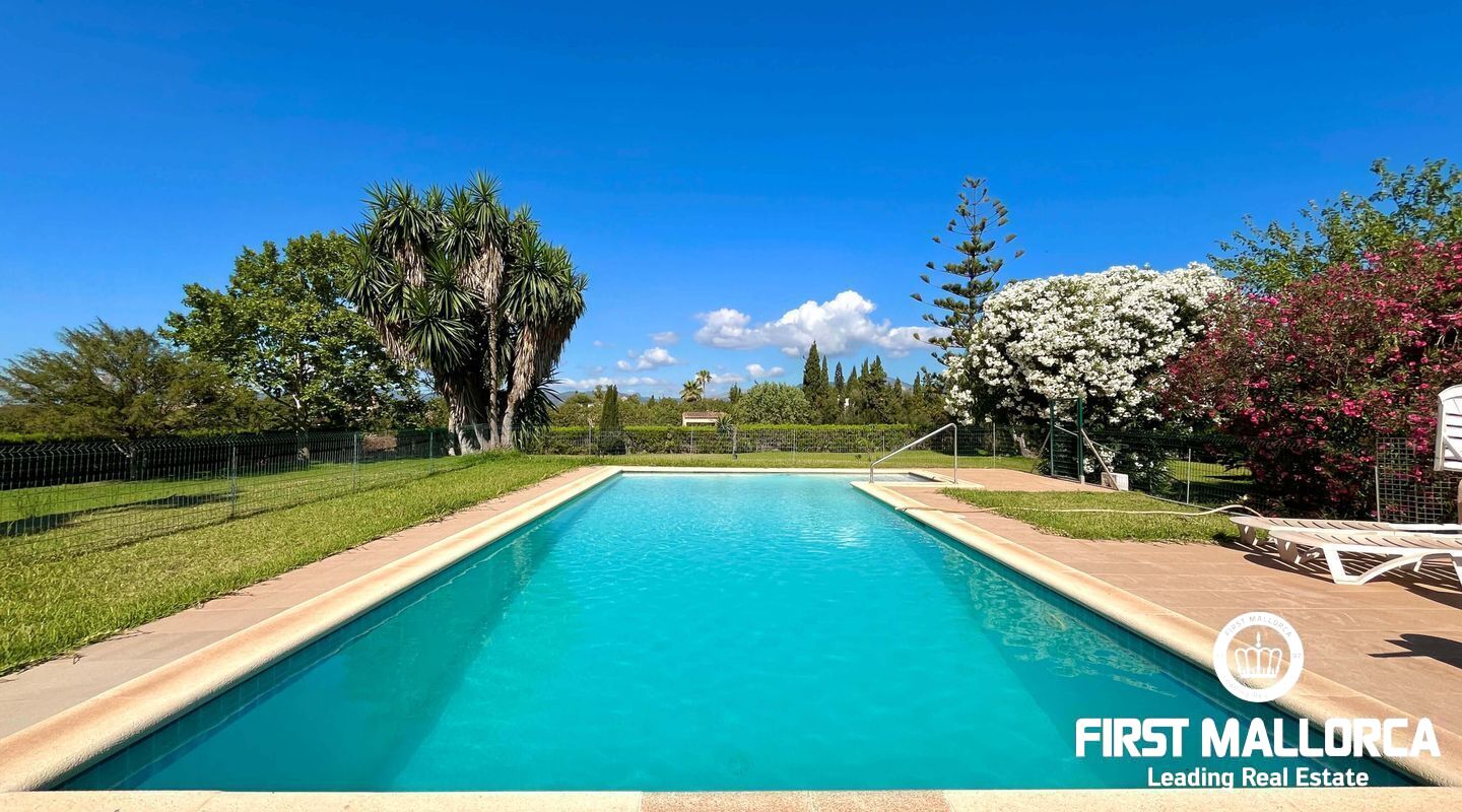 Orientación sur. Vistas al jardín, piscina, campos mallorquines y a la Sierra de Tramuntana.