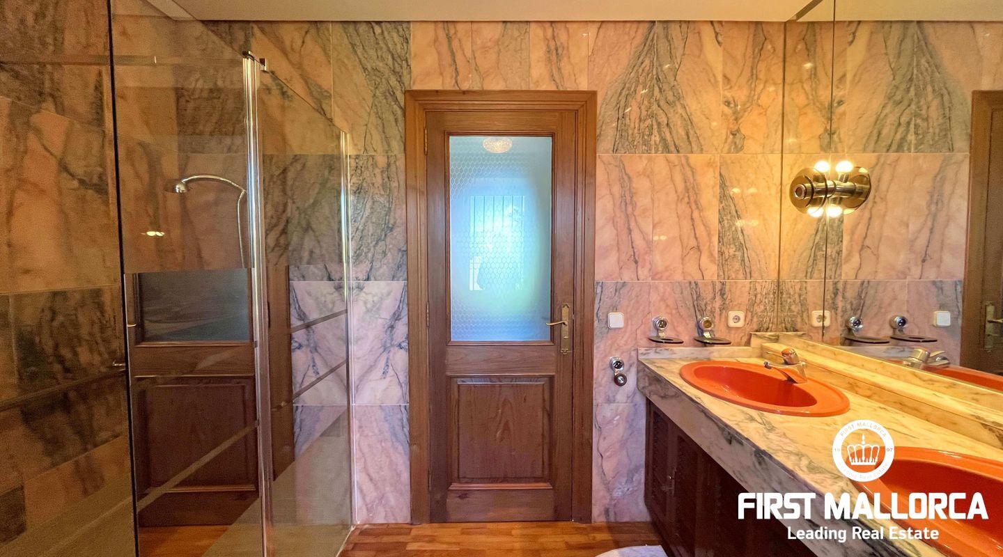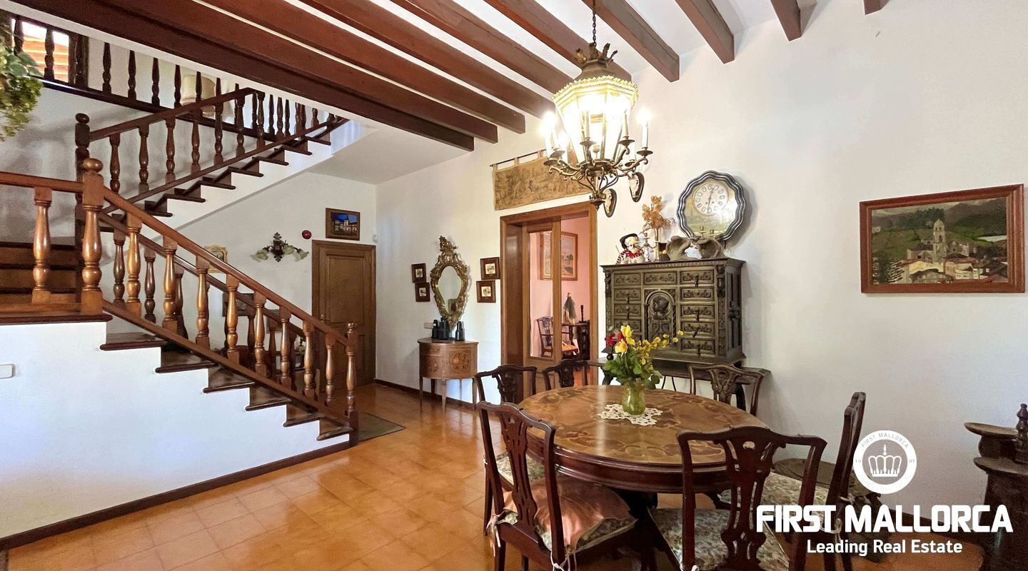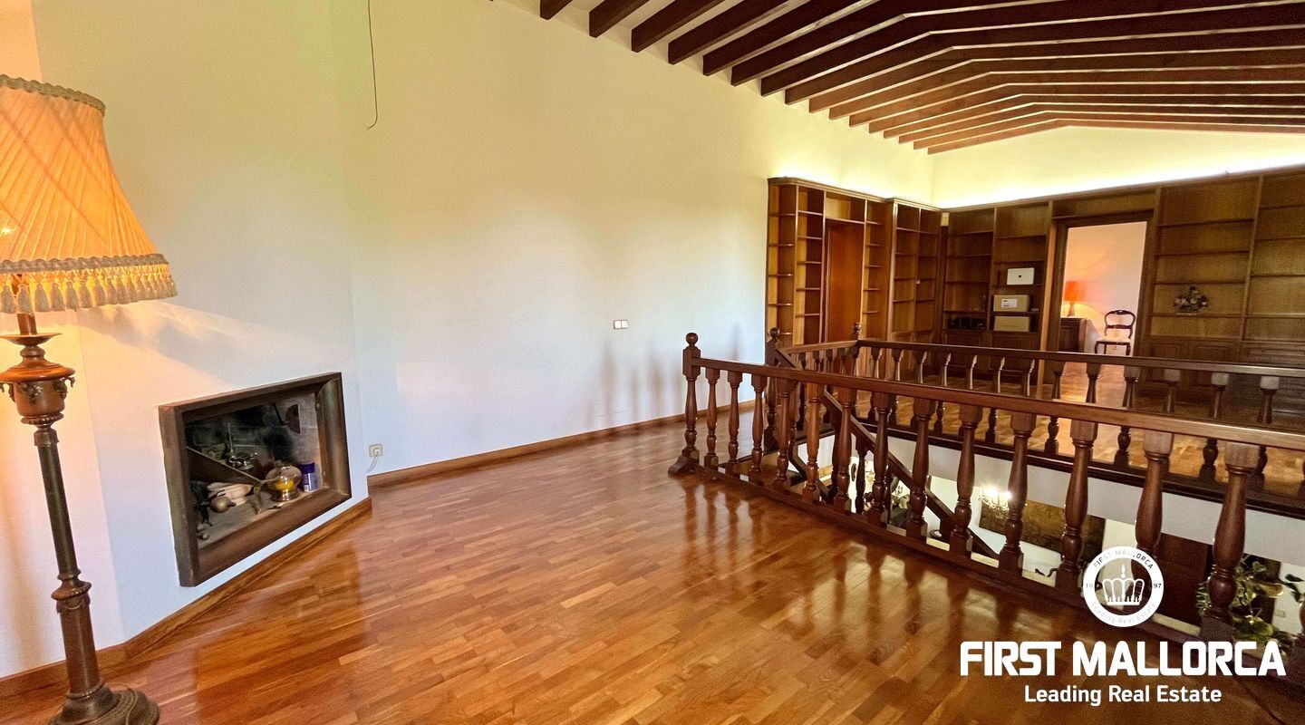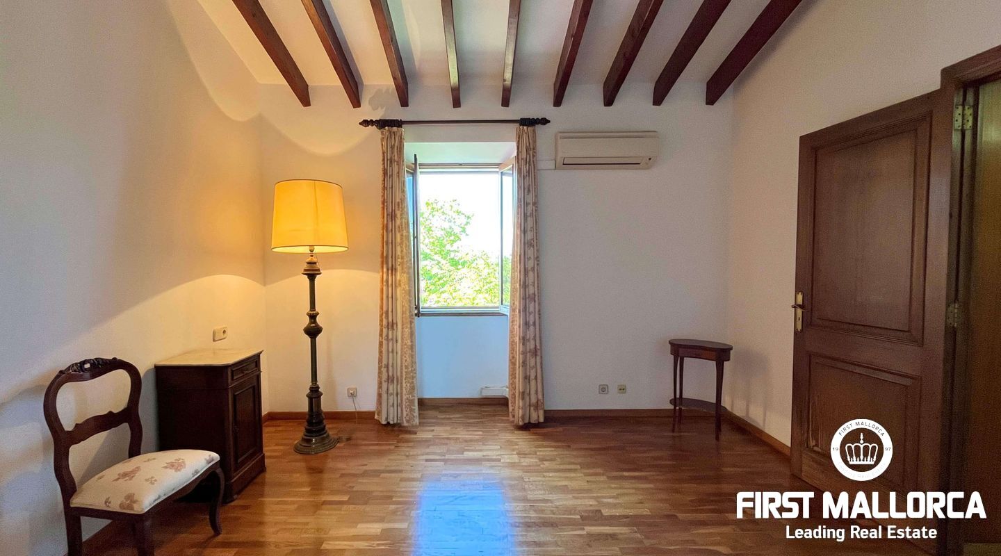 La primera planta alberga 3 dormitorios adicionales, donde 2 comparten un baño y el tercero cuenta con baño en suite. Todos los dormitorios están equipados con armarios empotrados. Destacan los techos altos con vigas de madera, que añaden un toque de encanto tradicional mallorquín.