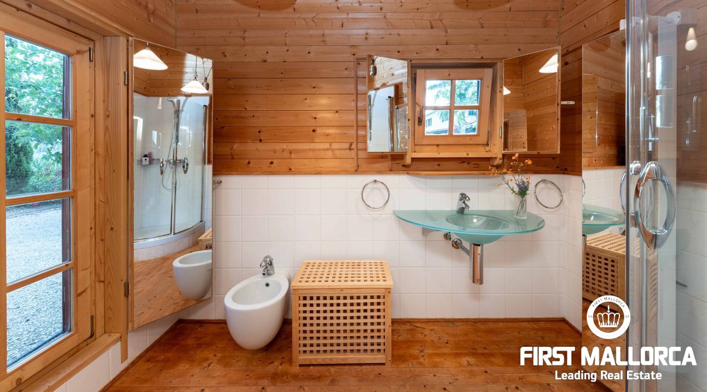 La propiedad consta de la casa principal y una casa de huéspedes con un dormitorio y se extiende por más de 3 hectáreas de terreno. En el interior, la casa principal sorprende con espacios generosos y techos altos con vigas vistas que combinan la arquitectura tradicional con elementos modernos y comodidades contemporáneas. La planta baja alberga un amplio hall de entrada, la sala de estar/comedor, una cocina moderna y espaciosa, un cuarto de servicio, dos dormitorios, dos baños y un aseo de invitados. La planta superior cuenta con dos dormitorios, cada uno con su propio baño en suite. Absolutamente todas las habitaciones tienen salida a su propia terraza con espléndidas vistas. En el sótano se encuentran una bodega, un taller y espacios técnicos y de almacenamiento. Un amplio garaje y dos cocheras ofrecen espacio para 7-8 vehículos.