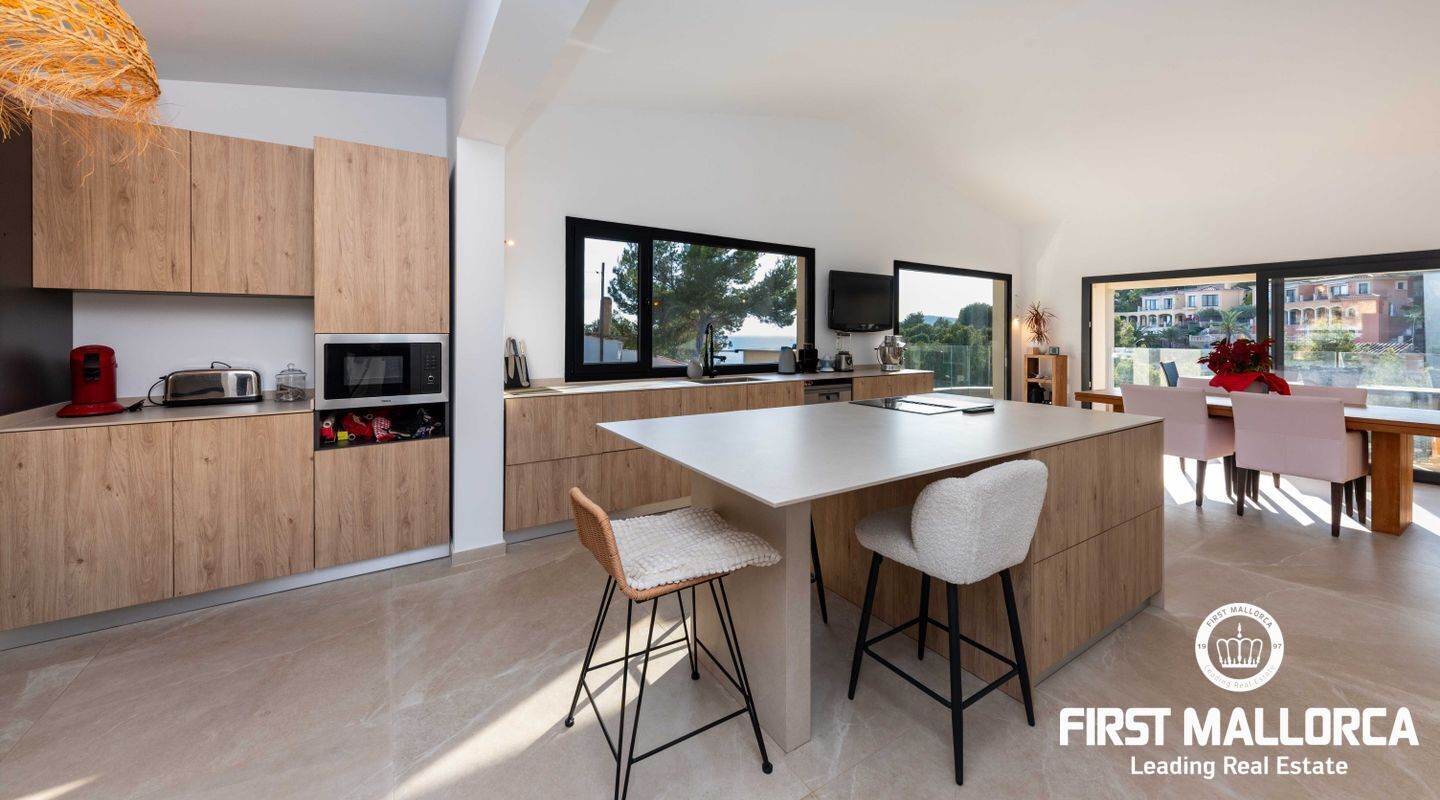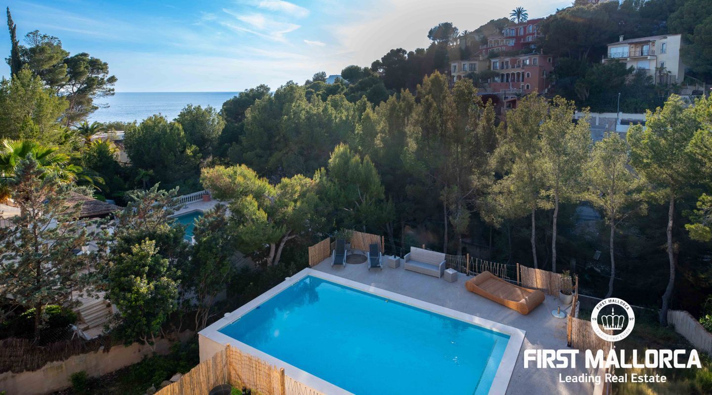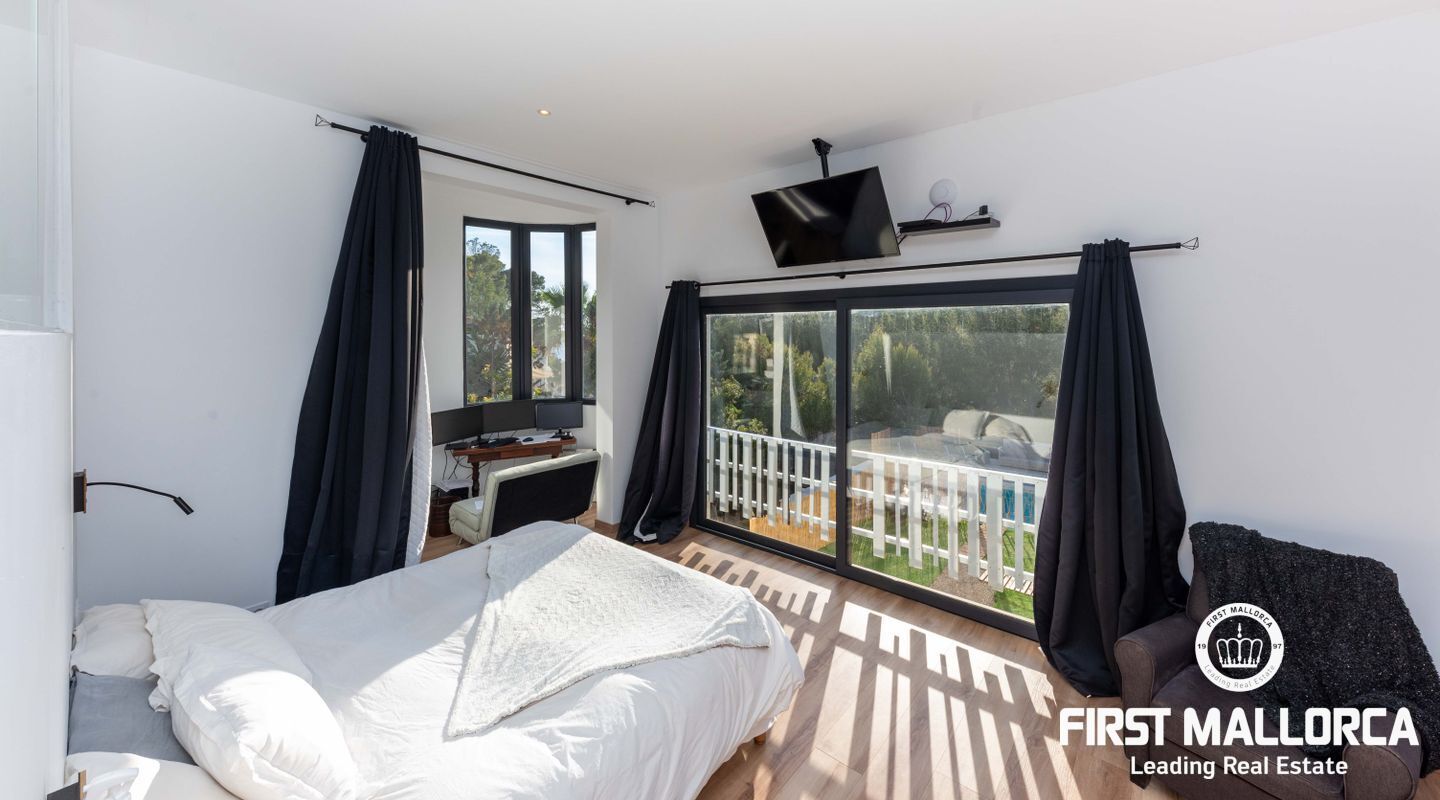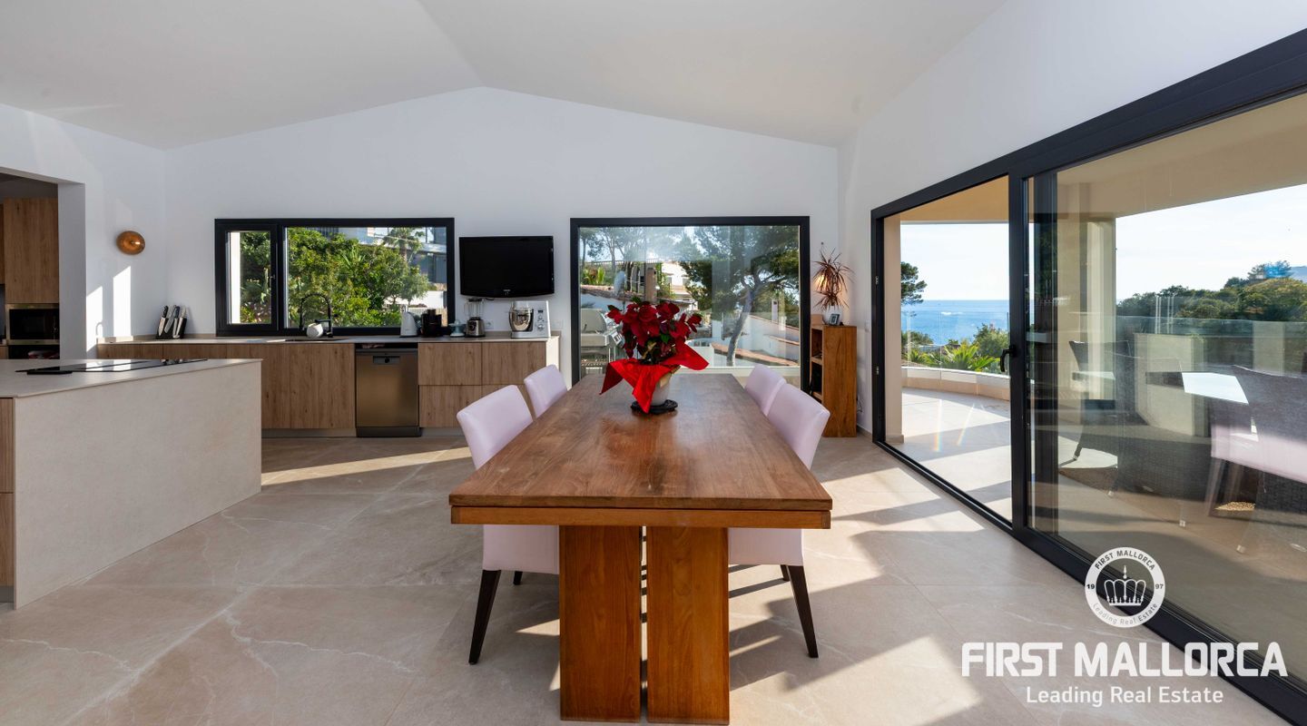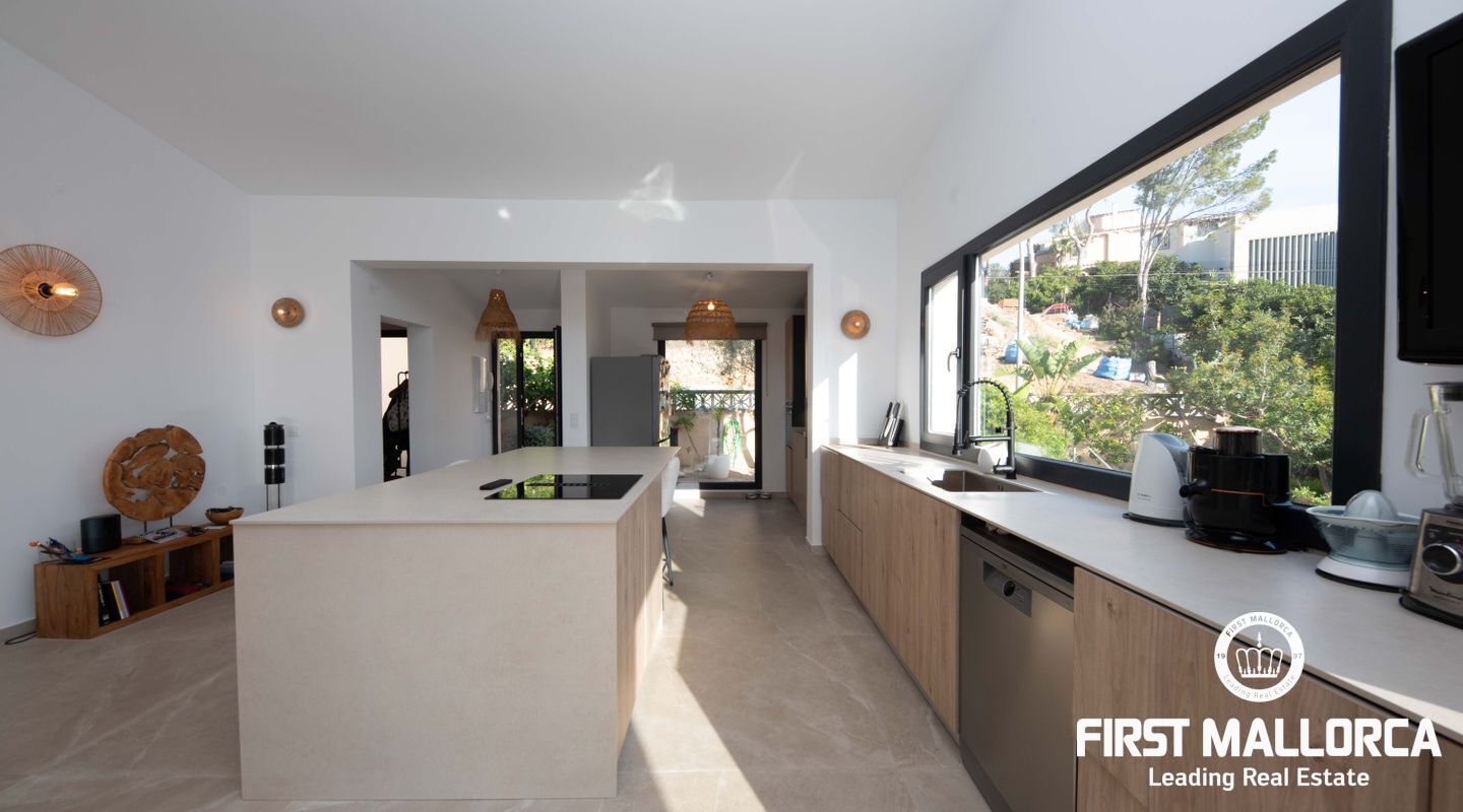 Esta moderna villa en Costa de la Calma fue completamente renovada en 2022. Se ingresa a la casa en la planta baja y se accede a la sala de estar y comedor de planta abierta con cocina abierta. El salón da a la gran terraza con vistas panorámicas al mar. La escalera conduce a los otros 3 dormitorios con 3 baños en suite. El dormitorio principal con amplio vestidor y baños de buen tamaño con vistas al mar y al despacho. dos dormitorios tienen vistas panorámicas al mar. Delante de la casa hay algunos árboles frutales maduros, en la parte trasera hay una amplia zona de piscina con posibilidades de jardín, barbacoa y otras actividades. Hay un apartamento de invitados con cocina al lado de la piscina. La villa está a un minuto a pie de la playa, lo que la convierte en un destino de vacaciones perfecto. Hay un amplio garaje, 2 trasteros y un aseo para invitados. Costa de la Calma es un lugar tranquilo en el municipio de Calvià. Se encuentra en el suroeste de Mallorca con numerosos puertos deportivos, campos de golf, escuelas internacionales, hermosas bahías y excelente infraestructura. también está a 20 min en coche de Palma y 25 min del aeropuerto.