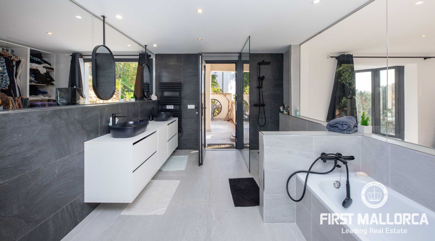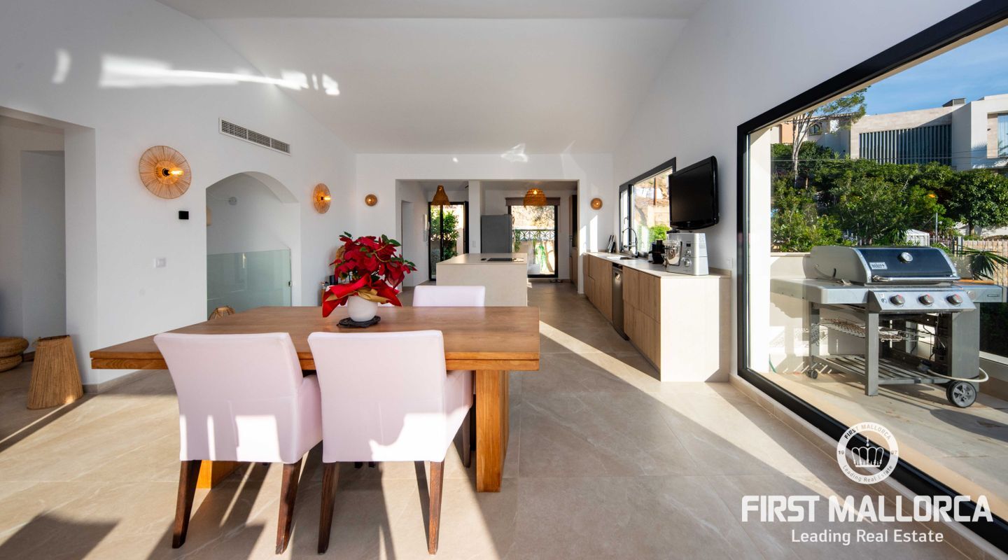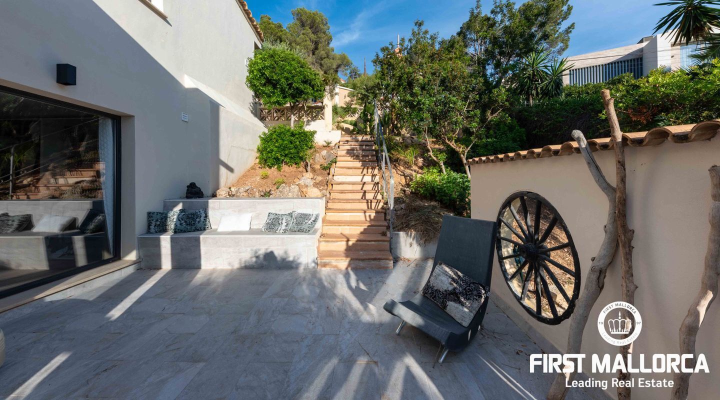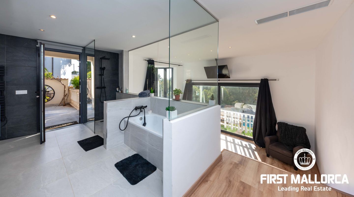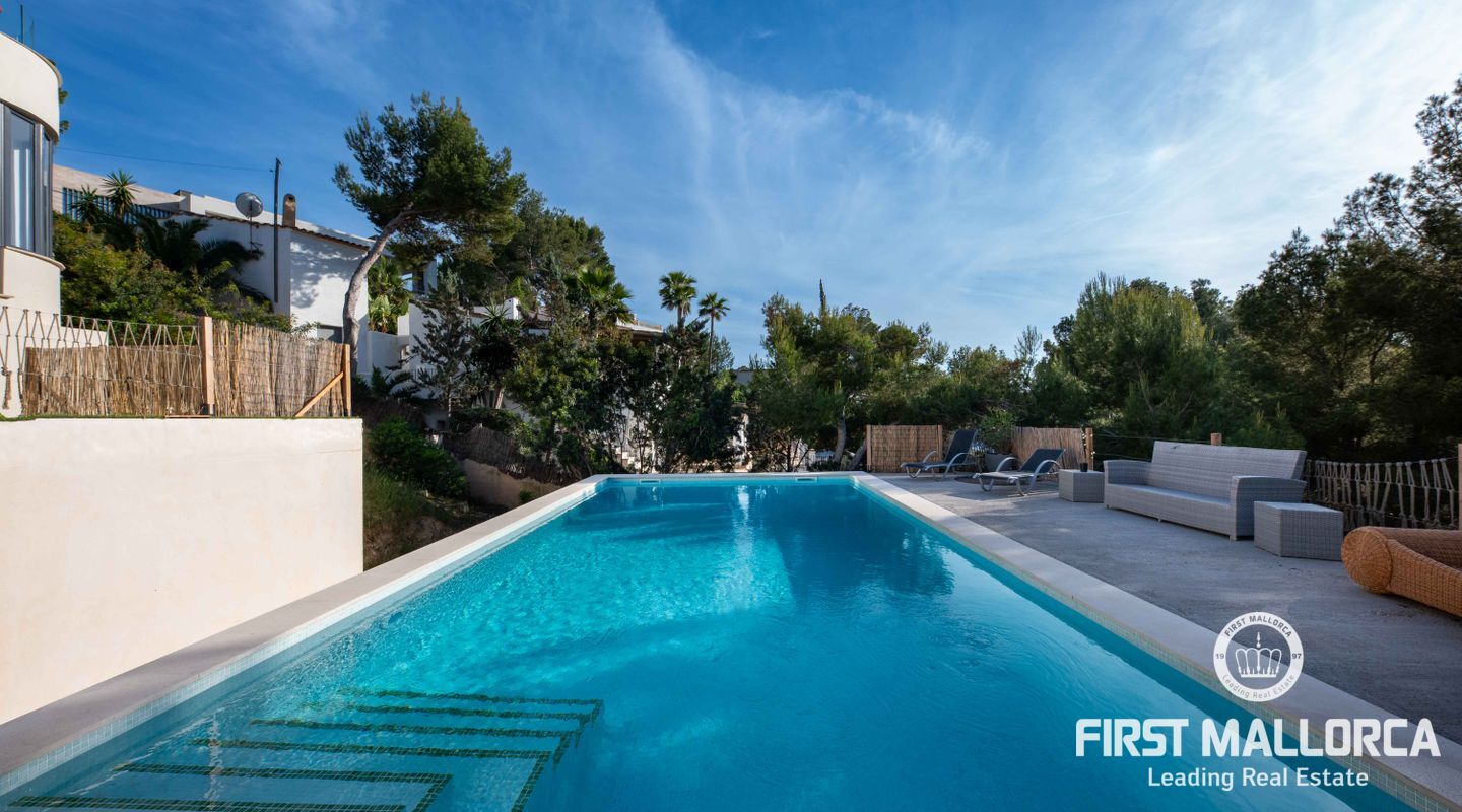 Esta moderna villa en Costa de la Calma fue completamente renovada en 2022. Se ingresa a la casa en la planta baja y se accede a la sala de estar y comedor de planta abierta con cocina abierta. El salón da a la gran terraza con vistas panorámicas al mar. La escalera conduce a los otros 3 dormitorios con 3 baños en suite. El dormitorio principal con amplio vestidor y baños de buen tamaño con vistas al mar y al despacho. dos dormitorios tienen vistas panorámicas al mar. Delante de la casa hay algunos árboles frutales maduros, en la parte trasera hay una amplia zona de piscina con posibilidades de jardín, barbacoa y otras actividades. Hay un apartamento de invitados con cocina al lado de la piscina. La villa está a un minuto a pie de la playa, lo que la convierte en un destino de vacaciones perfecto. Hay un amplio garaje, 2 trasteros y un aseo para invitados. Costa de la Calma es un lugar tranquilo en el municipio de Calvià. Se encuentra en el suroeste de Mallorca con numerosos puertos deportivos, campos de golf, escuelas internacionales, hermosas bahías y excelente infraestructura. también está a 20 min en coche de Palma y 25 min del aeropuerto.