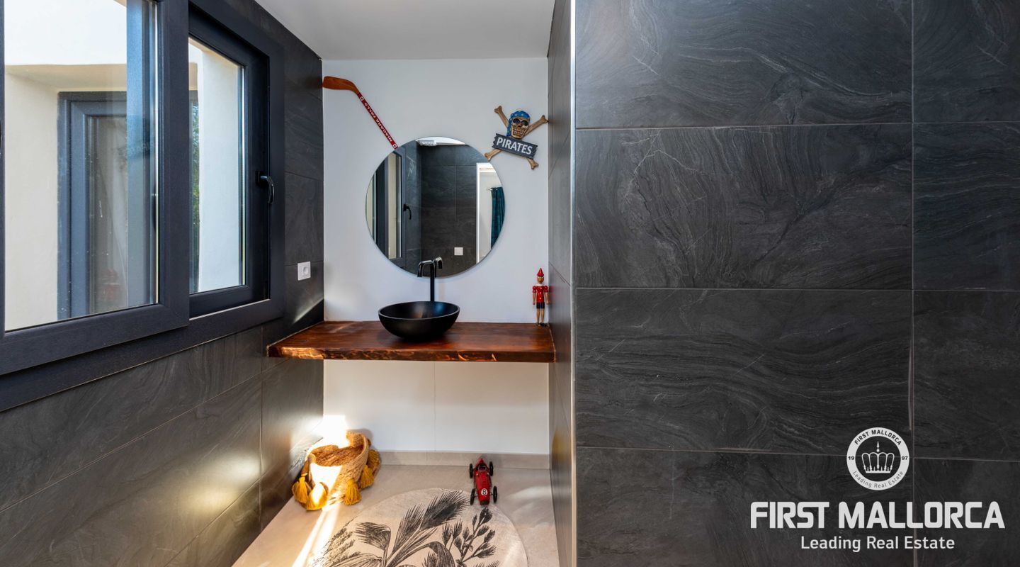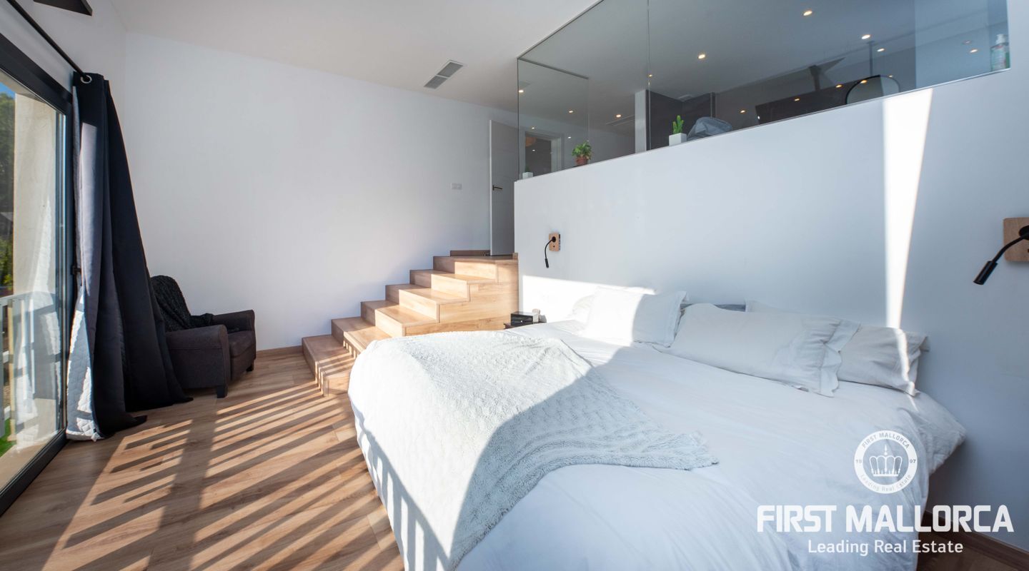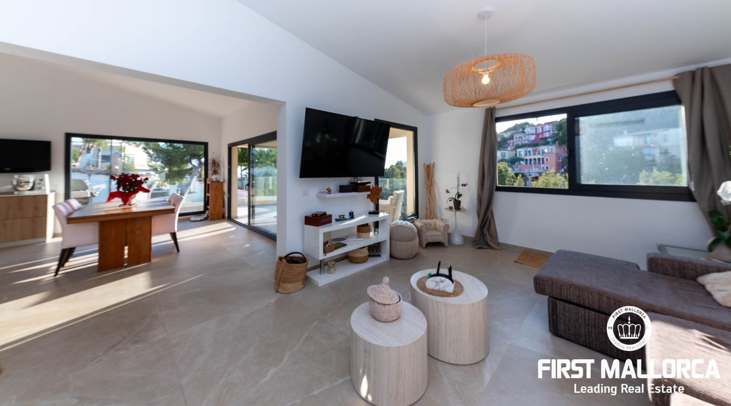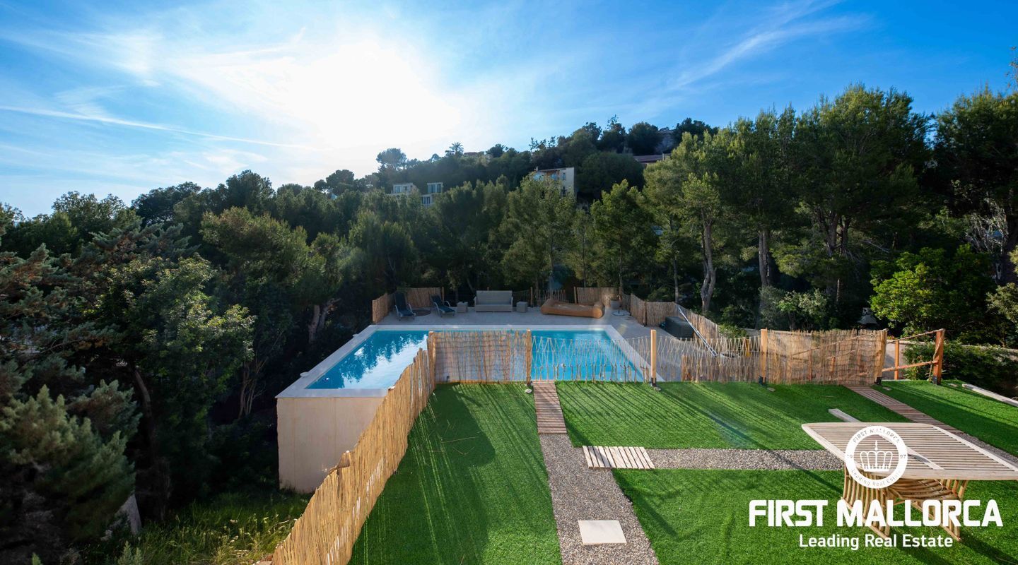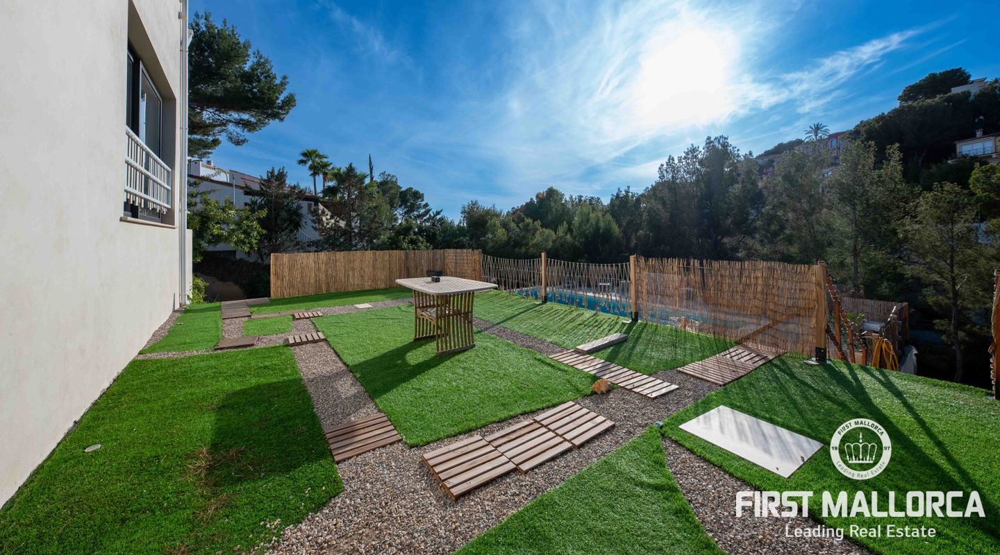 Esta moderna villa en Costa de la Calma fue completamente renovada en 2022. Se ingresa a la casa en la planta baja y se accede a la sala de estar y comedor de planta abierta con cocina abierta. El salón da a la gran terraza con vistas panorámicas al mar. La escalera conduce a los otros 3 dormitorios con 3 baños en suite. El dormitorio principal con amplio vestidor y baños de buen tamaño con vistas al mar y al despacho. dos dormitorios tienen vistas panorámicas al mar. Delante de la casa hay algunos árboles frutales maduros, en la parte trasera hay una amplia zona de piscina con posibilidades de jardín, barbacoa y otras actividades. Hay un apartamento de invitados con cocina al lado de la piscina. La villa está a un minuto a pie de la playa, lo que la convierte en un destino de vacaciones perfecto. Hay un amplio garaje, 2 trasteros y un aseo para invitados. Costa de la Calma es un lugar tranquilo en el municipio de Calvià. Se encuentra en el suroeste de Mallorca con numerosos puertos deportivos, campos de golf, escuelas internacionales, hermosas bahías y excelente infraestructura. también está a 20 min en coche de Palma y 25 min del aeropuerto.