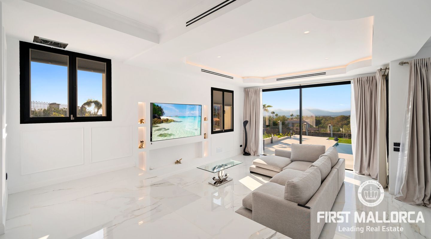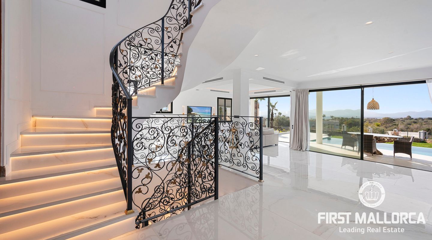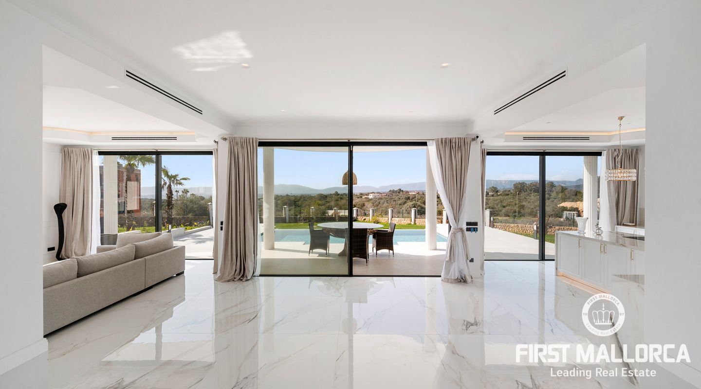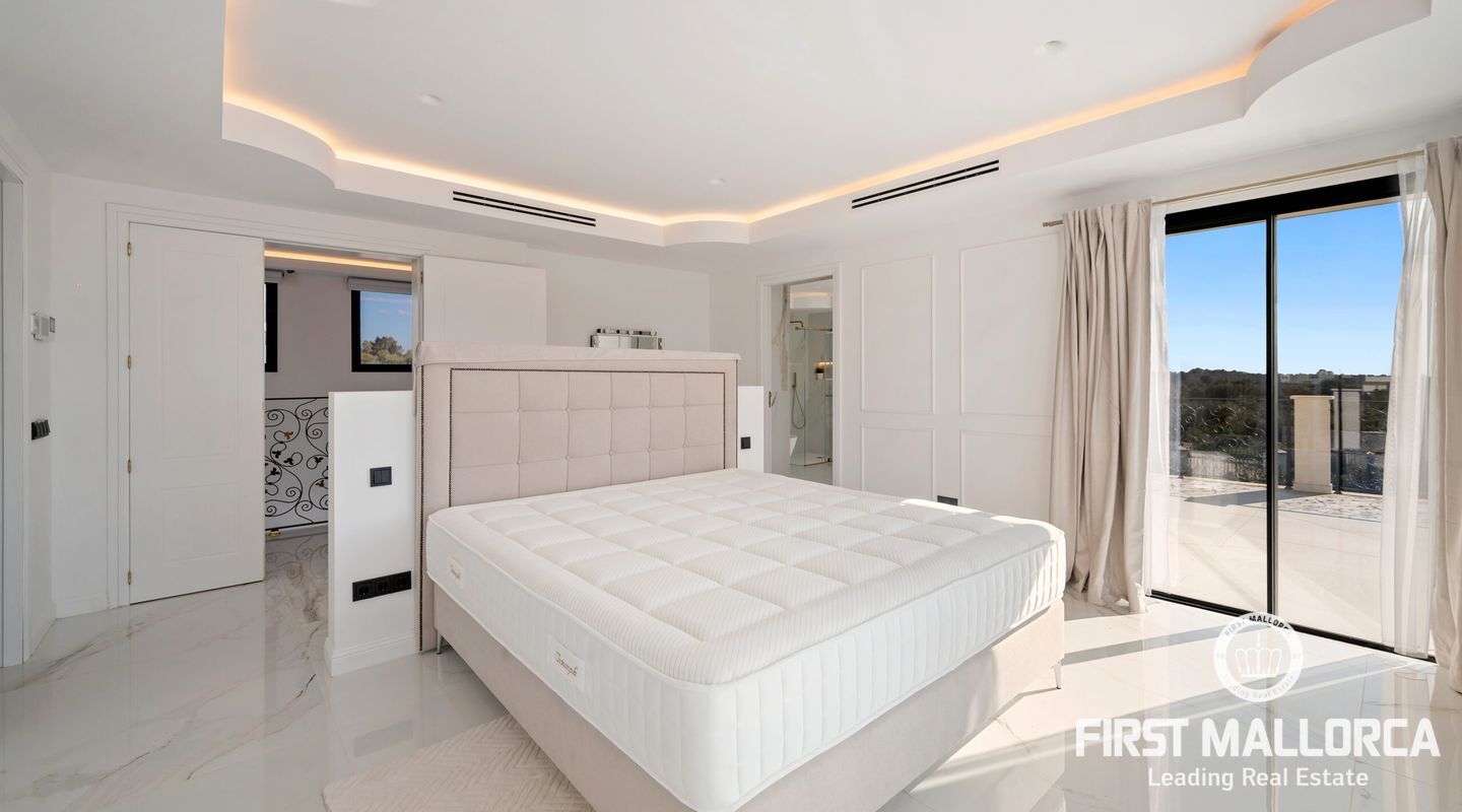La villa dispone de 4 amplios dormitorios, tres de los cuales tienen baño privado y la gran suite principal ocupa toda la planta superior, un refugio exclusivo con un lujoso cuarto de baño con ducha y bañera, un vestidor y una terraza privada de aproximadamente 100m2 con impresionantes vistas. La planta baja tiene un diseño de planta abierta con ventanas de suelo a techo, un luminoso salón, una elegante cocina con isla central y puertas que dan a las terrazas, el jardín y la hermosa piscina.