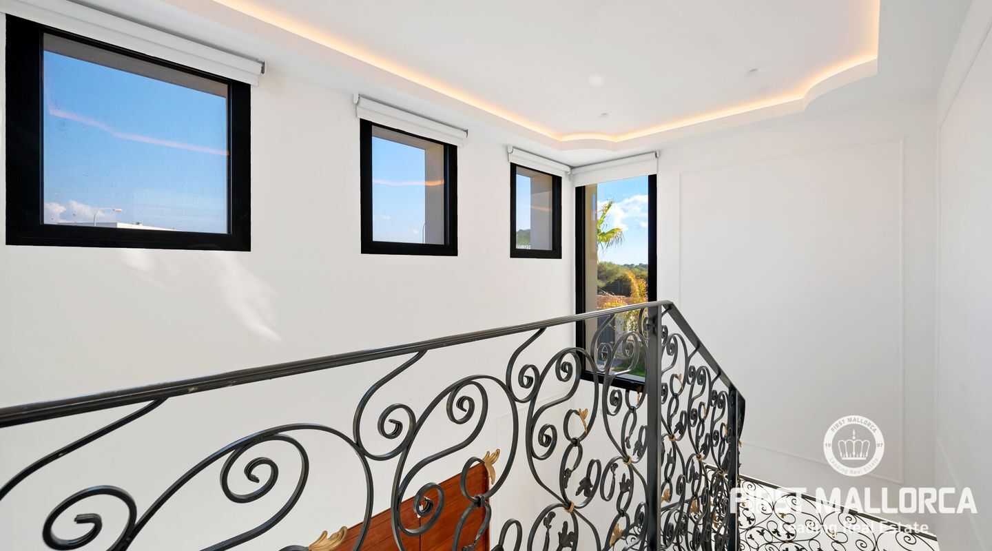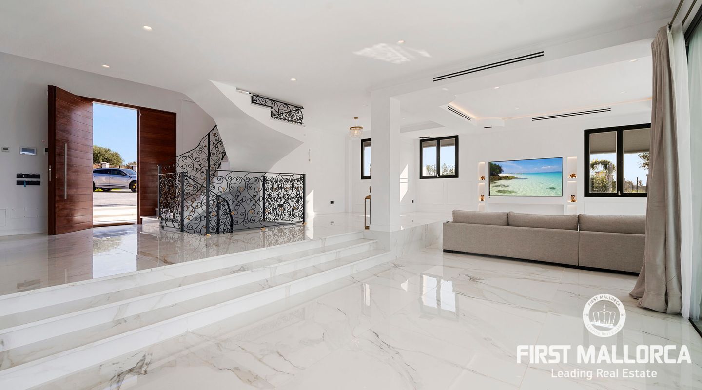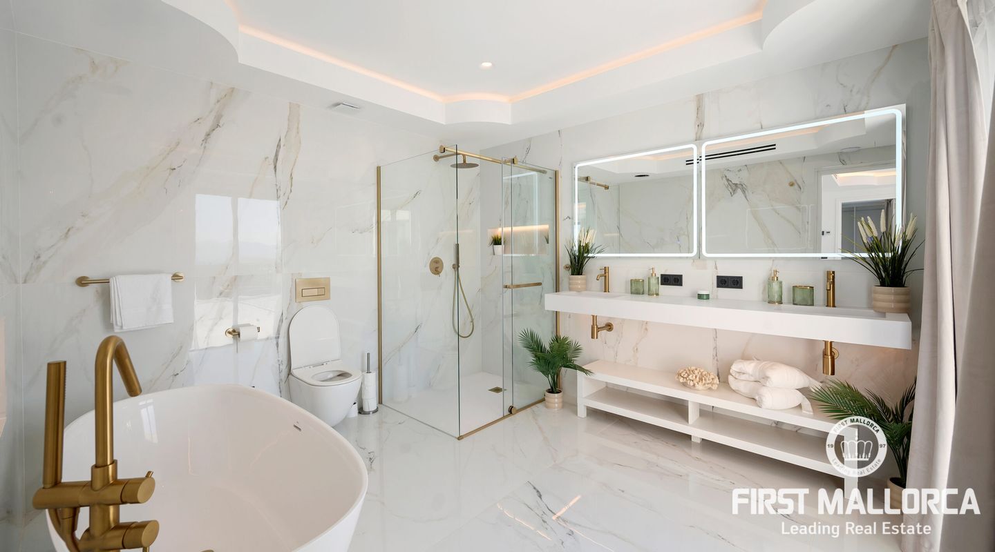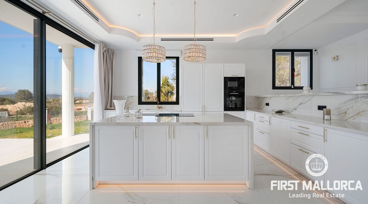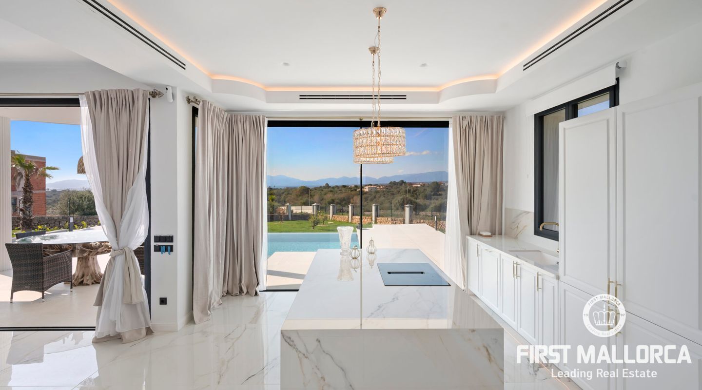 La villa dispone de 4 amplios dormitorios, tres de los cuales tienen baño privado y la gran suite principal ocupa toda la planta superior, un refugio exclusivo con un lujoso cuarto de baño con ducha y bañera, un vestidor y una terraza privada de aproximadamente 100m2 con impresionantes vistas. La planta baja tiene un diseño de planta abierta con ventanas de suelo a techo, un luminoso salón, una elegante cocina con isla central y puertas que dan a las terrazas, el jardín y la hermosa piscina.