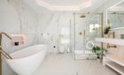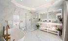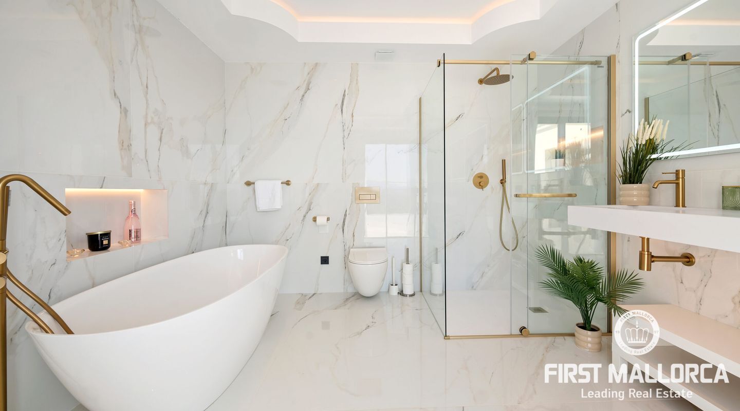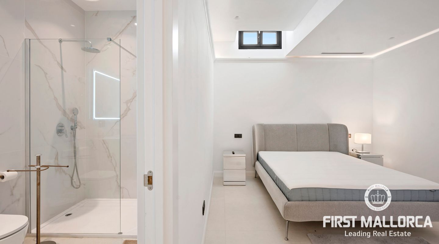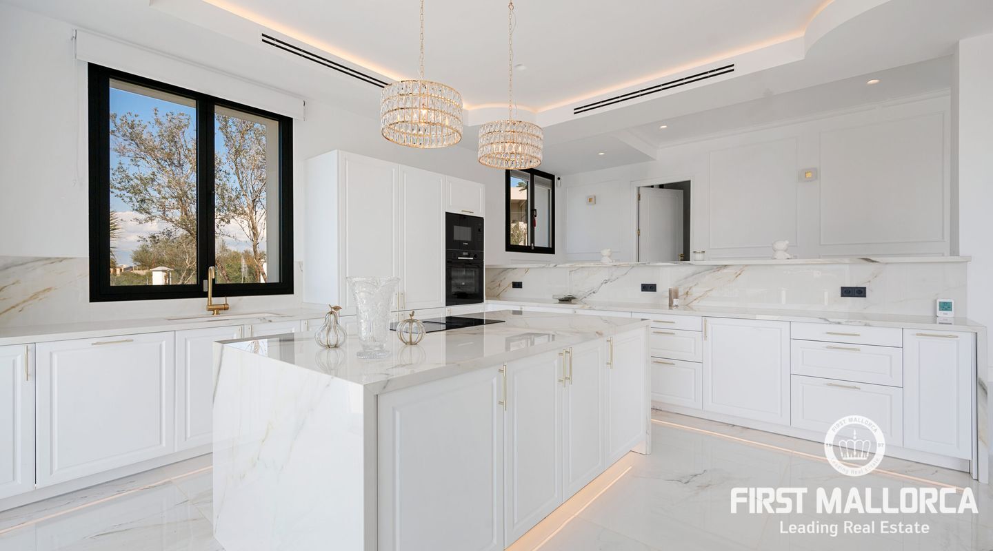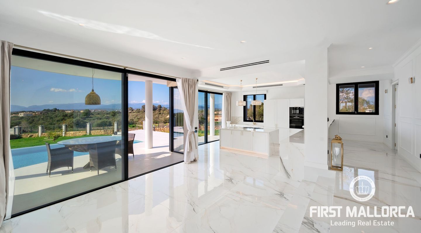 La villa dispone de 4 amplios dormitorios, tres de los cuales tienen baño privado y la gran suite principal ocupa toda la planta superior, un refugio exclusivo con un lujoso cuarto de baño con ducha y bañera, un vestidor y una terraza privada de aproximadamente 100m2 con impresionantes vistas. La planta baja tiene un diseño de planta abierta con ventanas de suelo a techo, un luminoso salón, una elegante cocina con isla central y puertas que dan a las terrazas, el jardín y la hermosa piscina.
