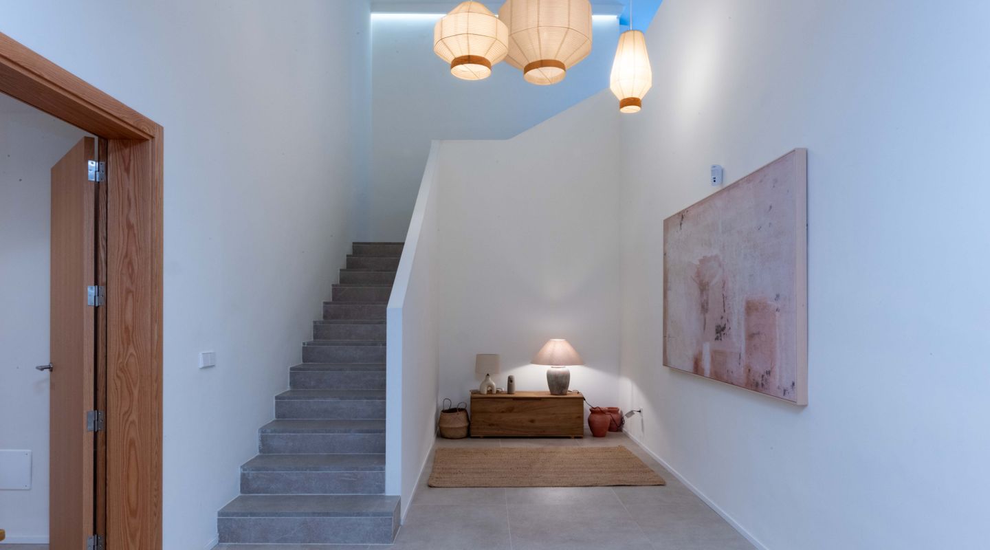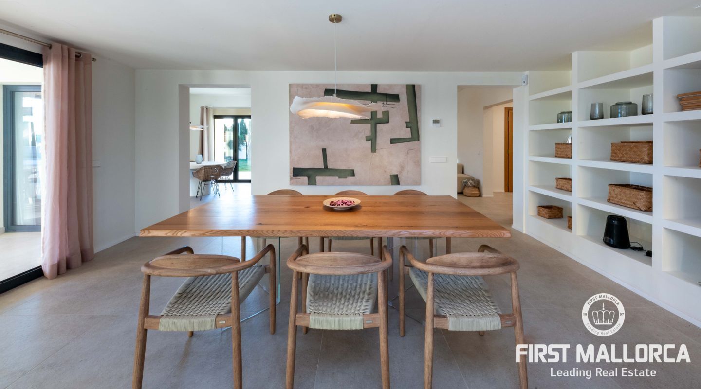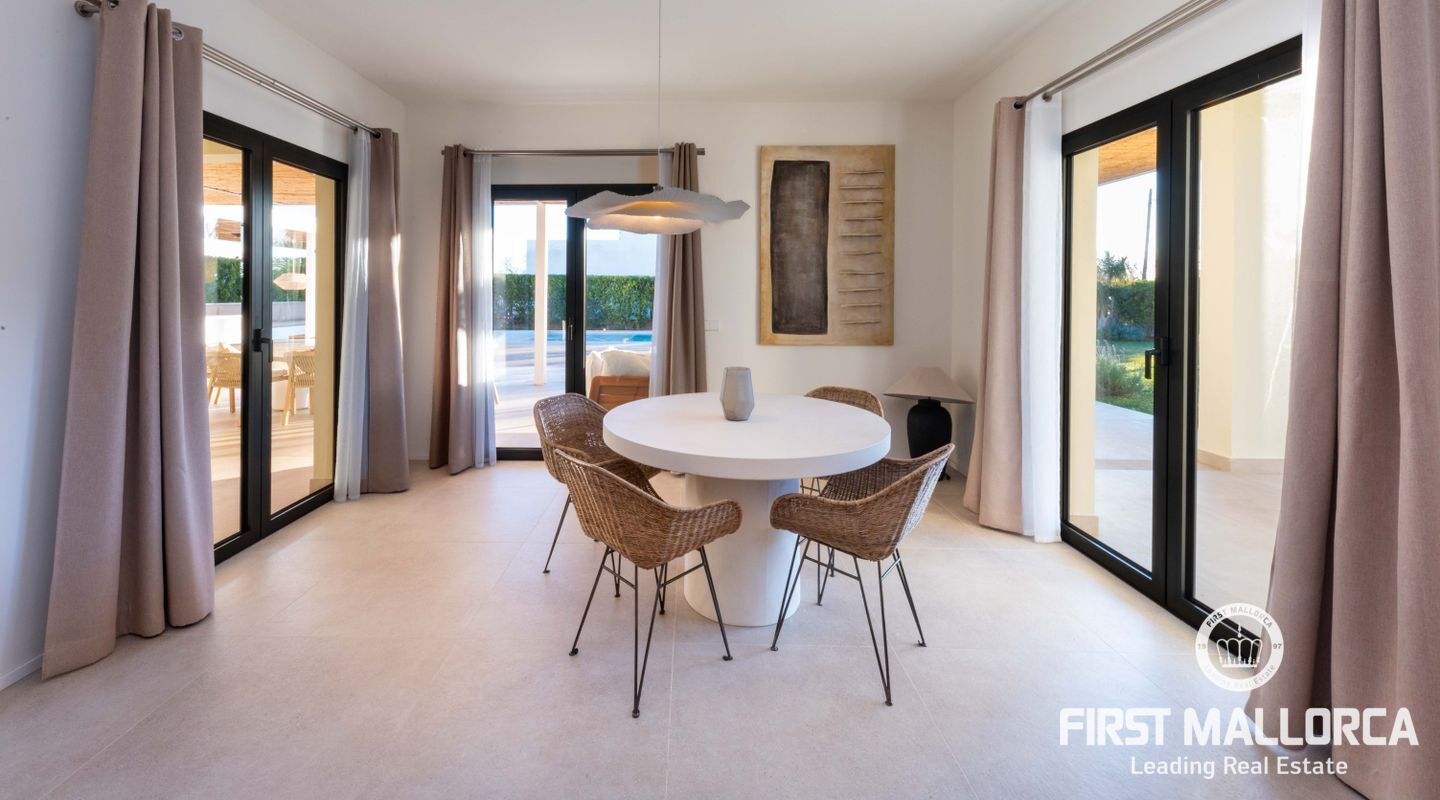 La casa, distribuida principalmente en una sola planta, ha sido diseñada para ofrecer el máximo confort y privacidad. Cuenta con amplios y luminosos espacios, con una elegante sala de estar, comedor independiente y una moderna cocina totalmente equipada con acceso directo a las terrazas exteriores y a la zona de piscina.
