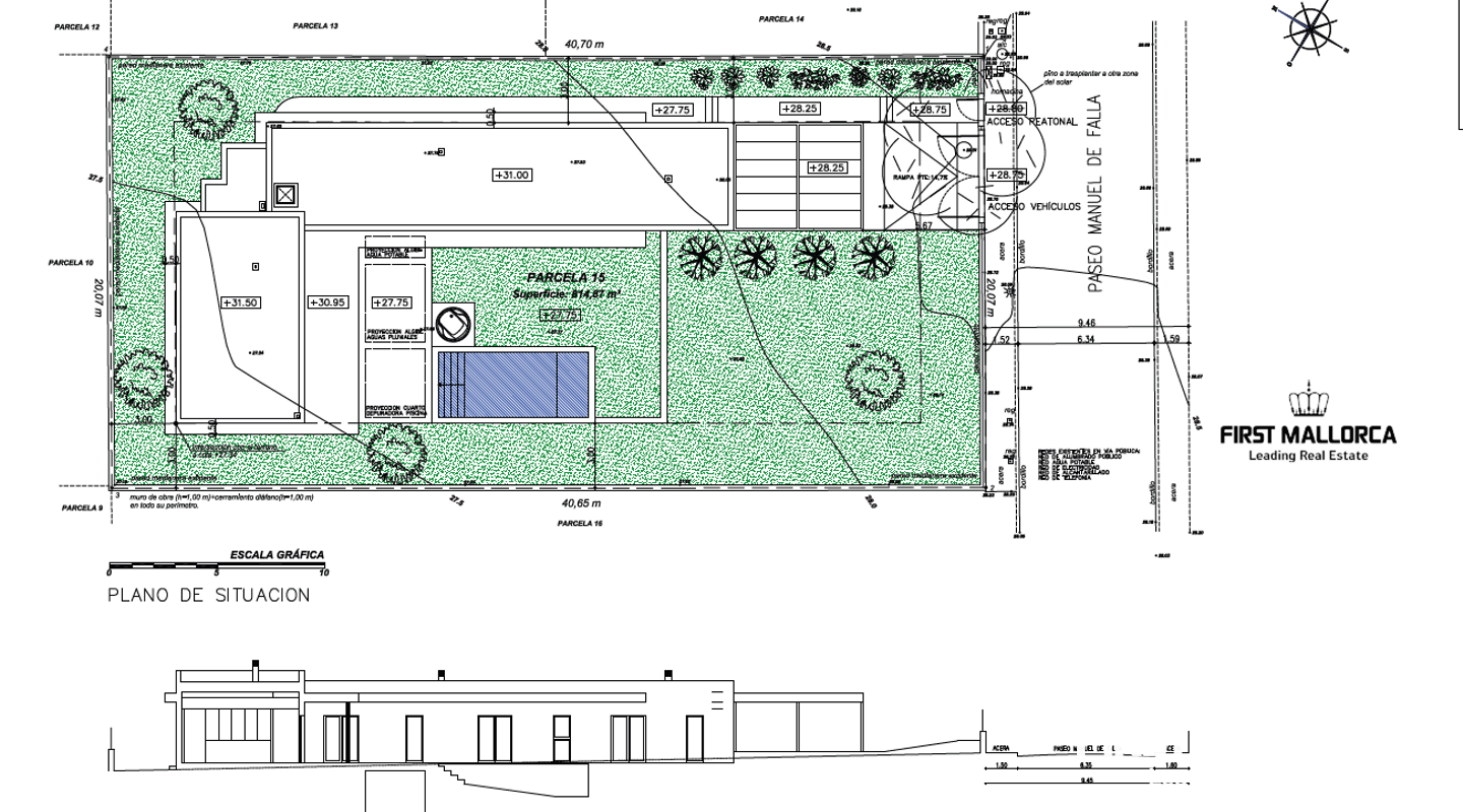 El proyecto básico para una vivienda unifamiliar con piscina ya ha sido presentado al ayuntamiento en agosto de 2024, con todas las tasas pagadas. Además, el estudio geotécnico y topográfico ya están completos y se está a la espera de la aprobación de la licencia.
