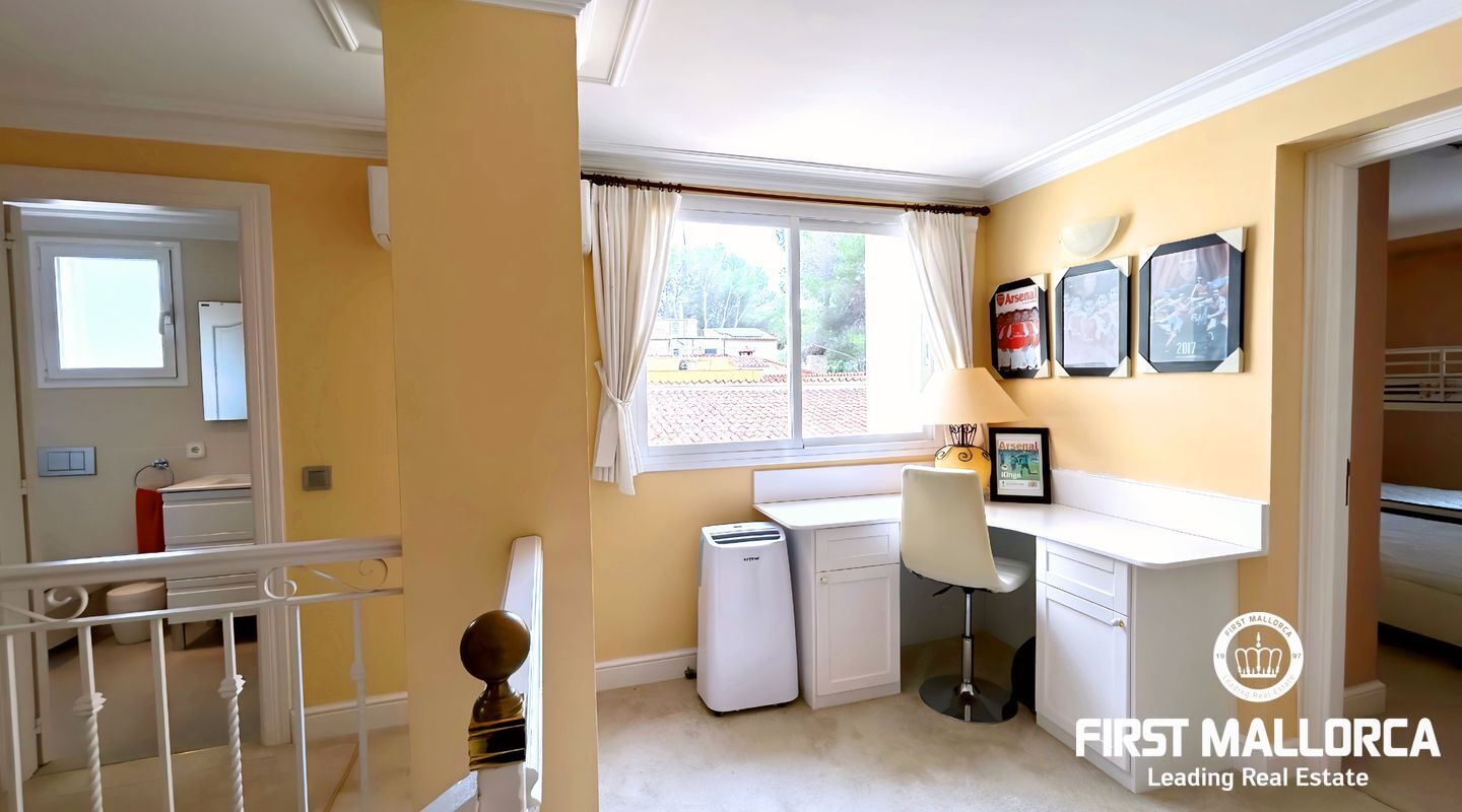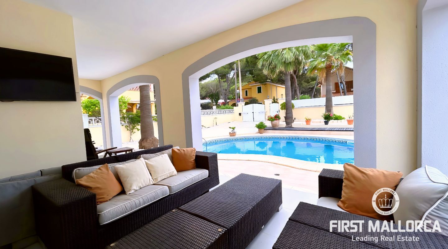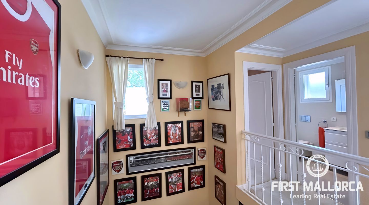 Desde el primer momento en que entras en esta casa perfectamente cuidada, te recibe una distribución bien diseñada que equilibra las zonas comunes abiertas con espacios privados. El acogedor salón se abre a una terraza cubierta, perfecta para cenas al aire libre o para relajarse junto a la piscina.