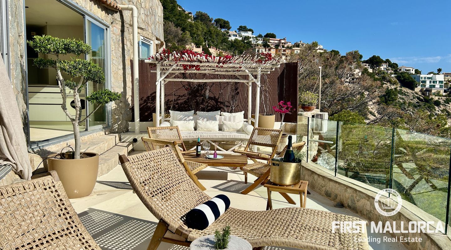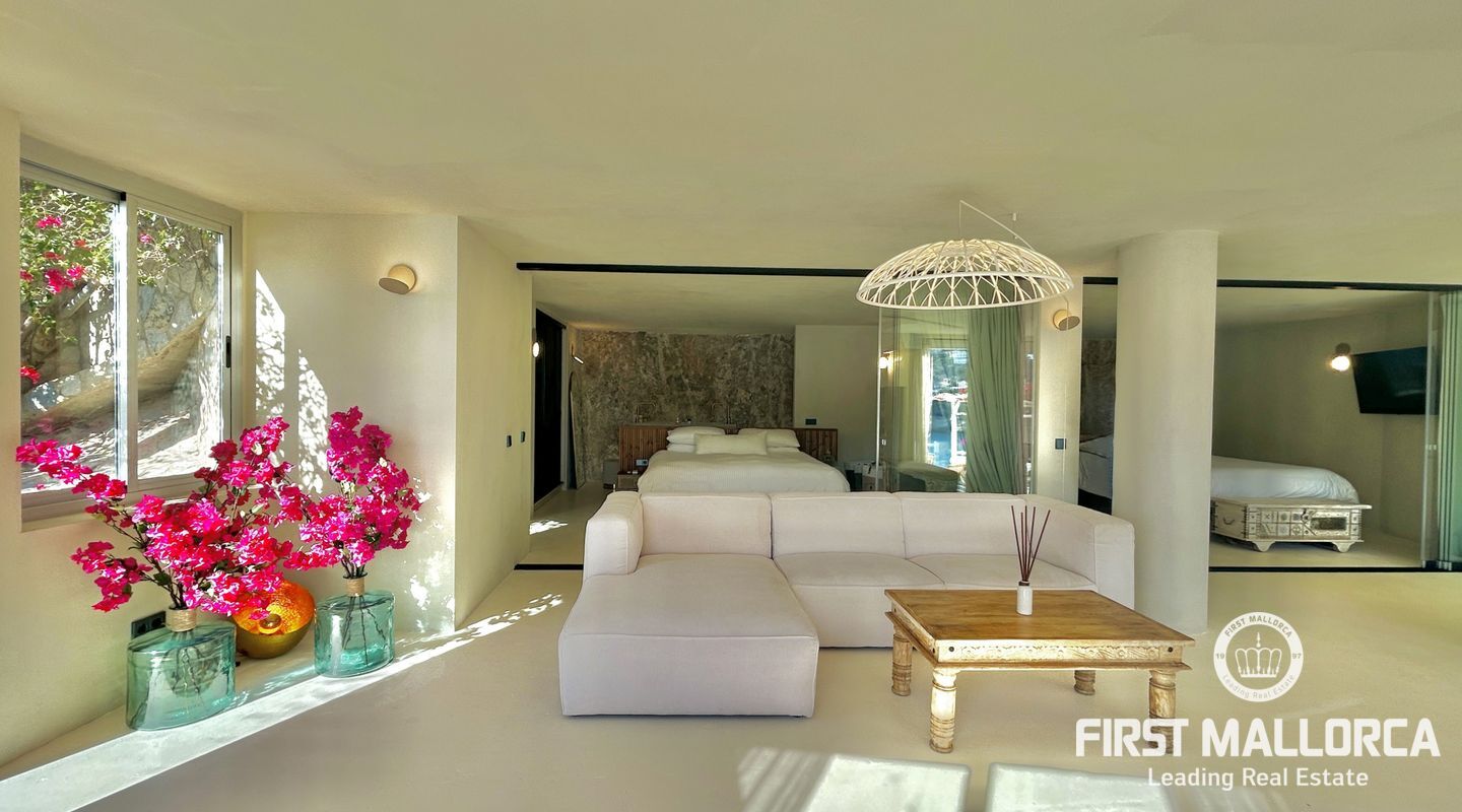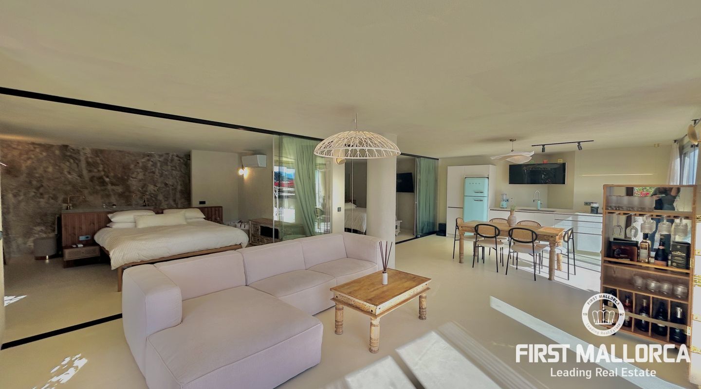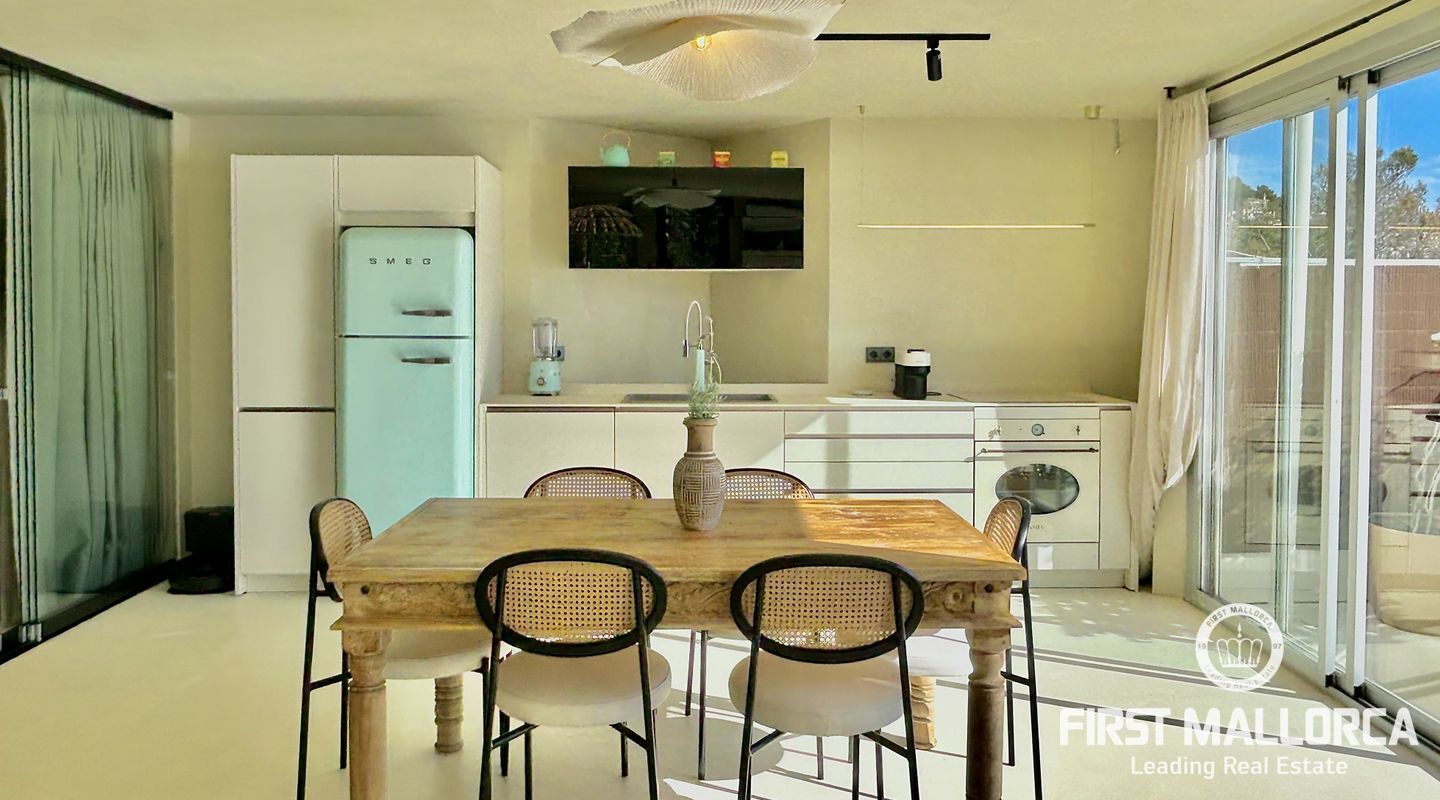 Este apartamento mediterráneo, completamente reformado con un encantador estilo boho/playa, es un refugio costero en la exclusiva zona de La Mola, en Puerto de Andratx. Listo para entrar a vivir, ofrece privacidad total, vistas al mar desde ambos dormitorios y acabados modernos y elegantes.