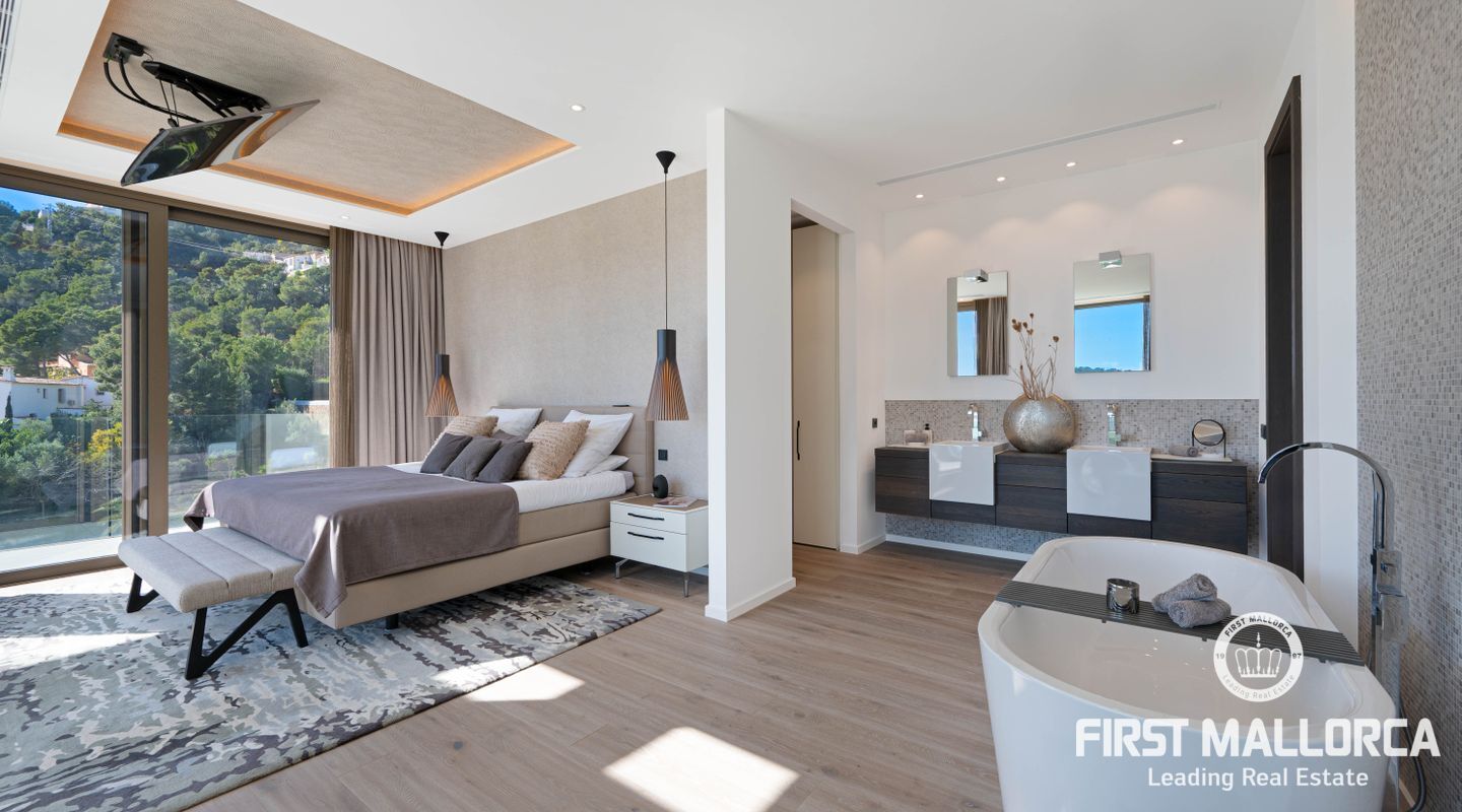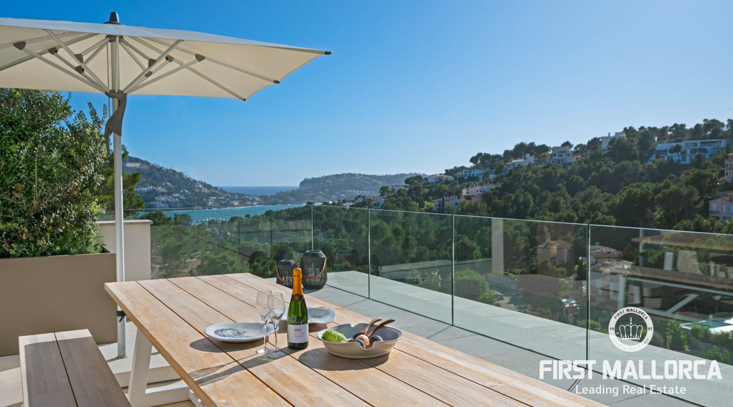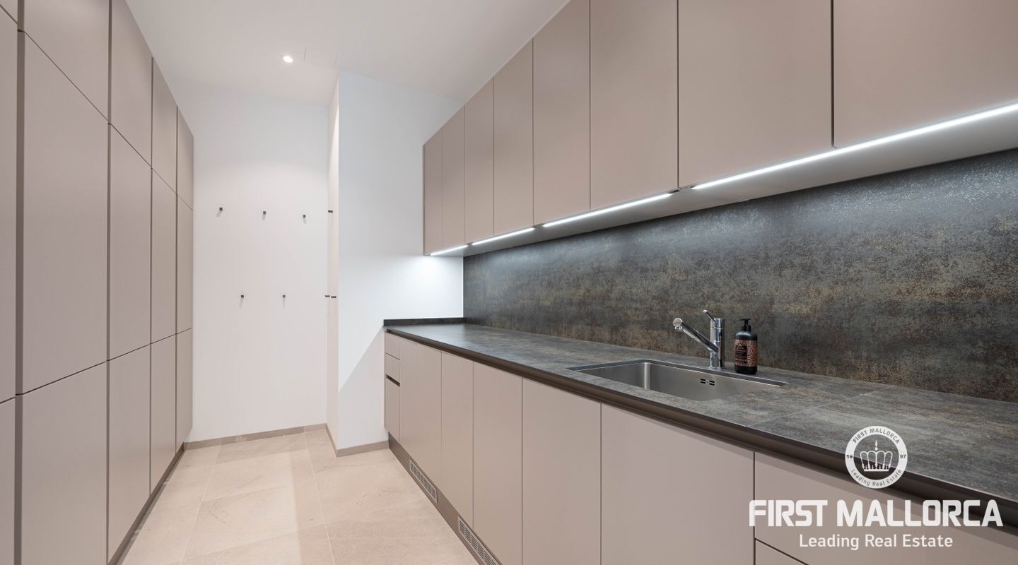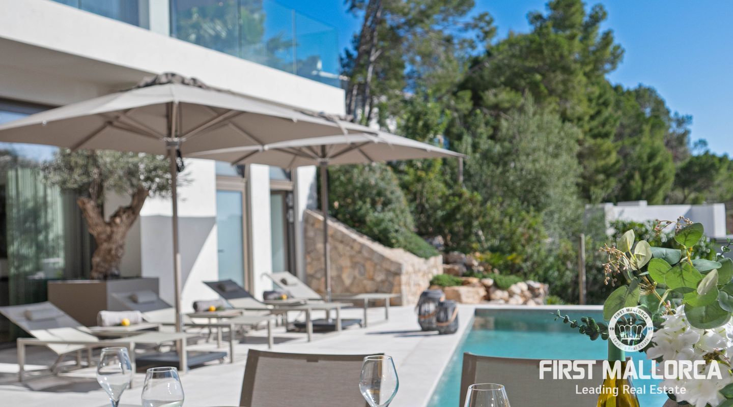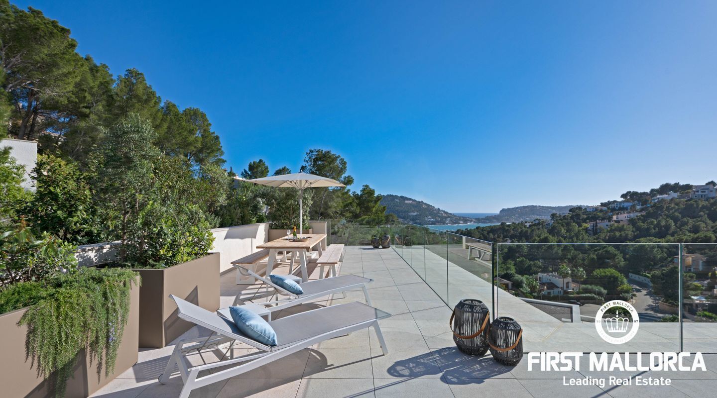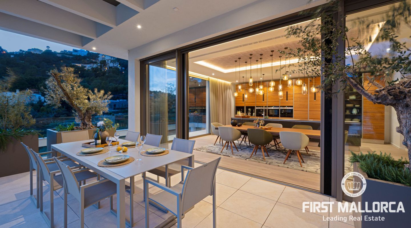 Esta extraordinaria villa en Andratx combina la más alta calidad de construcción, un diseño atemporal y equipamiento de última generación, y ofrece unas impresionantes vistas al mar y al puerto. La villa cuenta con un total de cinco dormitorios, todos con baño en suite y acceso directo a la terraza. Planos generosos, materiales de alta calidad y mobiliario de lujo de reconocidas marcas como Rolf Benz, Hülsta, Koinor y Cattelan Italia subrayan el carácter exclusivo de la propiedad. Un ascensor conecta todas las plantas, desde el garaje hasta la amplia azotea con vistas espectaculares. En la planta baja se encuentran la cocina principal, un aseo de invitados, un lavadero y el luminoso salón-comedor con acceso a la piscina infinita. Un baño completo independiente en la zona de la piscina complementa el concepto de distribución cuidadosamente diseñado. La planta superior alberga el área principal con vestidor, baño en suite y una gran terraza, así como dos dormitorios adicionales, también con baño propio. La zona de invitados independiente en la planta inferior incluye dos dormitorios con baño en suite, una cocina totalmente equipada, un salón-comedor, un gimnasio, así como salas técnicas y de servicio. Uno de los puntos más destacados es la espaciosa azotea con espectaculares vistas al mar y al puerto. Un concepto exclusivo de iluminación interior y exterior – con lámparas de diseño de Nemo y Secto – crea una atmósfera acogedora. El equipamiento técnico incluye un sistema domótico, bomba de calor, calefacción por suelo radiante, aire acondicionado y un completo sistema de seguridad. La propiedad es completamente accesible. La orientación sur y suroeste, así como un cuidado jardín mediterráneo, completan este exclusivo concepto de vivienda. (El mobiliario de alta gama está disponible opcionalmente con un coste adicional.)