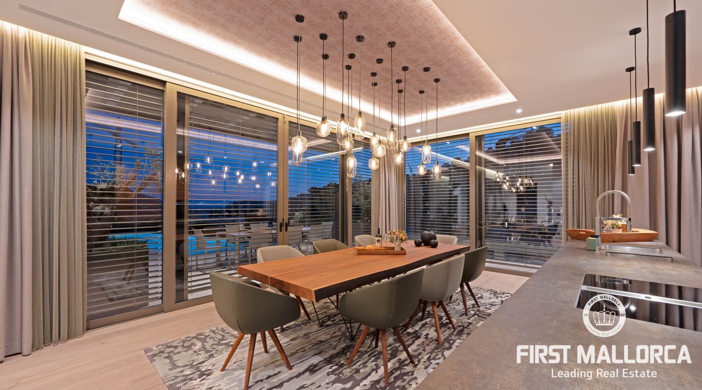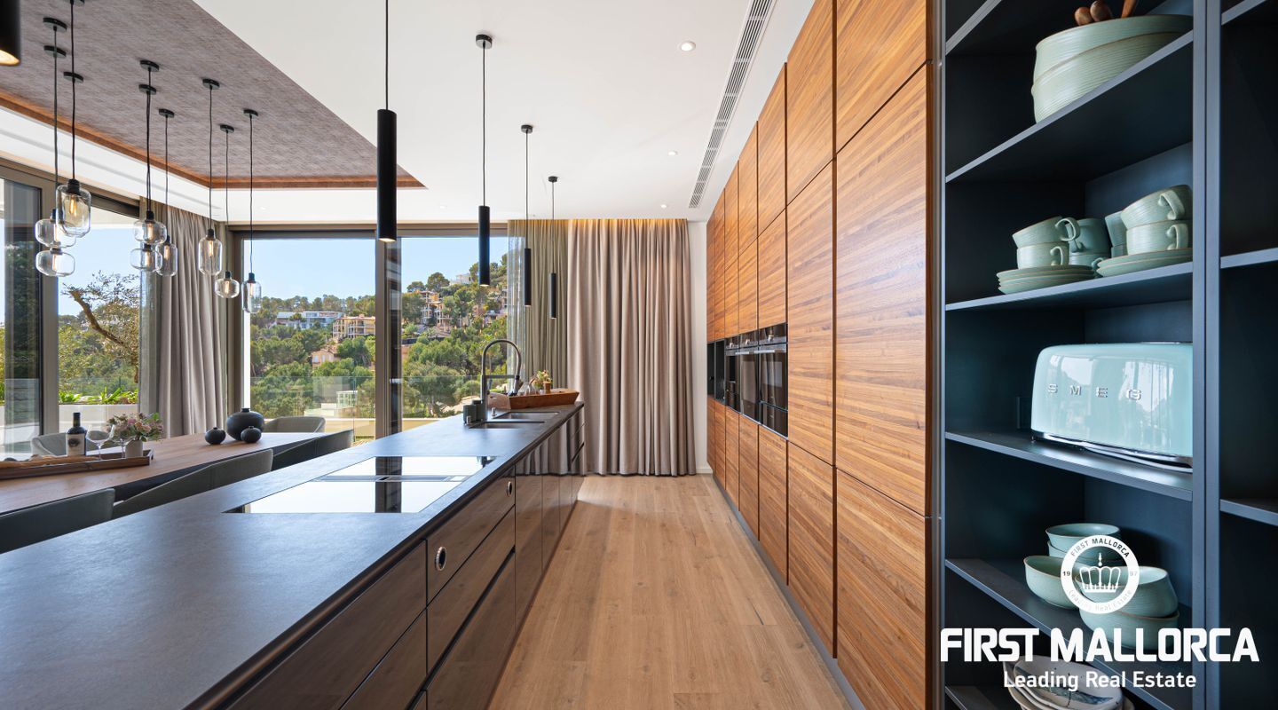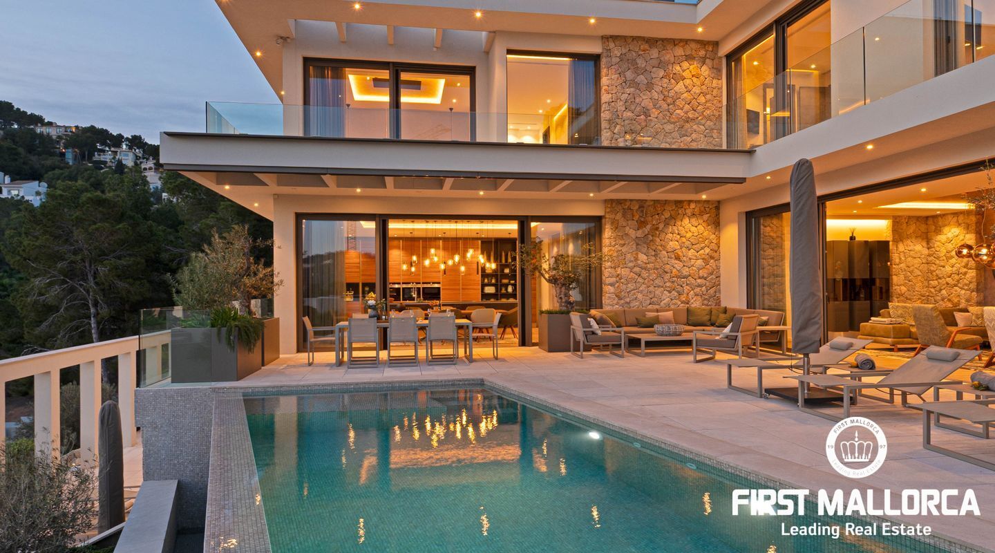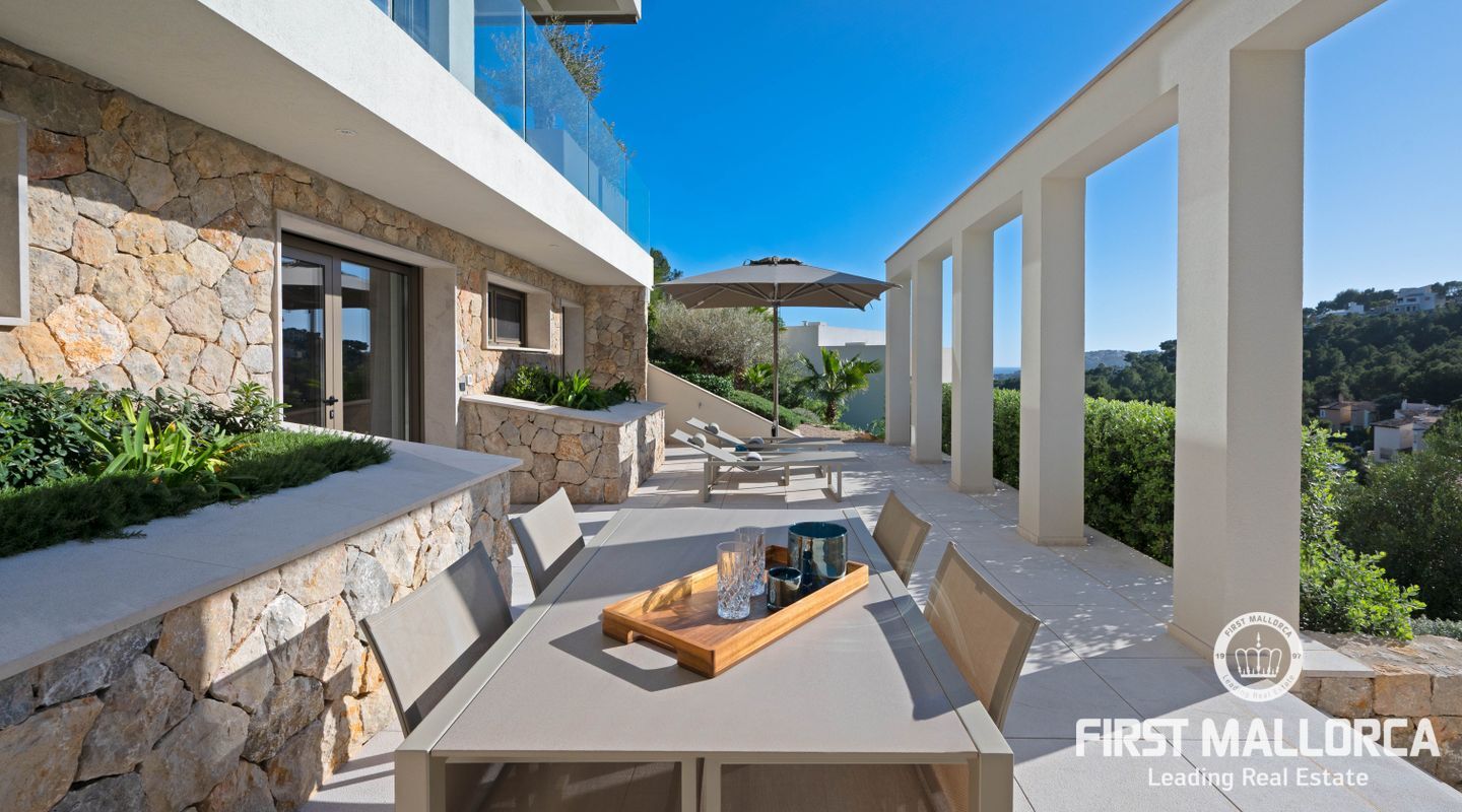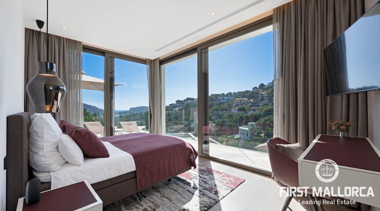 Esta extraordinaria villa en Andratx combina la más alta calidad de construcción, un diseño atemporal y equipamiento de última generación, y ofrece unas impresionantes vistas al mar y al puerto. La villa cuenta con un total de cinco dormitorios, todos con baño en suite y acceso directo a la terraza. Planos generosos, materiales de alta calidad y mobiliario de lujo de reconocidas marcas como Rolf Benz, Hülsta, Koinor y Cattelan Italia subrayan el carácter exclusivo de la propiedad. Un ascensor conecta todas las plantas, desde el garaje hasta la amplia azotea con vistas espectaculares. En la planta baja se encuentran la cocina principal, un aseo de invitados, un lavadero y el luminoso salón-comedor con acceso a la piscina infinita. Un baño completo independiente en la zona de la piscina complementa el concepto de distribución cuidadosamente diseñado. La planta superior alberga el área principal con vestidor, baño en suite y una gran terraza, así como dos dormitorios adicionales, también con baño propio. La zona de invitados independiente en la planta inferior incluye dos dormitorios con baño en suite, una cocina totalmente equipada, un salón-comedor, un gimnasio, así como salas técnicas y de servicio. Uno de los puntos más destacados es la espaciosa azotea con espectaculares vistas al mar y al puerto. Un concepto exclusivo de iluminación interior y exterior – con lámparas de diseño de Nemo y Secto – crea una atmósfera acogedora. El equipamiento técnico incluye un sistema domótico, bomba de calor, calefacción por suelo radiante, aire acondicionado y un completo sistema de seguridad. La propiedad es completamente accesible. La orientación sur y suroeste, así como un cuidado jardín mediterráneo, completan este exclusivo concepto de vivienda. (El mobiliario de alta gama está disponible opcionalmente con un coste adicional.)