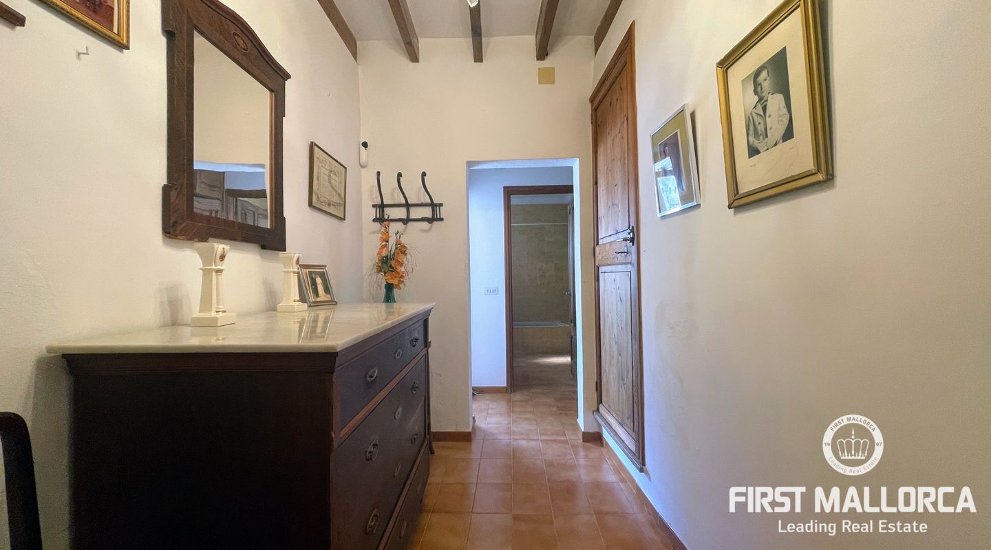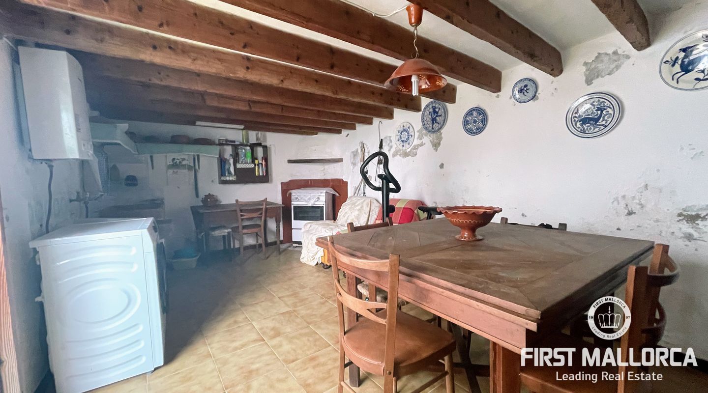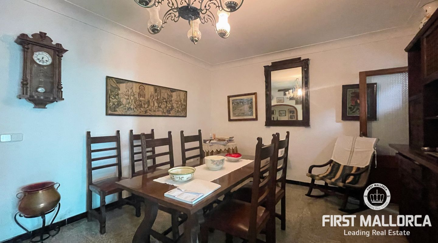 Planta Baja: Dispone de una amplia entrada con acceso directo a un garaje, un generoso salón-comedor propicio para la convivencia familiar, una cocina independiente, una habitación adicional y un baño completo. Un patio interior con cisterna añade un toque tradicional mallorquín. Destaca una espaciosa coladuría con significativas posibilidades de transformación, sobre la cual se encuentran dos salas adicionales actualmente utilizadas como trastero, con potencial para convertirse en zonas de estar o dormitorios según las necesidades del comprador. Primera Planta: Alberga tres luminosas habitaciones y un baño completo. Un hall proporciona acceso a una soleada terraza, ideal para el descanso al aire libre y para disfrutar de vistas despejadas del entorno.