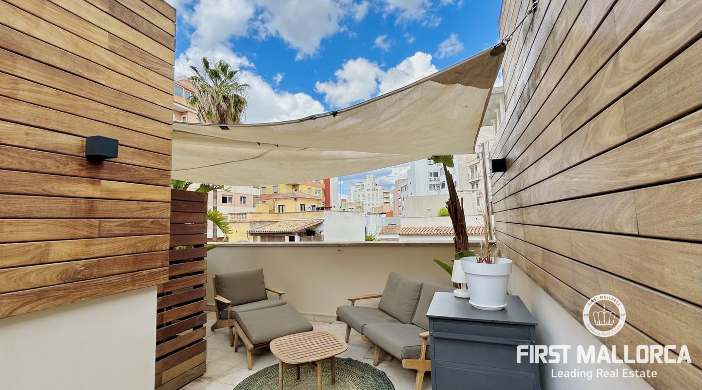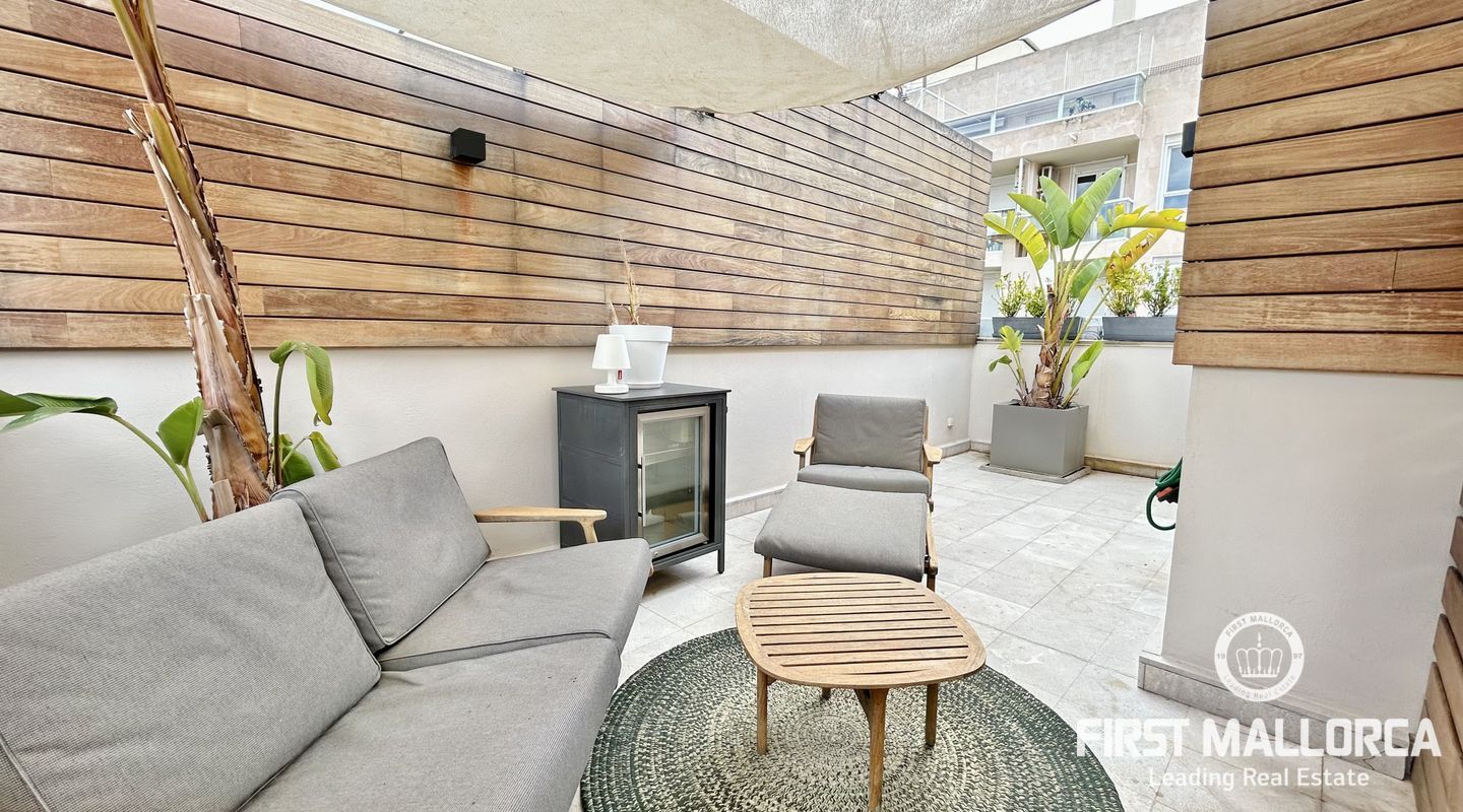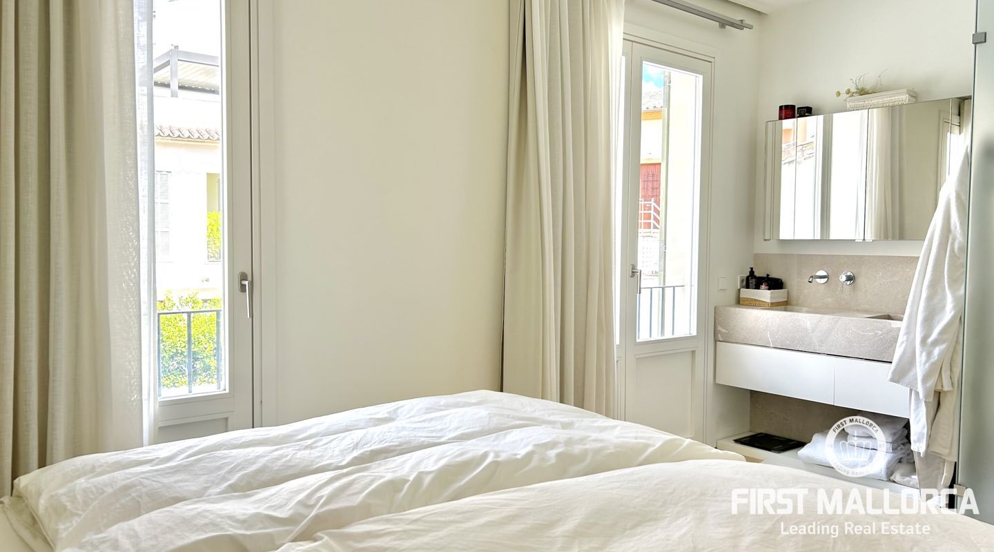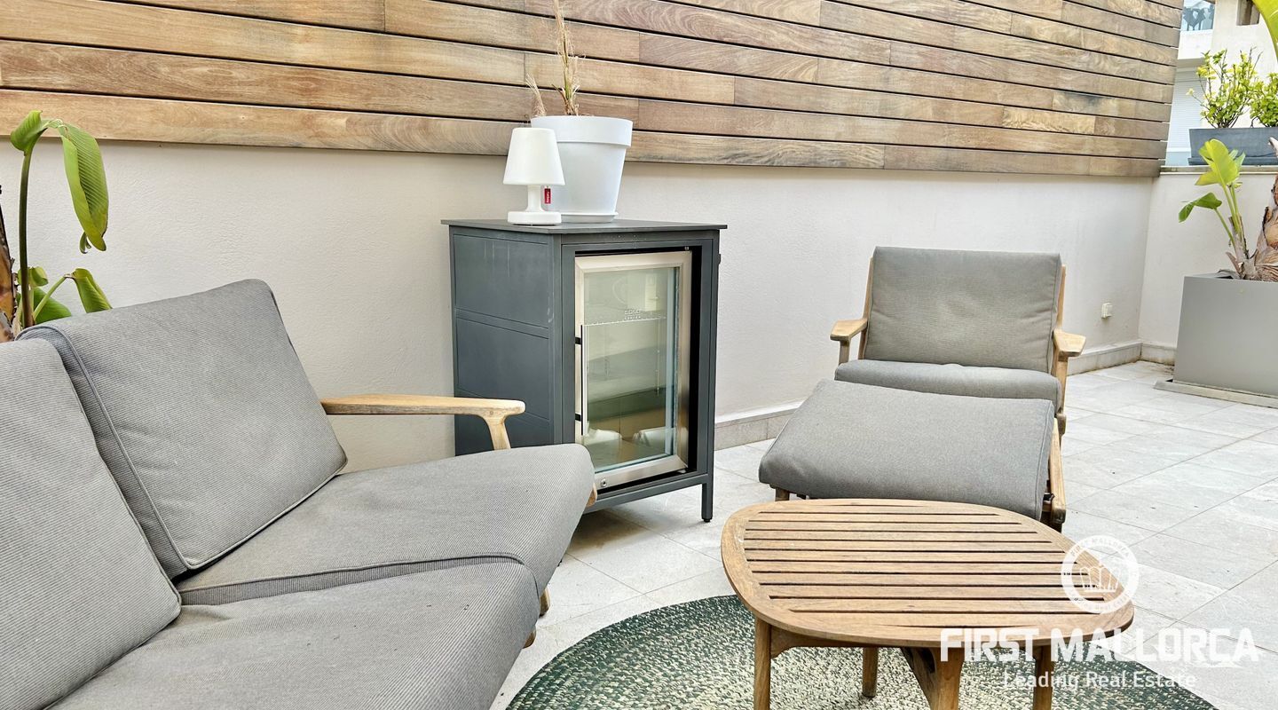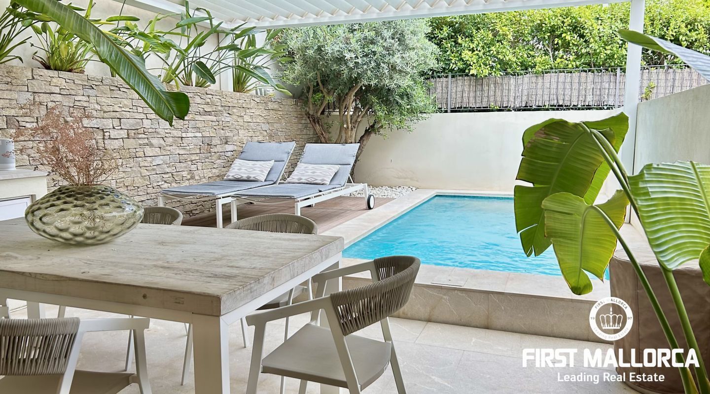 Distribuida en dos plantas, cuenta con dos amplios dormitorios, ambos con baño en suite, una luminosa zona de estar con acceso directo al exterior, y una cocina integrada totalmente equipada. El espacio exterior es ideal para disfrutar de los días soleados, con una piscina privada que invita al relax en los largos veranos de Palma.