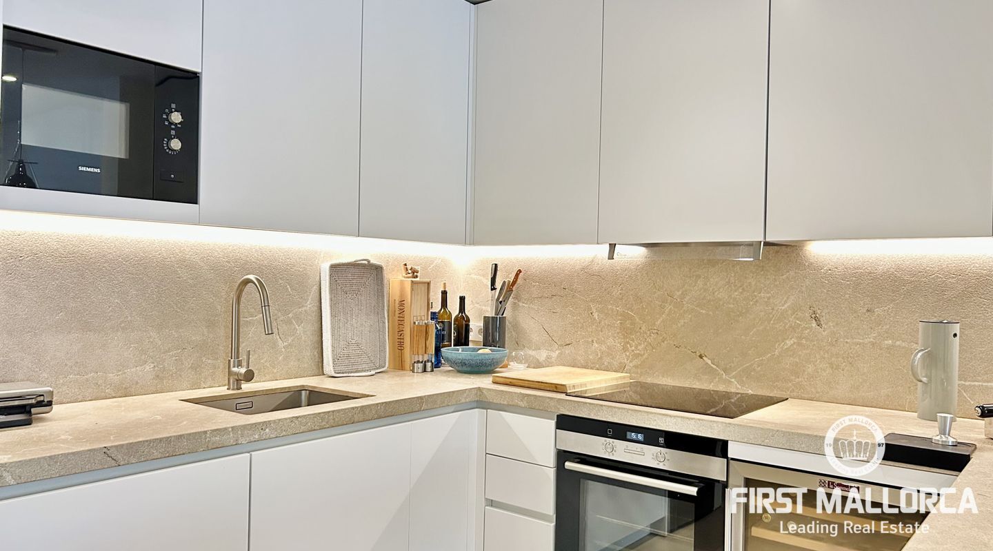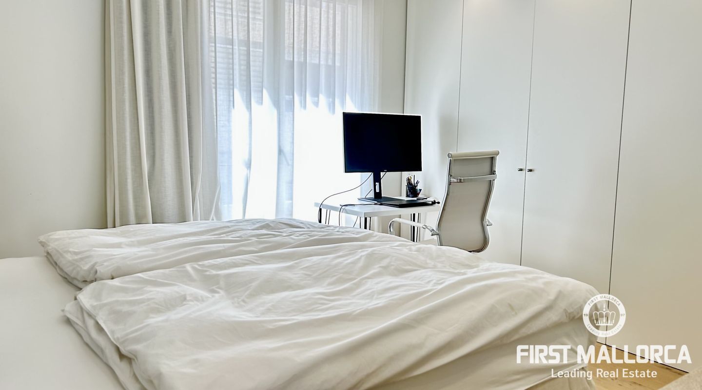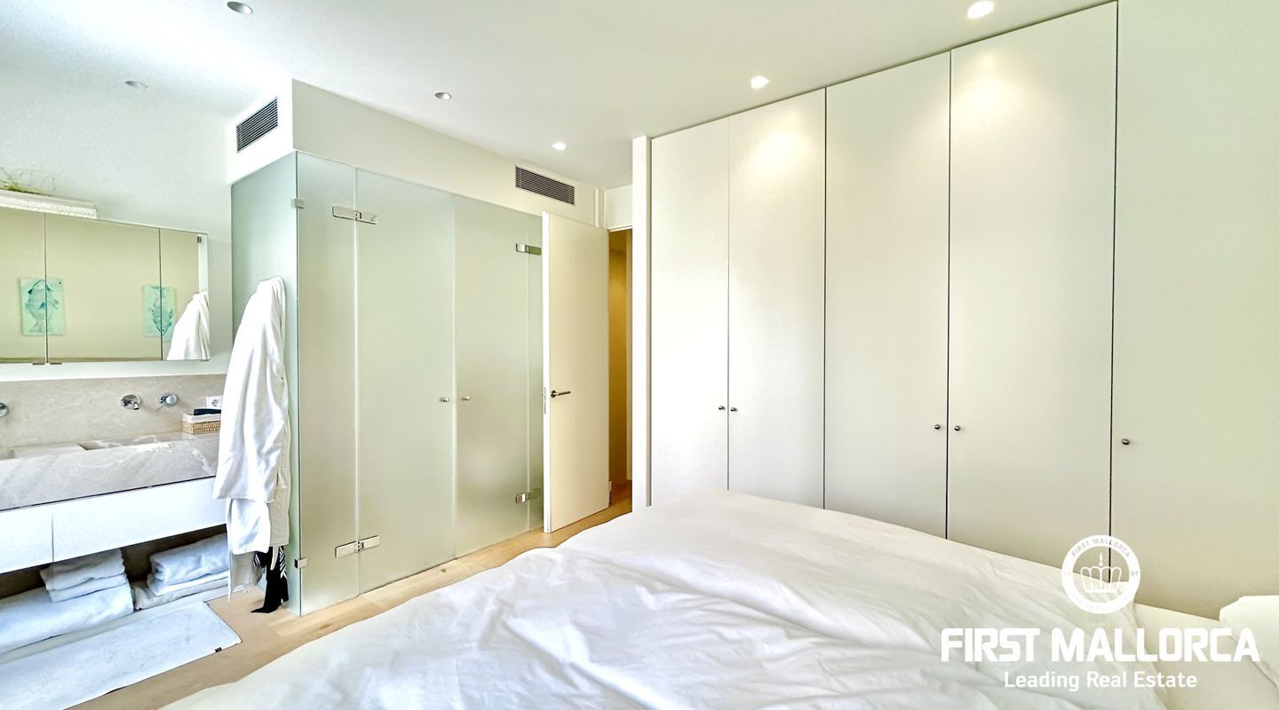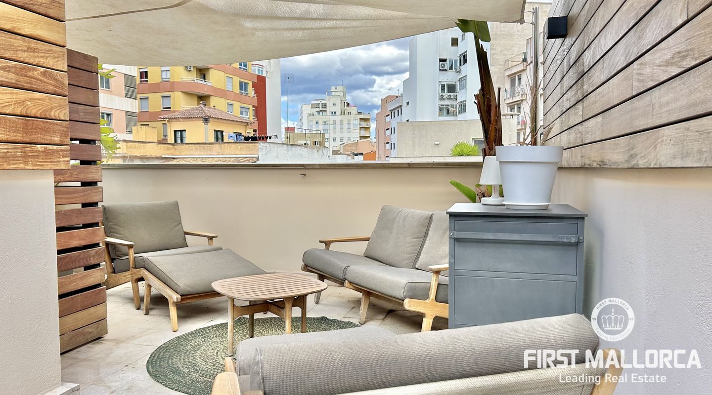 Distribuida en dos plantas, cuenta con dos amplios dormitorios, ambos con baño en suite, una luminosa zona de estar con acceso directo al exterior, y una cocina integrada totalmente equipada. El espacio exterior es ideal para disfrutar de los días soleados, con una piscina privada que invita al relax en los largos veranos de Palma.