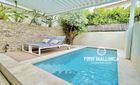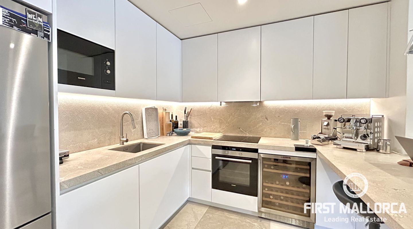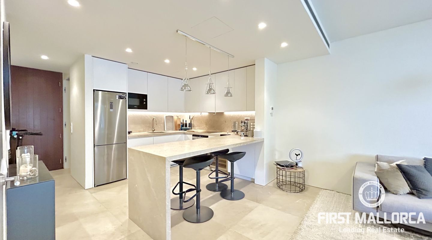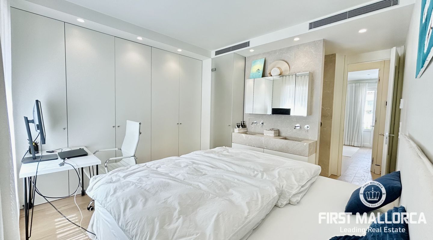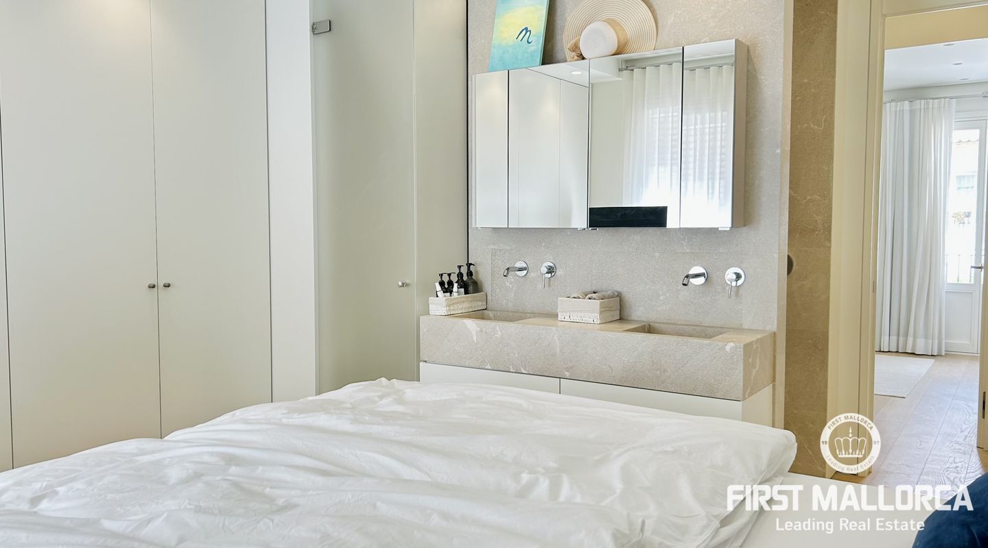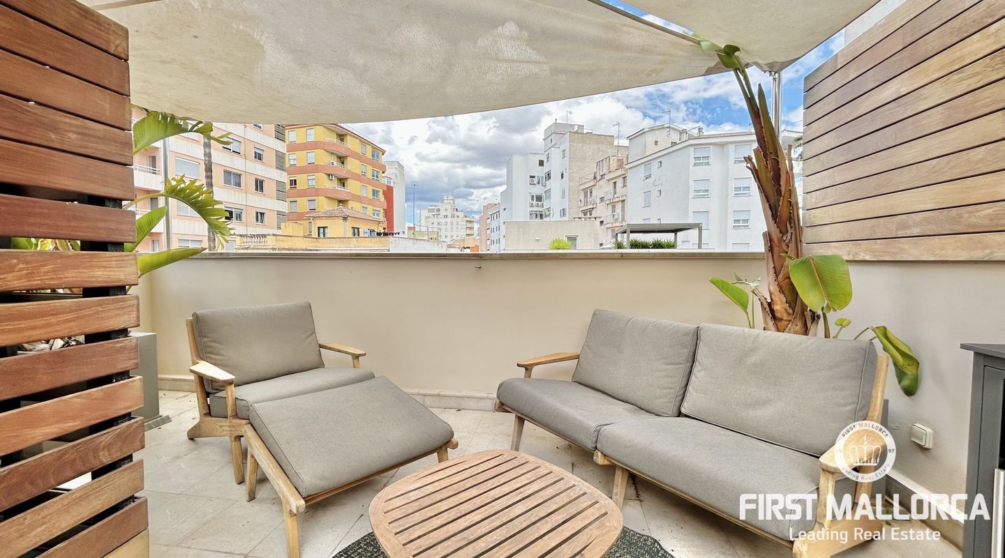 Distribuida en dos plantas, cuenta con dos amplios dormitorios, ambos con baño en suite, una luminosa zona de estar con acceso directo al exterior, y una cocina integrada totalmente equipada. El espacio exterior es ideal para disfrutar de los días soleados, con una piscina privada que invita al relax en los largos veranos de Palma.