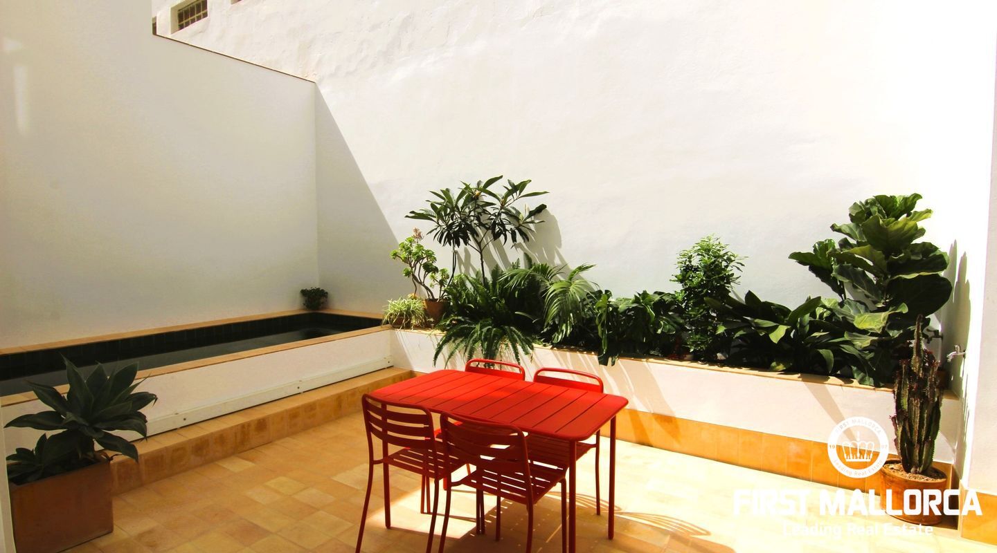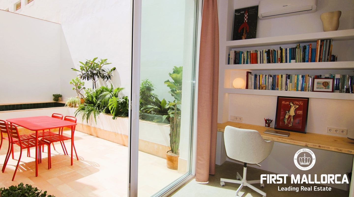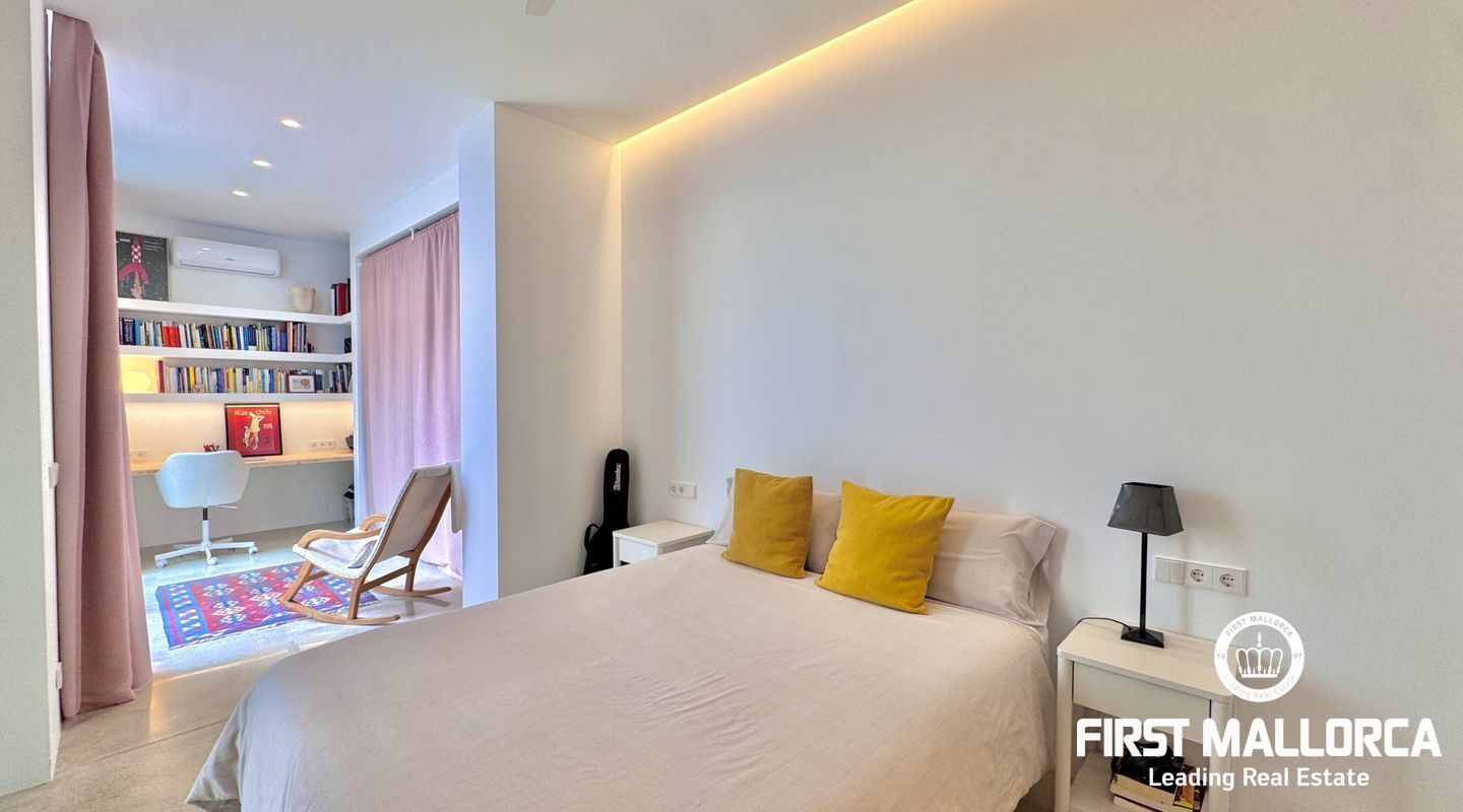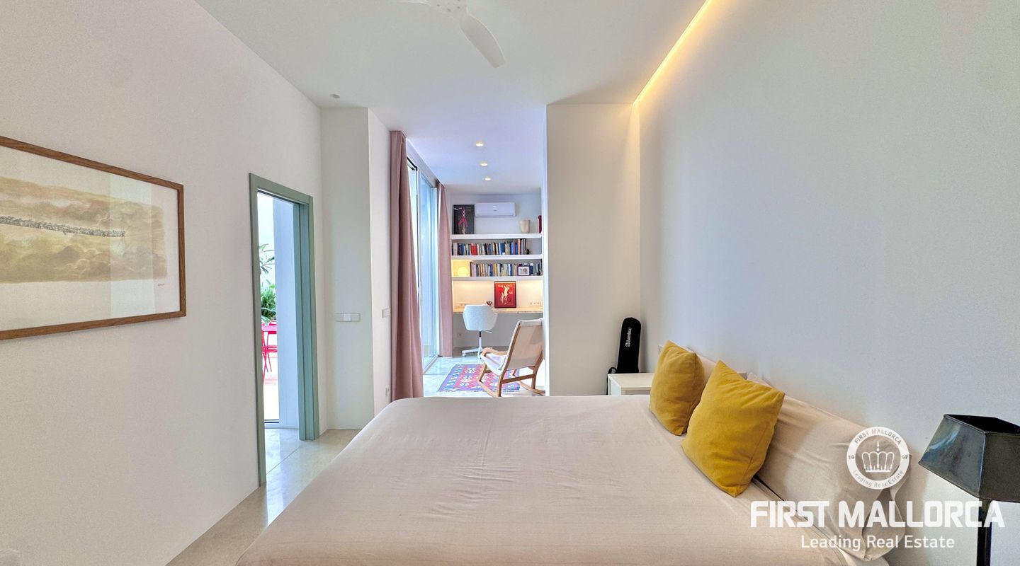 La propiedad cuenta con dos dormitorios y dos baños, así como un amplio y luminoso salón-comedor con cocina abierta moderna y una barra larga, además de acceso directo a un patio elegantemente diseñado. Este espacio exterior incluye una refrescante piscina tipo plunge, jardineras integradas y una atmósfera serena, casi meditativa.