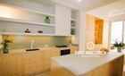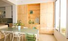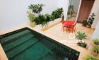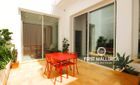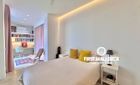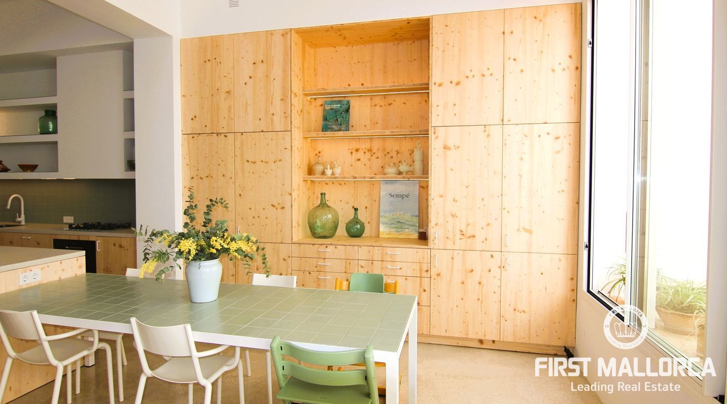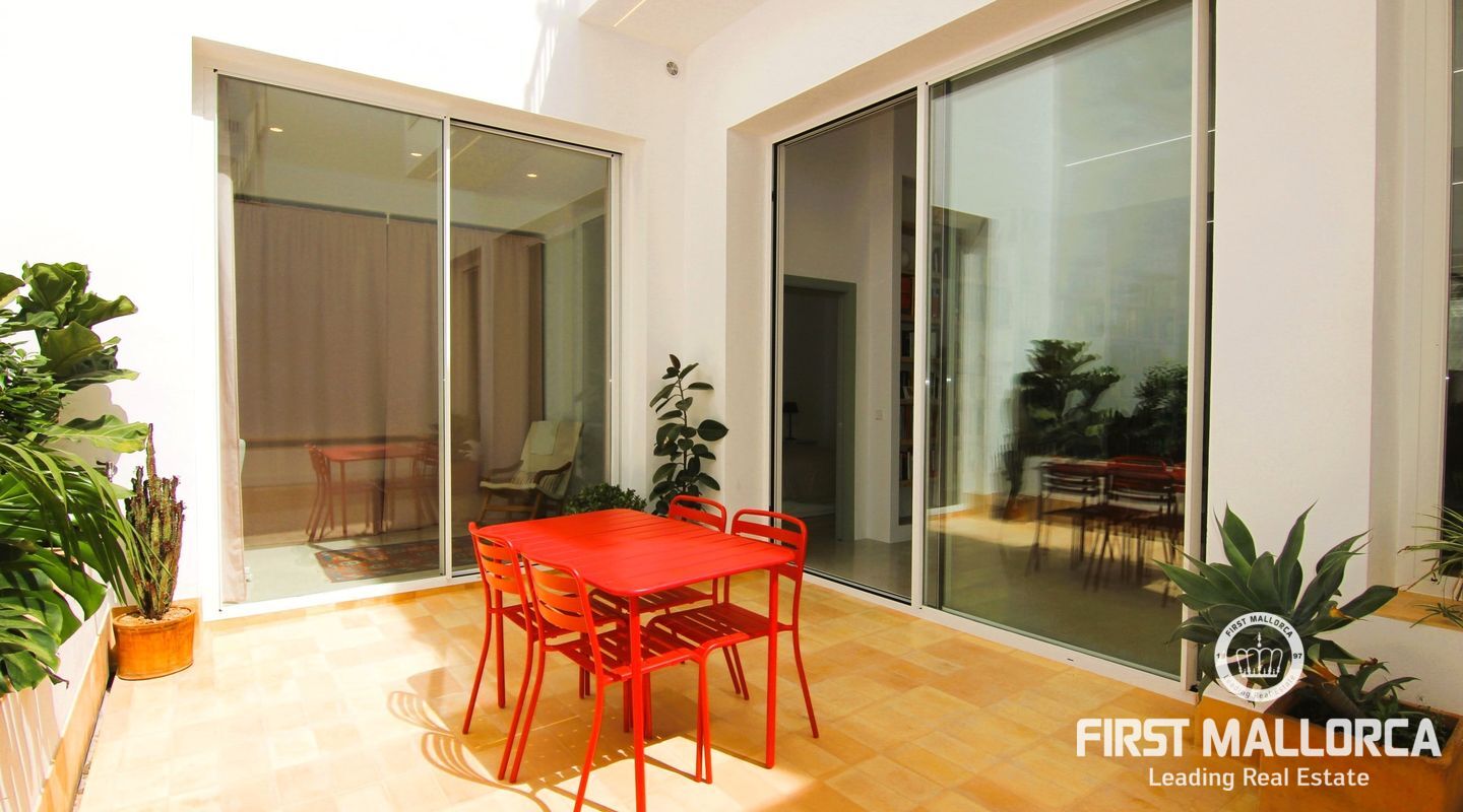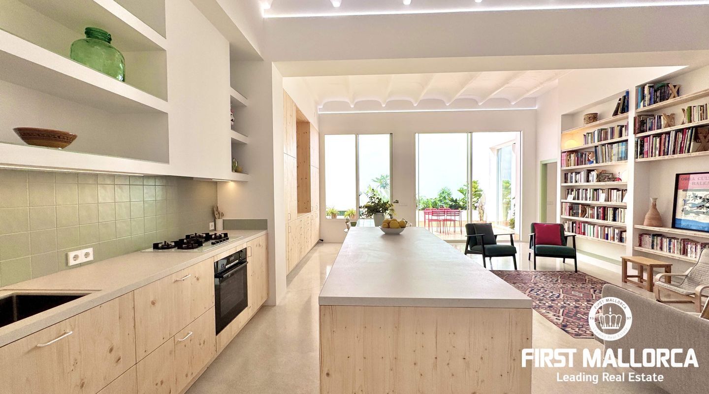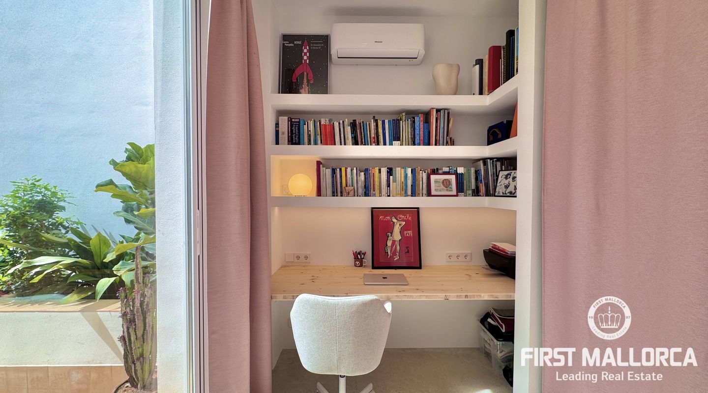 La propiedad cuenta con dos dormitorios y dos baños, así como un amplio y luminoso salón-comedor con cocina abierta moderna y una barra larga, además de acceso directo a un patio elegantemente diseñado. Este espacio exterior incluye una refrescante piscina tipo plunge, jardineras integradas y una atmósfera serena, casi meditativa.