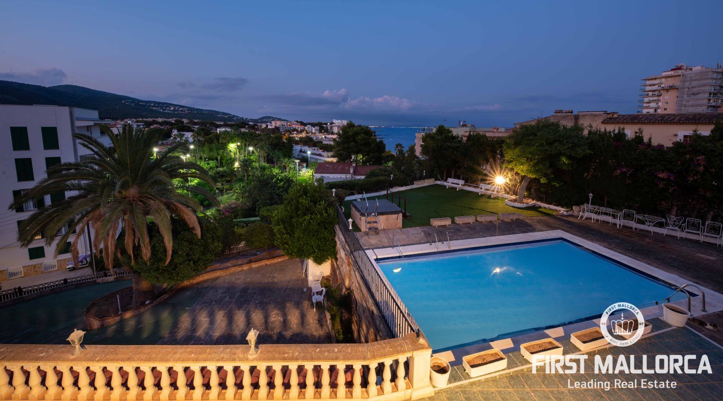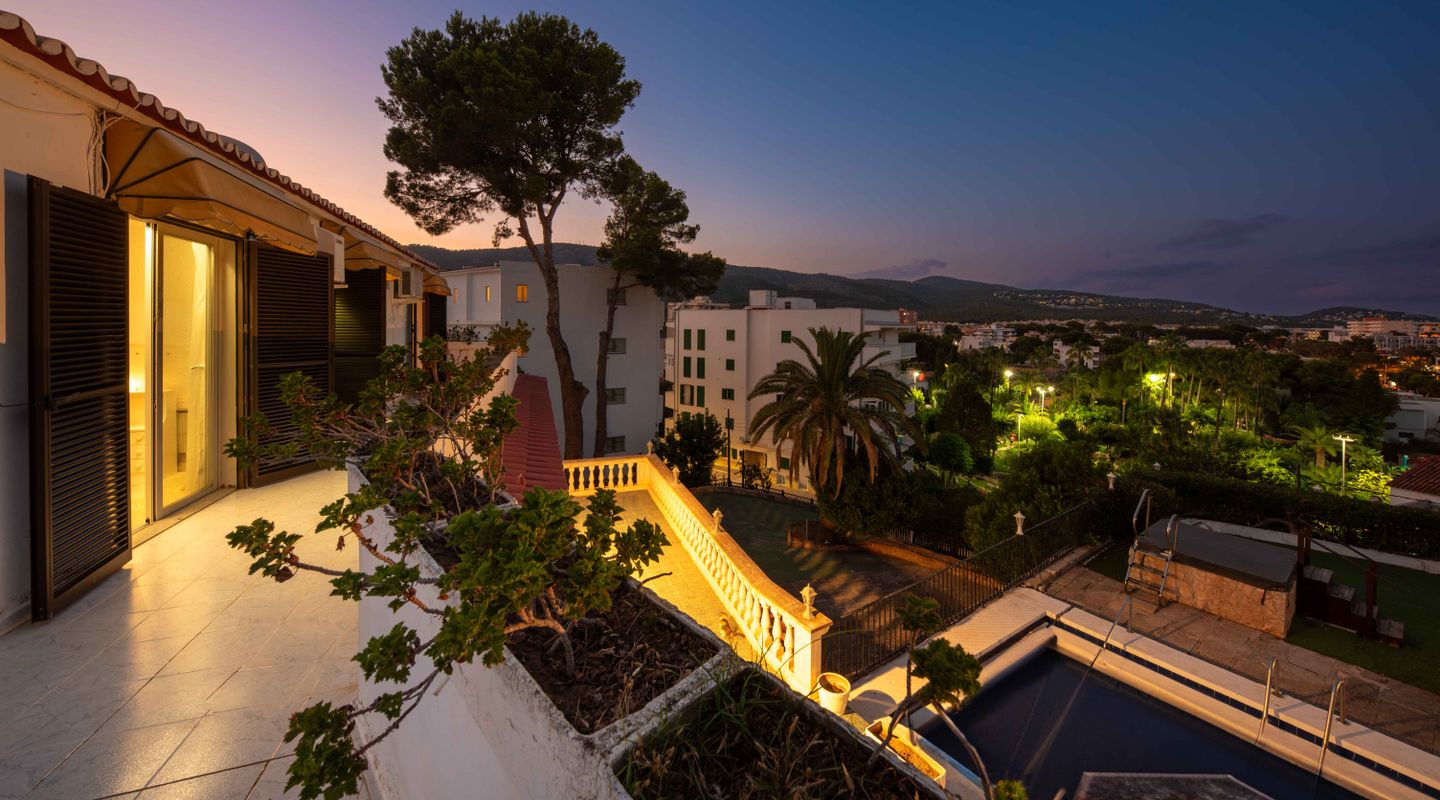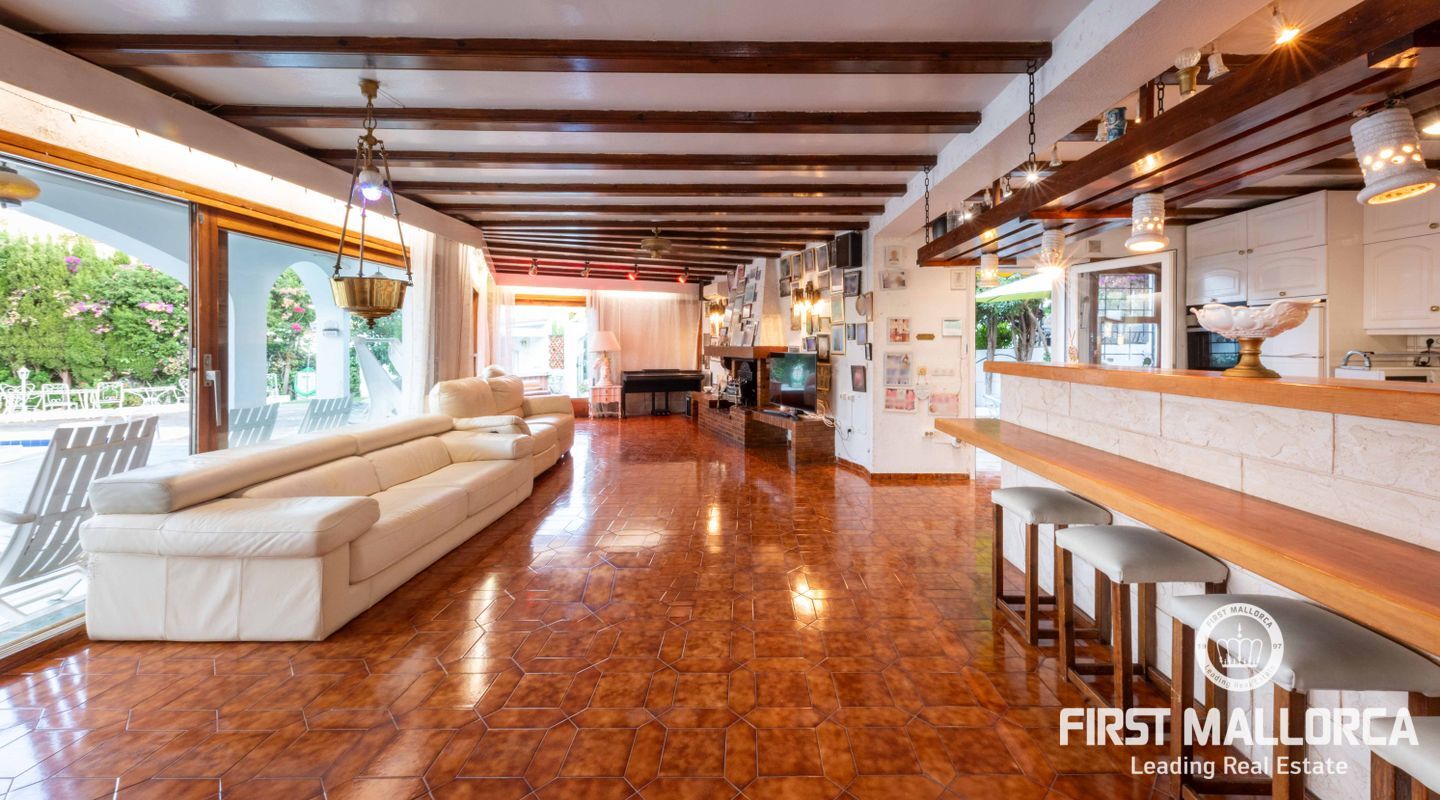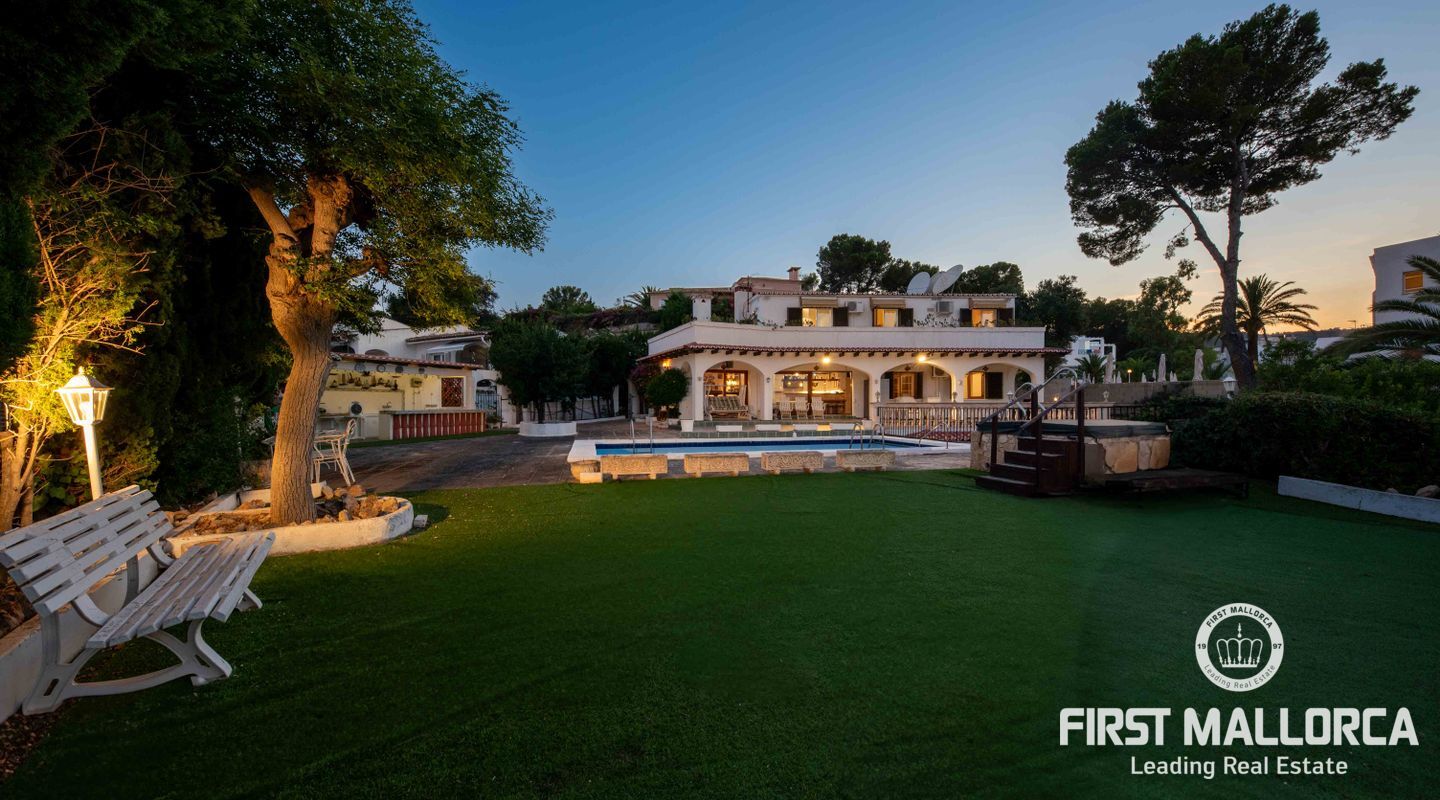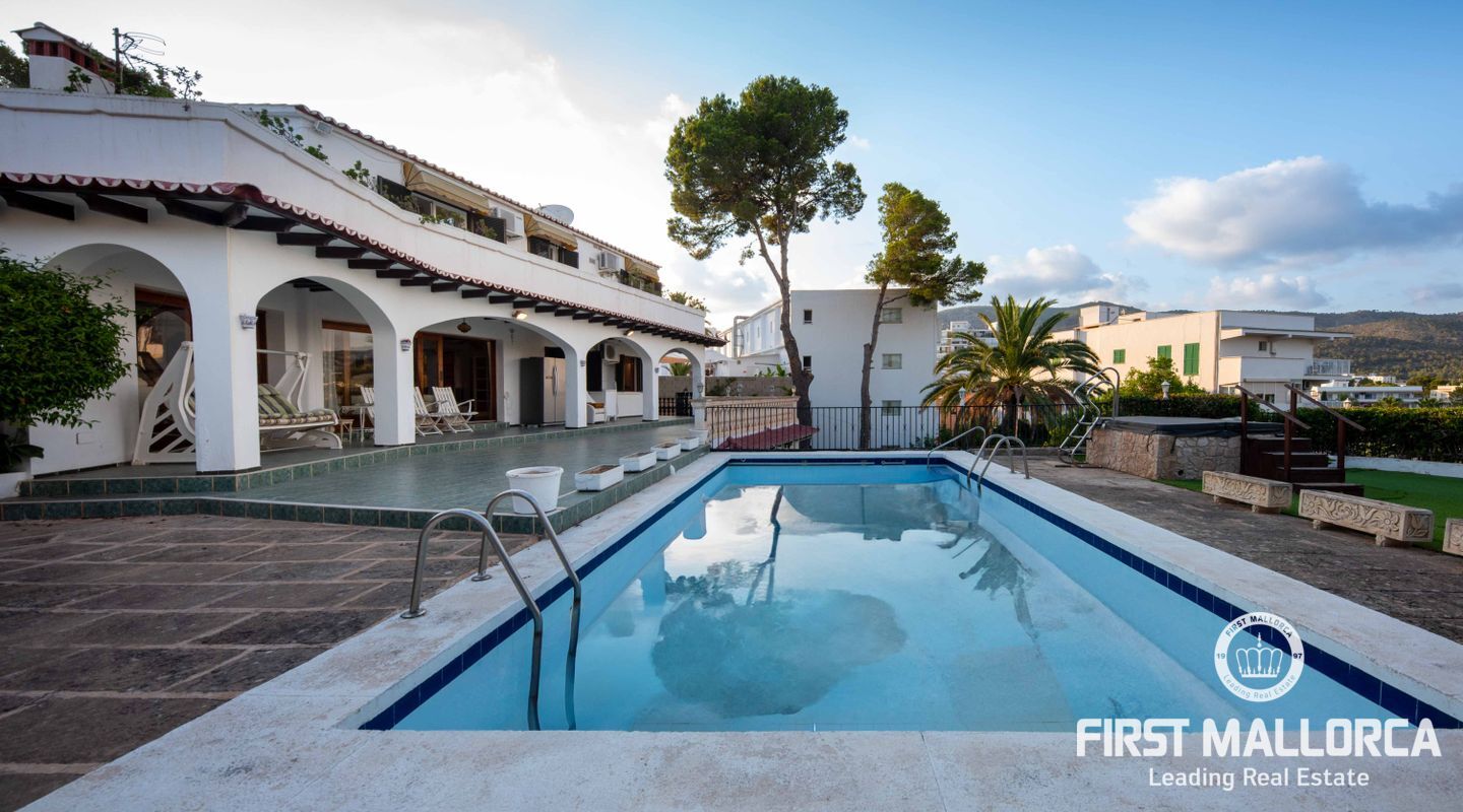 Una auténtica joya en Palmanova: esta excepcional villa orientada al sur se encuentra en una de las parcelas más codiciadas en lo alto de la colina, ofreciendo impresionantes vistas al mar y una ubicación inmejorable en el centro. A solo unos pasos de las playas de arena, tiendas y restaurantes, esta propiedad combina tranquilidad, comodidad y prestigio.