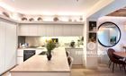 Consta de dos dormitorios y dos baños, fusionando elementos históricos con toques modernos. La cocina abierta, equipada con electrodomésticos de última generación, se complementa con una impresionante iluminación indirecta en varias zonas, piedra natural en baños, suelos de roble, calefacción por suelo radiante y aire acondicionado calor y frio por conductos , que realzan el diseño exclusivo del apartamento.