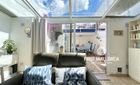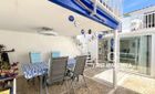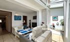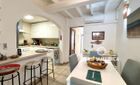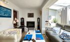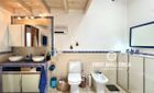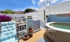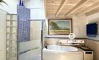Una terraza cubierta con otra chimenea y zona de estar ofrece confort durante todo el año, y puede utilizarse como oficina o espacio de relax. El patio, decorado con un mosaico de piedra tradicional y plantas, ofrece una amplia zona de comedor exterior. Una escalera de caracol conduce al nivel superior, donde se encuentra una terraza con solárium y acceso a otra terraza con jacuzzi, que conecta directamente con el dormitorio principal.