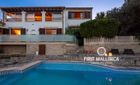 Ubicada en la parte alta de la exclusiva zona residencial de "El Vila" en Puerto Pollensa, esta villa presume de unas vistas espectaculares tanto del entorno rural como de la impresionante bahía de Pollensa, con el mar como telón de fondo. Al entrar, le recibirán espacios amplios y llenos de luz natural. Esta extraordinaria propiedad destaca por sus techos con vigas de madera, elegantes arcos de marés y una cuidada artesanía en cada detalle.