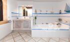 La cocina, completamente equipada y con zona de comedor integrada, se abre a una terraza desde la cual se disfrutan magníficas vistas al mar, el lugar ideal para comenzar el día con el amanecer sobre la bahía. El espacioso salón principal da acceso a una gran terraza cubierta, perfecta para disfrutar de cenas al aire libre durante las suaves noches mediterráneas.