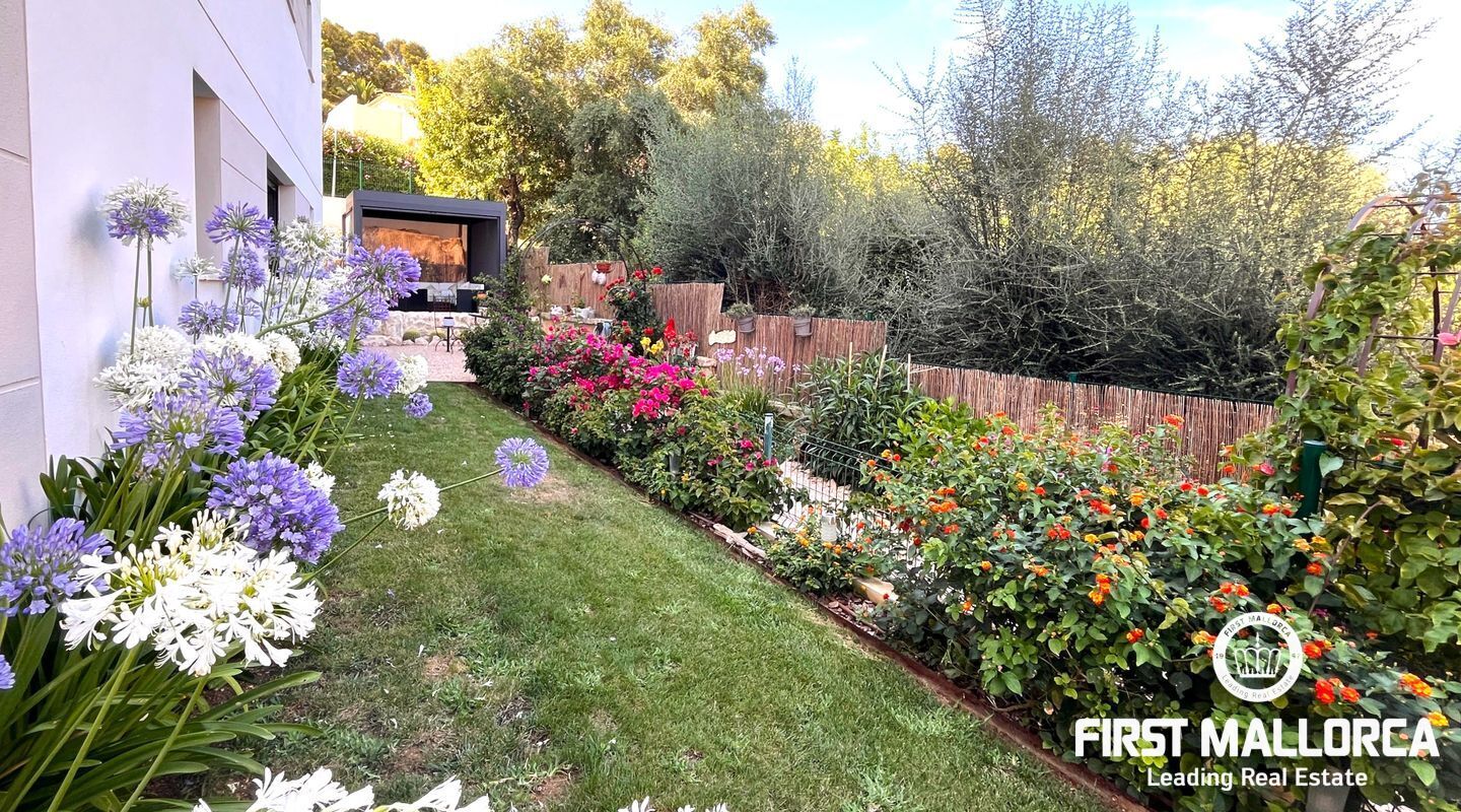 Este moderno y luminoso apartamento de blanta baja con orientacion al sur, ofrece tres dormitorios y dos baños, uno de ellos en suite. Ambos baños cuentan con luz natural. La zona abierta de salón, comedor y cocina crea un ambiente luminoso y acogedor, mientras que los grandes ventanales y la terraza privada ofrecen impresionantes vistas a zona verde. La vivienda dispone de persianas eléctricas, así como de aire acondicionado y calefacción por bomba de calor. Este apartamento dispone de un jardin privado con muchas flores y cuidado con mucho cariño que ofrece un ambiente muy acogedor en el exterior.
