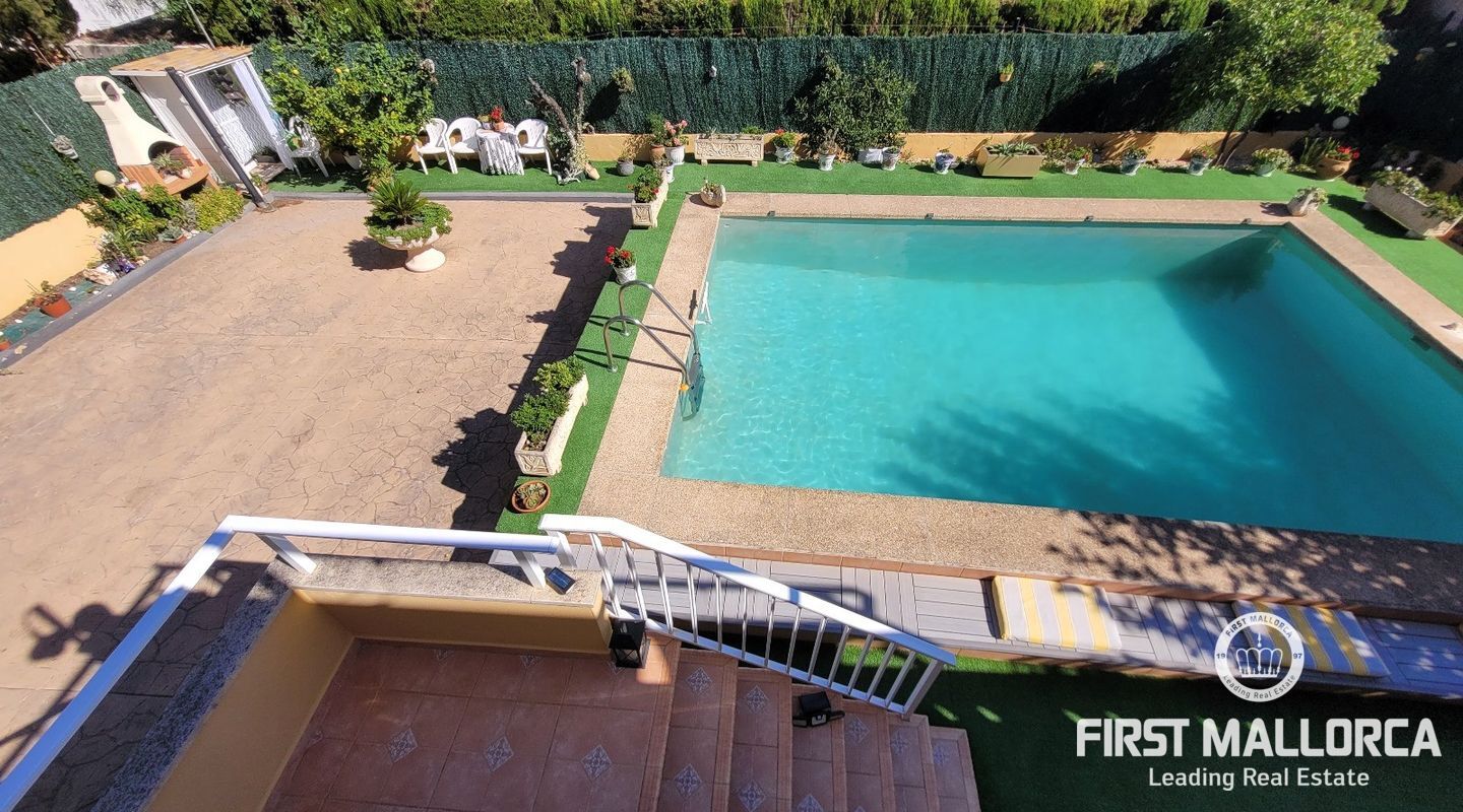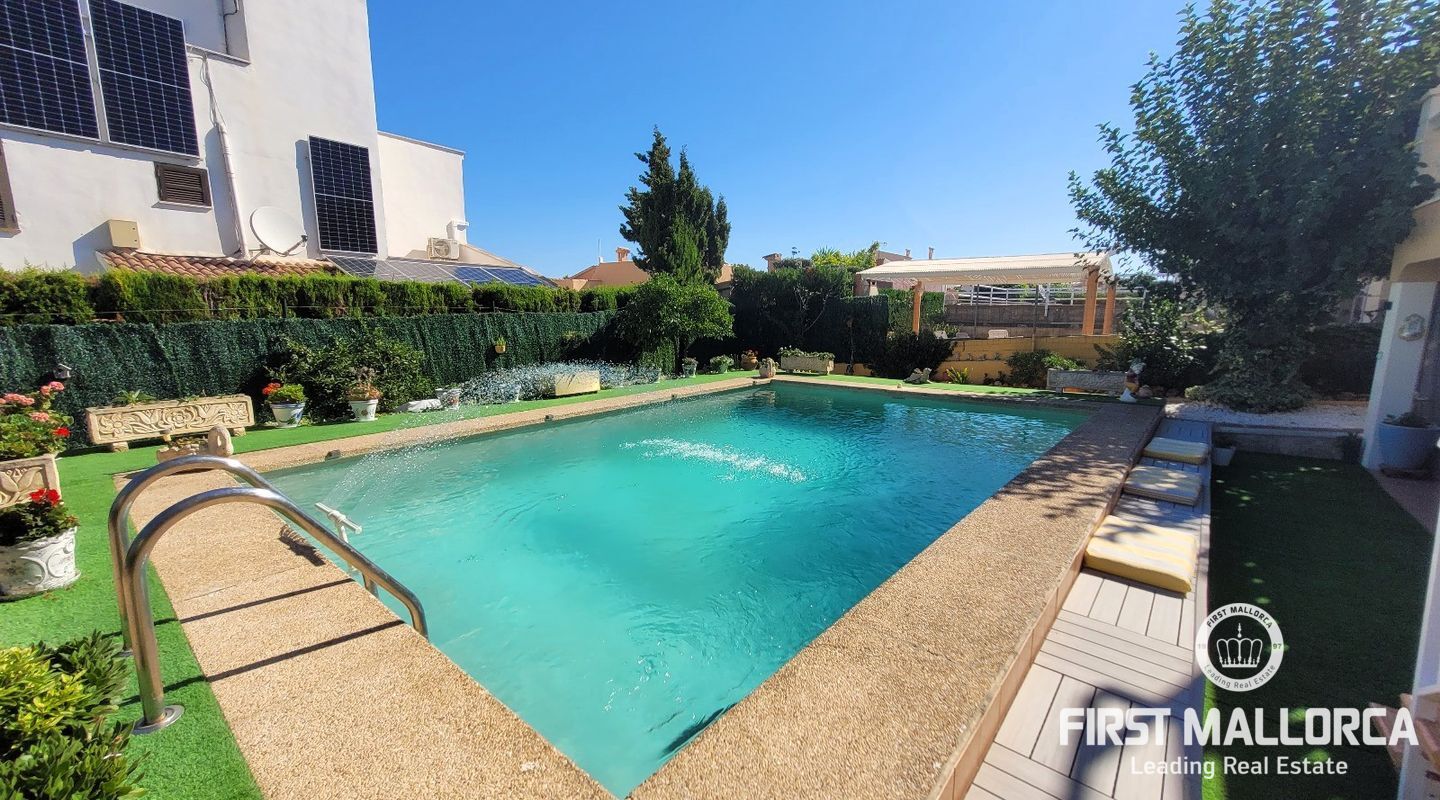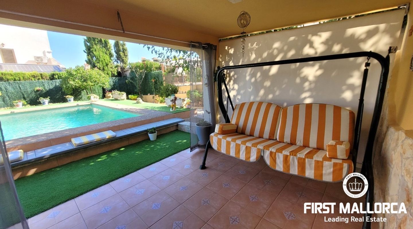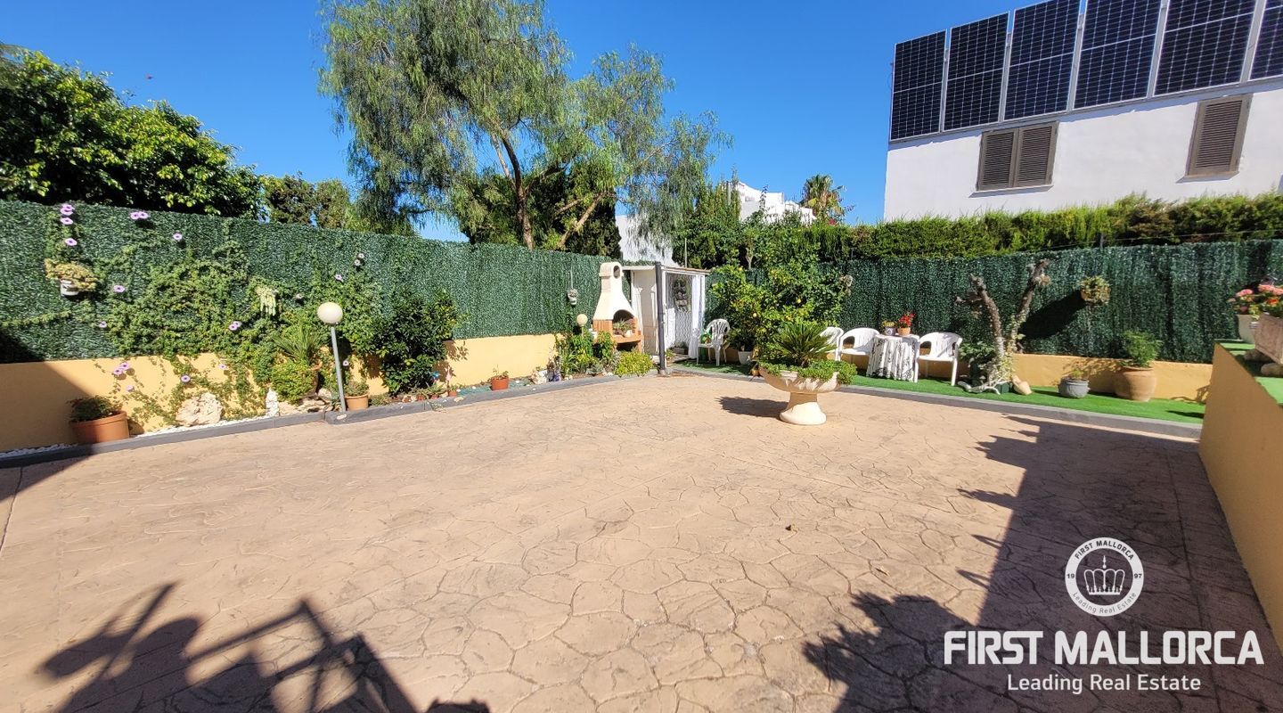 Todas las habitaciones cuentan con aire acondicionado, incluyendo el dormitorio principal, que además dispone de baño en suite. En el exterior, la propiedad ofrece un cuidado jardín con zona de barbacoa, piscina privada y un acogedor salón de verano, ideal para disfrutar del clima mediterráneo. Completa la propiedad un garaje privado.