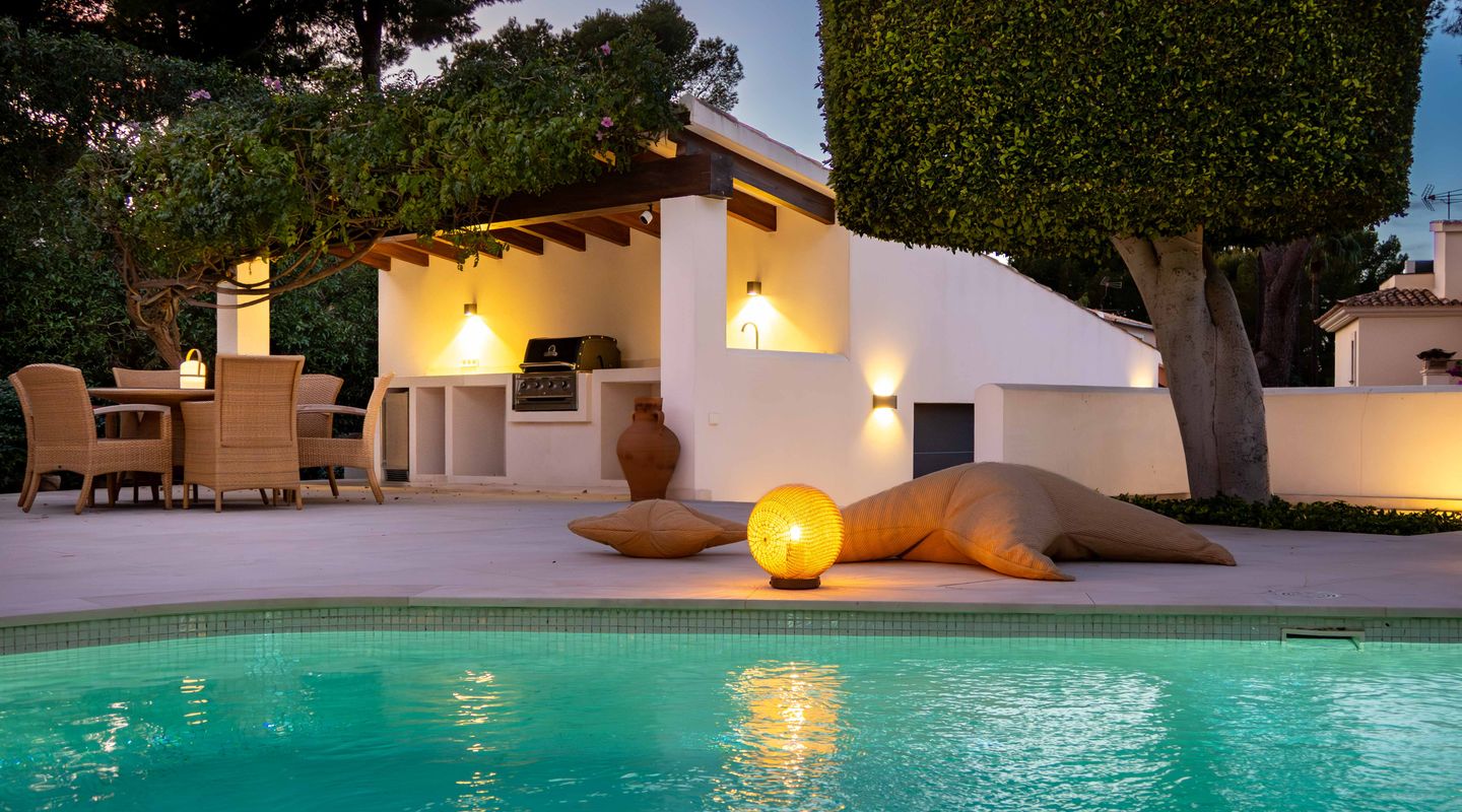 Esta exclusiva villa cuenta con 4 dormitorios, cada uno con su propio cuarto de baño, un amplio y elegante salón-comedor y una cocina Miele de alta calidad. Las grandes ventanas proporcionan mucha luz natural y un interior luminoso. Las fantásticas zonas exteriores, como la maravillosa piscina y la amplia azotea con cocina, barbacoa y zona de estar, ofrecen mucho espacio para toda la familia.