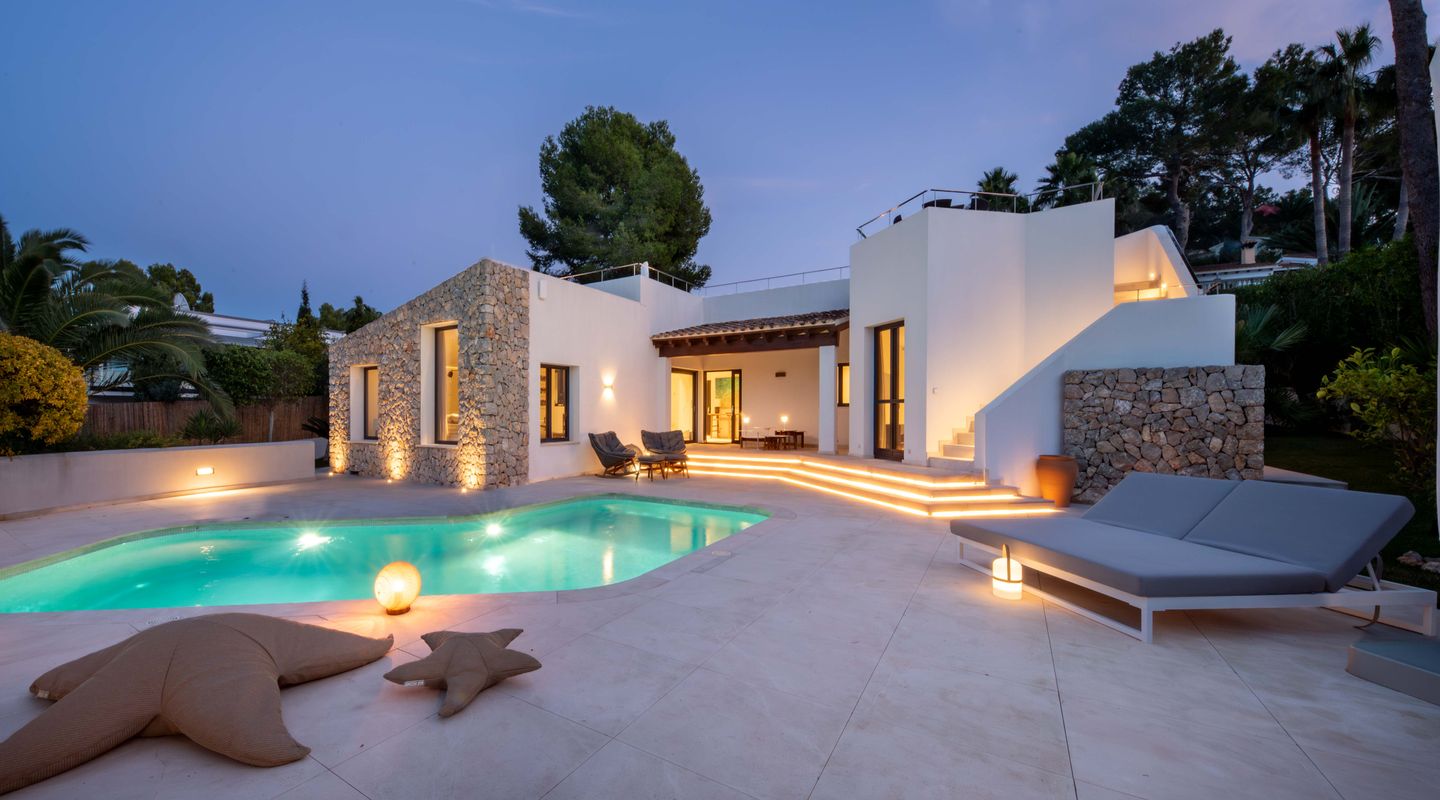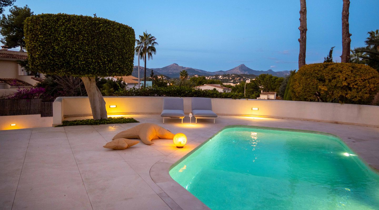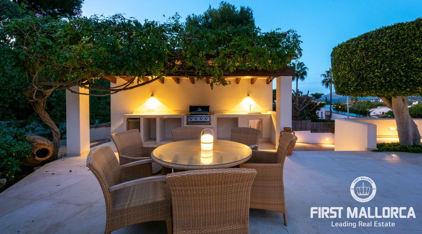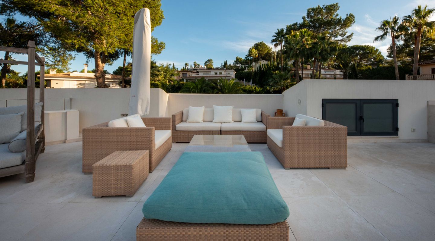 Esta exclusiva villa de lujo en Nova Santa Ponsa, rodeada por un precioso jardín subtropical, fue diseñada por un arquitecto local y ofrece unas vistas maravillosas e obstaculizadas al mar y a la sierra de Tramuntana. Debido al tamaño de la parcela, existe incluso una reserva de ampliación en lo que respecta a las normas de construcción.