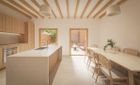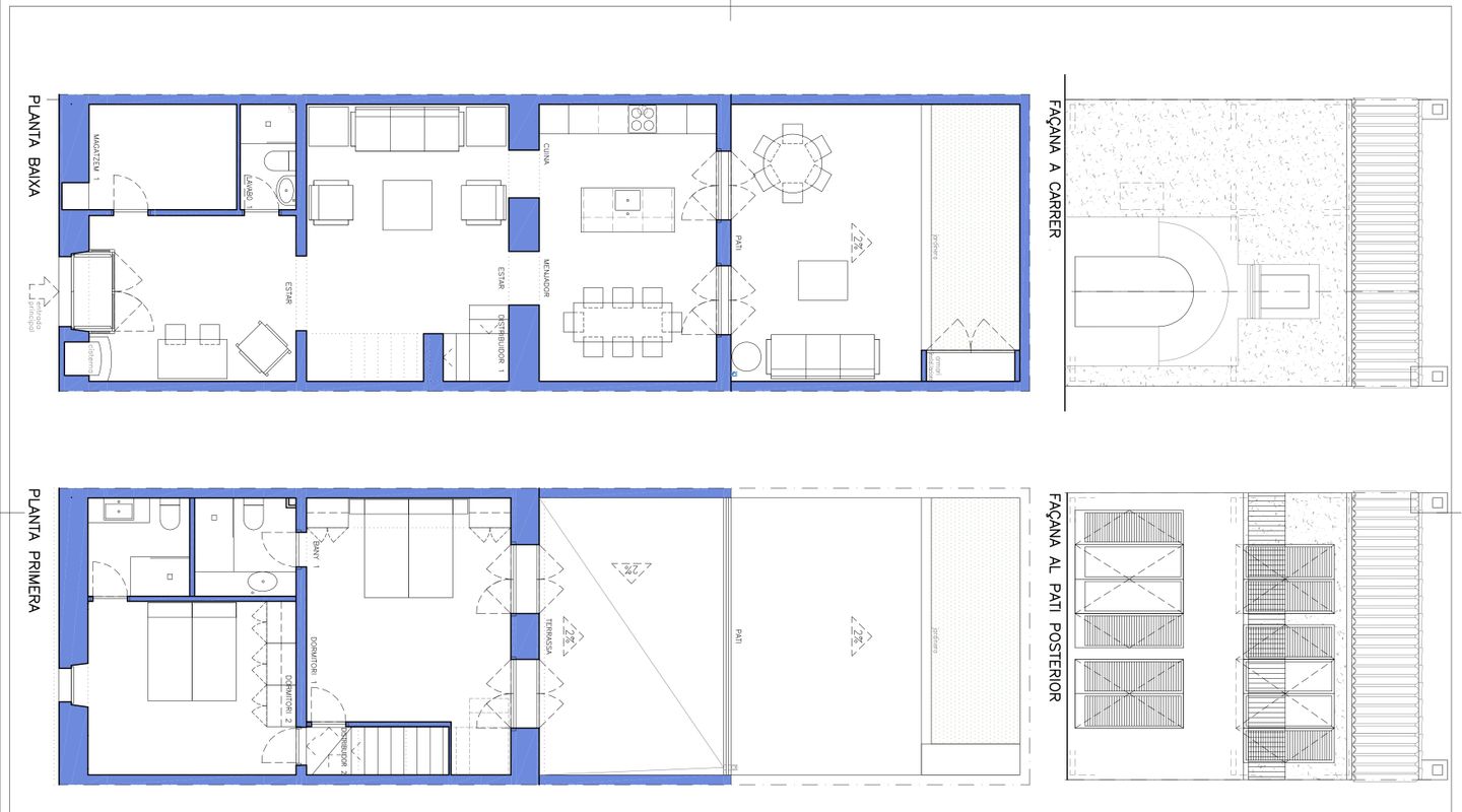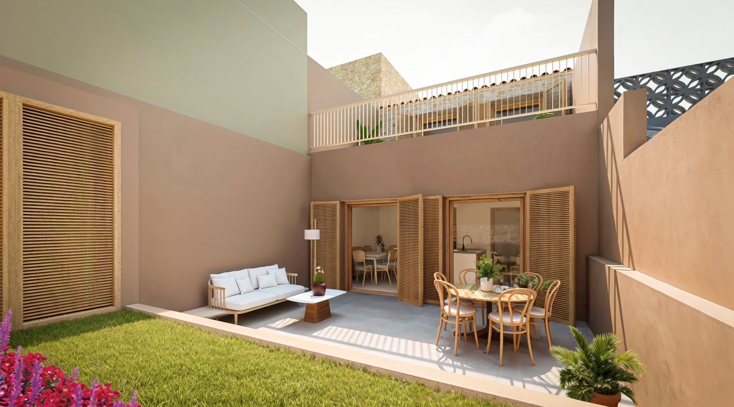 En la planta baja encontramos una gran entrada que da acceso a una habitación individual (que puede destinarse a despacho), y un baño completo; se trata de una zona flexible que permite poder trabajar en casa incluso recibiendo gente, sin comprometer la privacidad del resto de la vivienda. Le sigue una acogedora zona de salón junto a la cocina-comedor, un espacio semiabierto que permite que la luz inunde toda la planta; su conexión con el patio permite disfrutar de un ambiente exterior soleado todo el año.