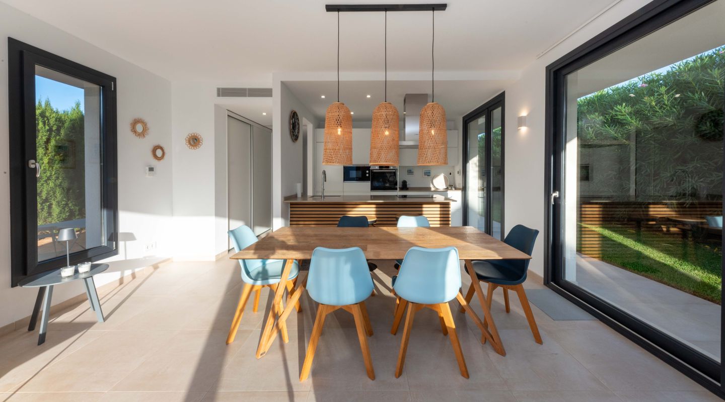 Esta moderna villa en Cala Pi fue construida en 2019 y convence por su arquitectura clara, sus amplias habitaciones y su elegante concepto de vida.