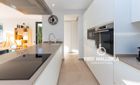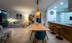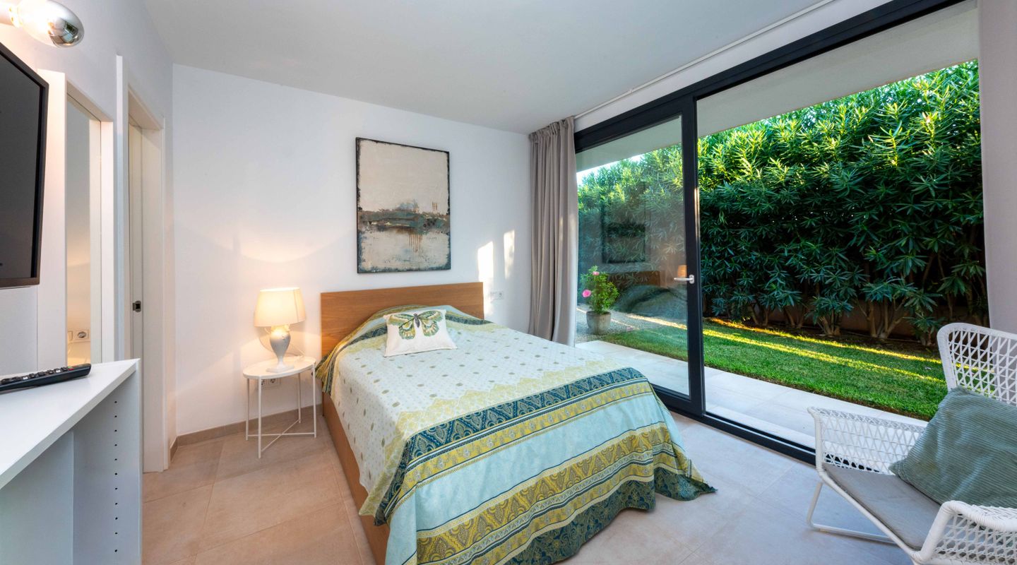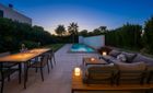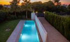 En la planta baja hay una acogedora sala de estar y comedor con una cocina abierta totalmente equipada, que desemboca suavemente en el jardín mediterráneo con zonas de terraza y la piscina de 12 metros. En este nivel también hay un dormitorio con baño en suite y un baño de visitas independiente.