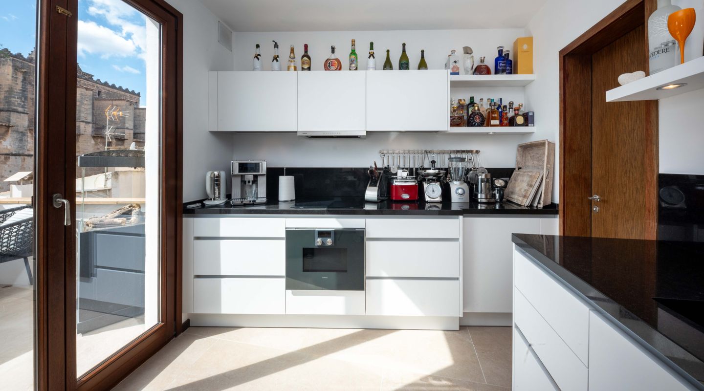 Situado en una de las zonas más emblemáticas del centro histórico de Palma, justo detrás de la Iglesia de Santa Cruz y el Museu Es Baluard, se encuentra este espectacular penthouse dúplex ubicado en la 4ª y 5ª planta de un edificio histórico cuidadosamente renovado.