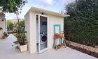 En el exterior se encuentra una caseta independiente en uso como lavandería, equipada con un aseo adicional. El terreno alberga también un antiguo depósito de agua que puede reformarse y un depósito en funcionamiento de 13.000 litros que abastece a la vivienda. La propiedad dispone de electricidad generada por placas solares con sistema de baterías de hasta 5 kW y cuenta además con un generador de gas de apoyo. La fosa séptica es completamente nueva y permite reciclar agua para el riego.