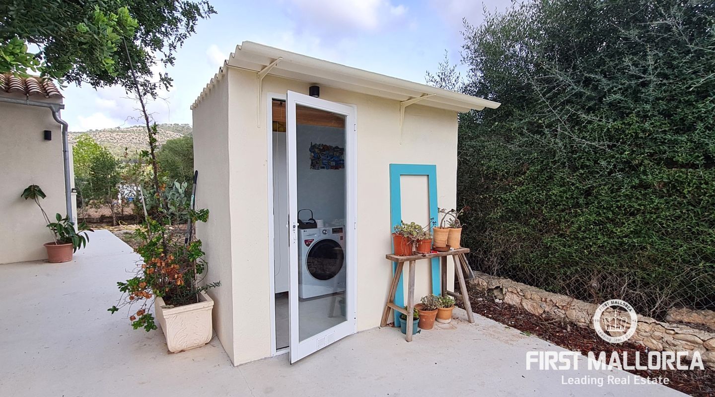 Presentamos esta acogedora propiedad de campo situada en una zona tranquila y silenciosa, a tan solo cinco minutos en coche del centro de Llucmajor. La vivienda, con una superficie construida de unos 105 m² —de los cuales 80 m² corresponden a la casa principal— se asienta sobre un terreno de 1.862 m² que ofrece privacidad, comodidad y un entorno ideal para disfrutar durante todo el año.
