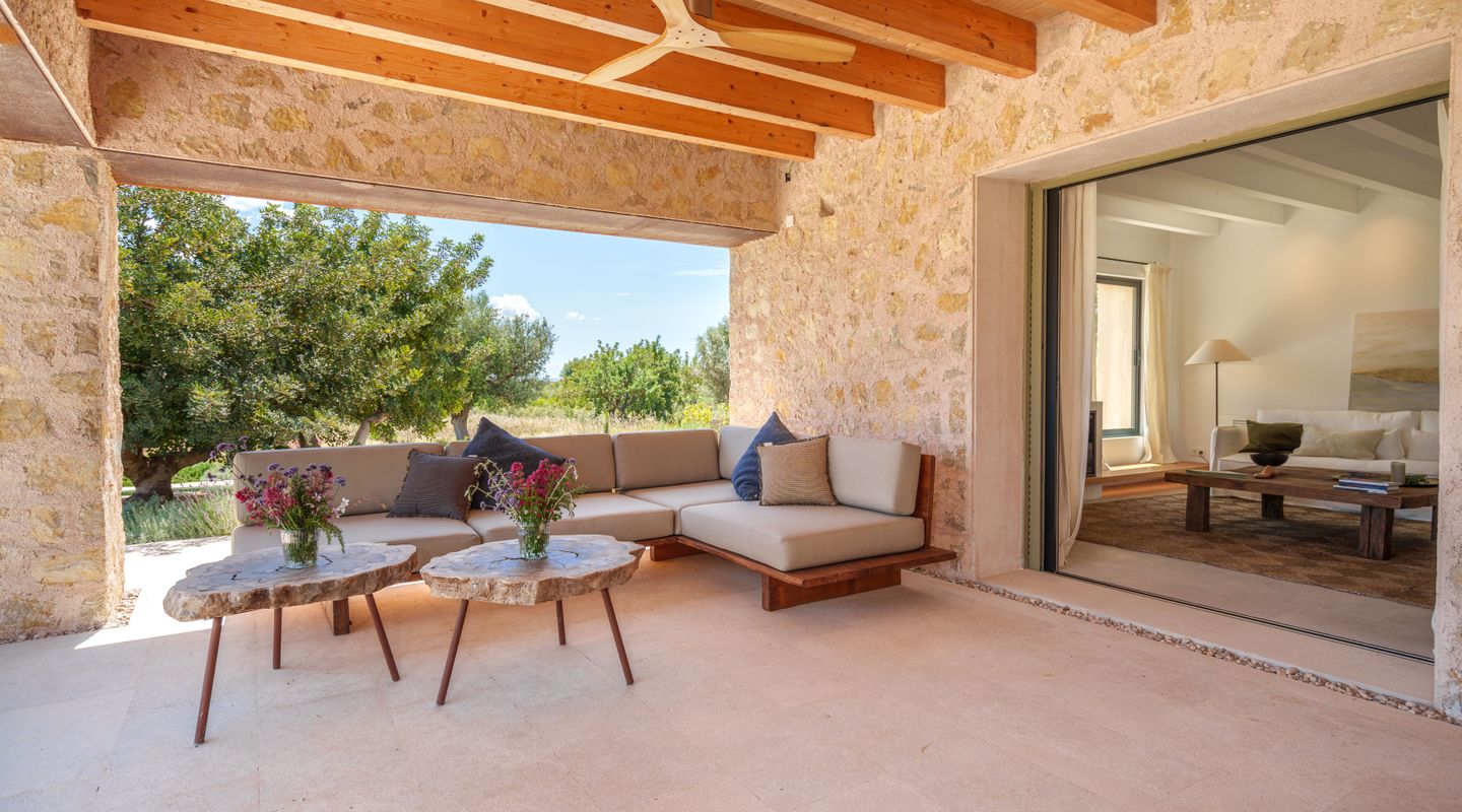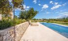 La finca cuenta con un jardín mediterráneo exclusivo, riego automático y amplias terrazas que se integran con la piscina de 12 x 4 m de agua salada y un solárium de piedra caliza, creando un espacio ideal para el relax y el disfrute del entorno.
