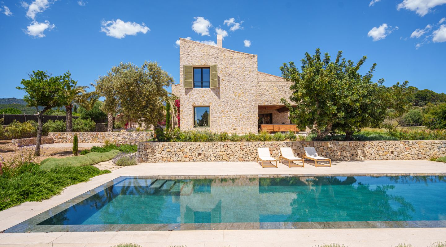 Excepcional propiedad de nueva construcción en suelo rústico, a pocos minutos de Selva, que combina diseño contemporáneo, materiales de alta calidad y vistas panorámicas de 360º al mar al este, al Puig Major al oeste y los campos circundantes. Orientación sureste.