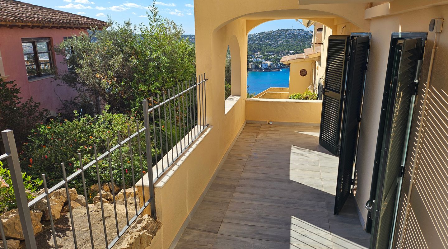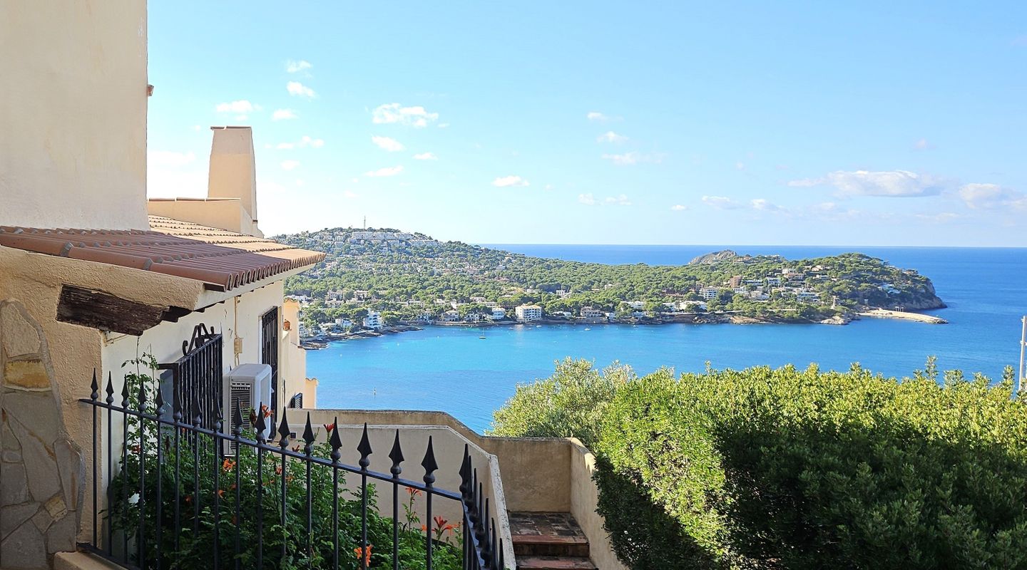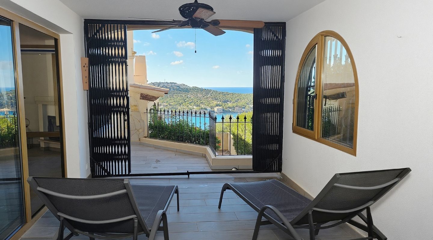 Este apartamento parcialmente renovado destaca por su excelente ubicación sobre la bahía de Santa Ponsa y ofrece unas impresionantes vistas panorámicas al mar desde dos amplias terrazas.