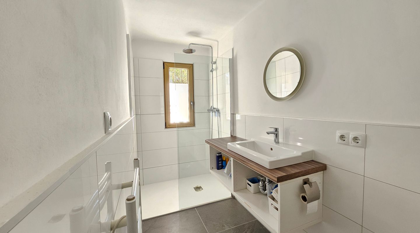 Con dos elegantes dormitorios, dos modernos baños y una zona de estar con cocina abierta, la propiedad combina confort y estilo. El aire acondicionado, la calefacción por suelo radiante y la chimenea garantizan una atmósfera acogedora durante todo el año. El apartamento combina un diseño moderno con el auténtico encanto mallorquín. Gracias a su ubicación céntrica, podrá disfrutar de la proximidad inmediata a playas, restaurantes y opciones de ocio, sin renunciar a la tranquilidad y la privacidad: el refugio perfecto para los más altos estándares.