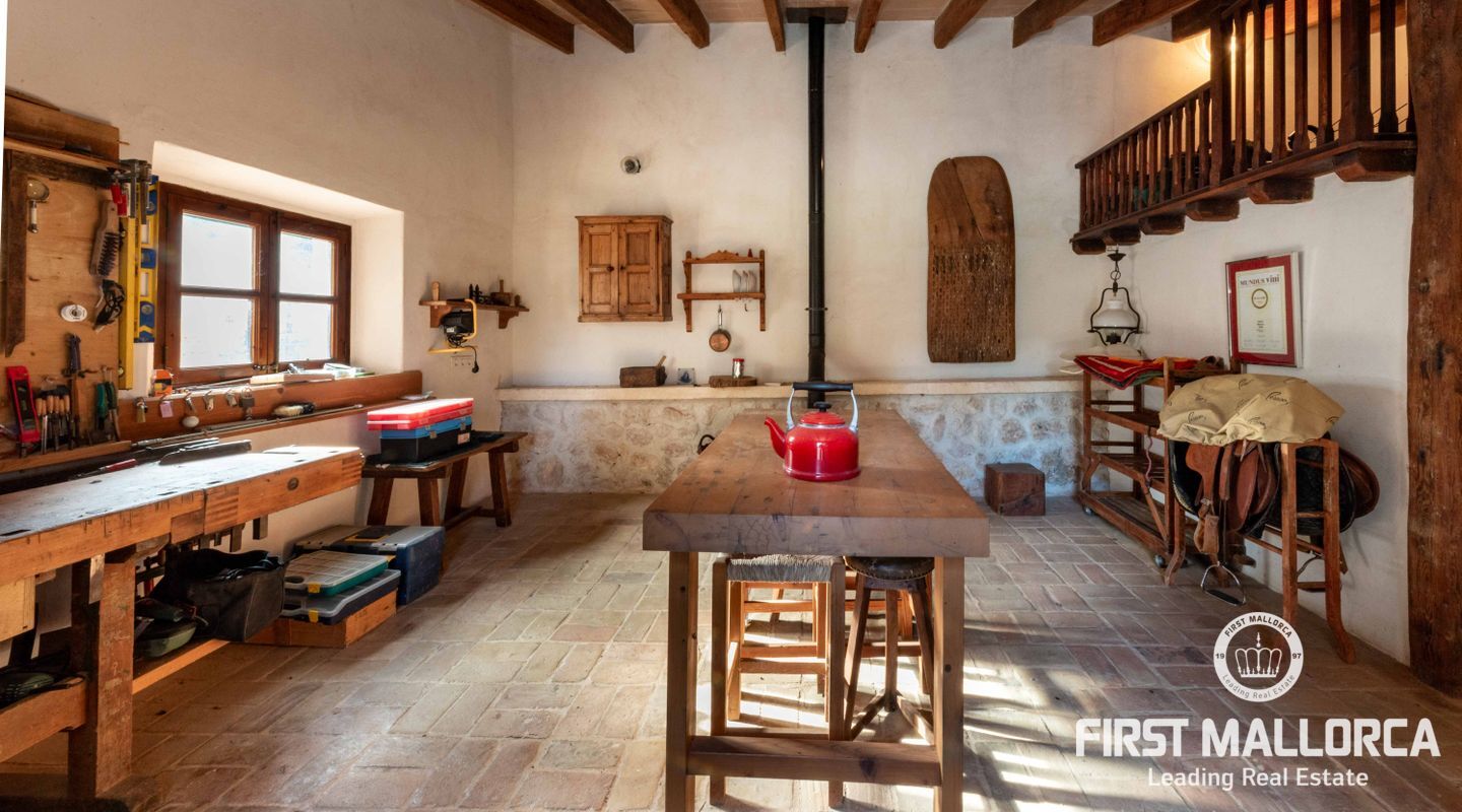 Bienvenido a esta finca exclusiva en venta en Pollensa, una de las zonas más deseadas del norte de Mallorca. Esta propiedad rural de lujo combina el encanto tradicional mallorquín con todas las comodidades modernas, ofreciendo un entorno de tranquilidad, privacidad y belleza natural. Con 1.507 m² construidos sobre una amplia parcela de 172.483 m², esta finca representa una oportunidad única para quienes buscan comprar una casa de campo en Mallorca rodeada de naturaleza y con un estilo de vida mediterráneo auténtico. Características de la propiedad La finca cuenta con tres bungalows independientes, conectados entre sí mediante terrazas, porches y jardines cuidadosamente diseñados. Cada vivienda dispone de espacios luminosos, acabados de alta calidad y todas las comodidades modernas, lo que la convierte en el lugar ideal para familias numerosas o grupos que buscan privacidad y confort. En total, ofrece seis dormitorios y cinco baños. El terreno exterior es perfecto para disfrutar del aire libre o desarrollar proyectos agrícolas y ecuestres. Dispone de establos para caballos, amplias zonas de cultivo y una espectacular zona productiva con un viñedo de 25.000 m², equipado con instalaciones para elaborar un vino premiado y reconocido en la región. Además, cuenta con una bodega con zona de degustación y 15.000 m² de olivos para la producción de aceite. Un bosque privado de robles de 10 hectáreas completa este paraíso natural, ideal para paseos, rutas a caballo o simplemente disfrutar de la paz del entorno. Entre las comodidades adicionales se incluyen una piscina privada, depósito de agua y vistas panorámicas incomparables a las montañas y al paisaje rural de Pollensa. Tu inmobiliaria de confianza en Mallorca – First Mallorca En First Mallorca somos una inmobiliaria líder en Mallorca, especializada en fincas, casas de lujo y propiedades exclusivas en toda la isla. Ofrecemos un servicio integral y personalizado que incluye asesoría legal, fiscal y financiera, así como un completo servicio de alquileres, tanto de larga duración como vacacionales, para quienes buscan una solución flexible o una inversión con alta rentabilidad. Todo ello gracias a nuestra red de colaboradores expertos: abogados, asesores financieros y especialistas en seguros. Nuestro objetivo es ayudarte a encontrar la propiedad perfecta en Mallorca, ya sea para vivir, invertir, disfrutar de una segunda residencia o gestionar tu propiedad a través de nuestros servicios de alquiler en un entorno inigualable. Descubre con First Mallorca tu nuevo hogar en Mallorca