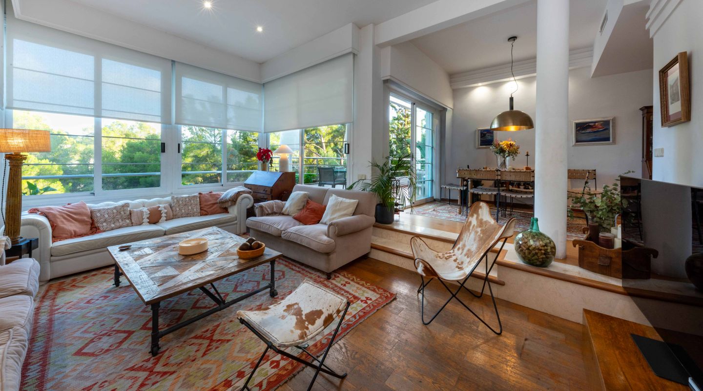 Los techos altos en las estancias principales crean una atmósfera majestuosa, mientras que la luz natural inonda los espacios durante todo el día, realzando el placer de vivir en esta casa. Además, la villa goza de una ubicación privilegiada a muy poca distancia del exclusivísimo Puerto Portals, famoso por sus restaurantes de alta cocina, boutiques de lujo y su ambiente vibrante.